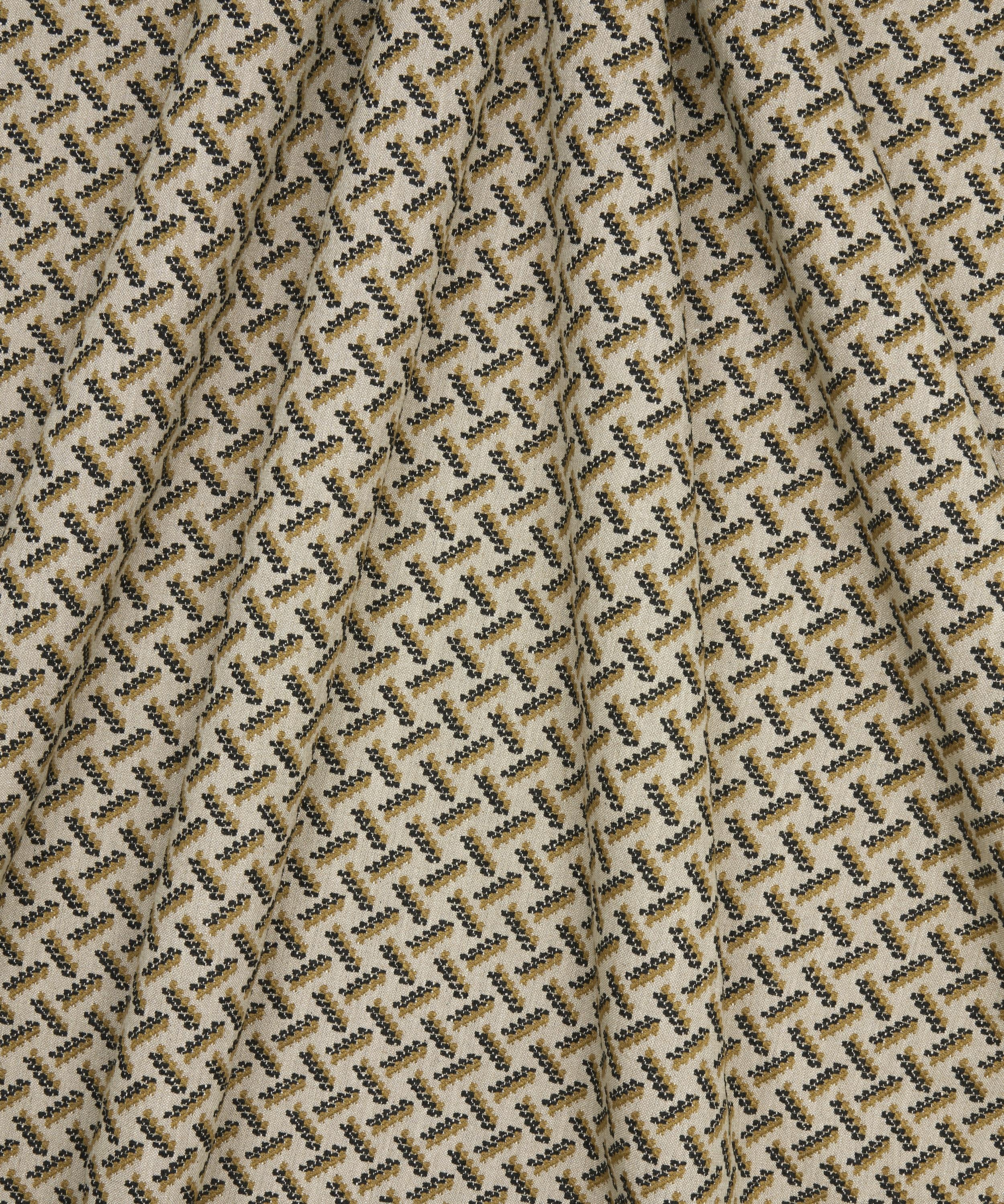 Echoing the grandeur of the Tudor-style architecture discovered within the Liberty flagship store, the building’s landmark chimneys are evoked in Tudor Brick’s geometric pattern. Crafted from handmade bricks inspired by those found at Hampton Court, each of the Regent Street store’s chimney bricks are shaped from special moulds to create unique patterns. Carefully woven with a cotton-linen blend, Tudor Brick is appropriate for upholstery, drapery, cushions, and accessories.