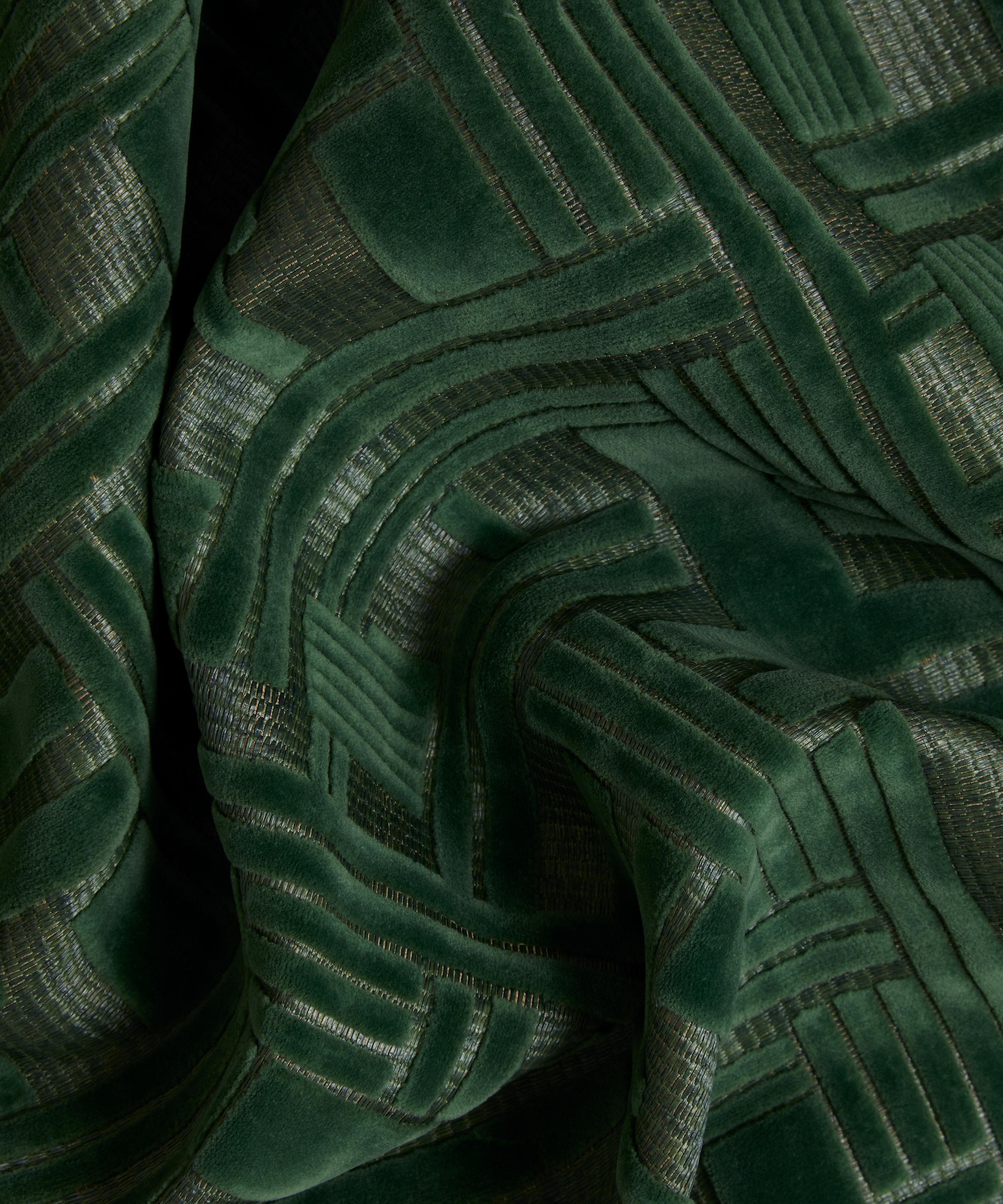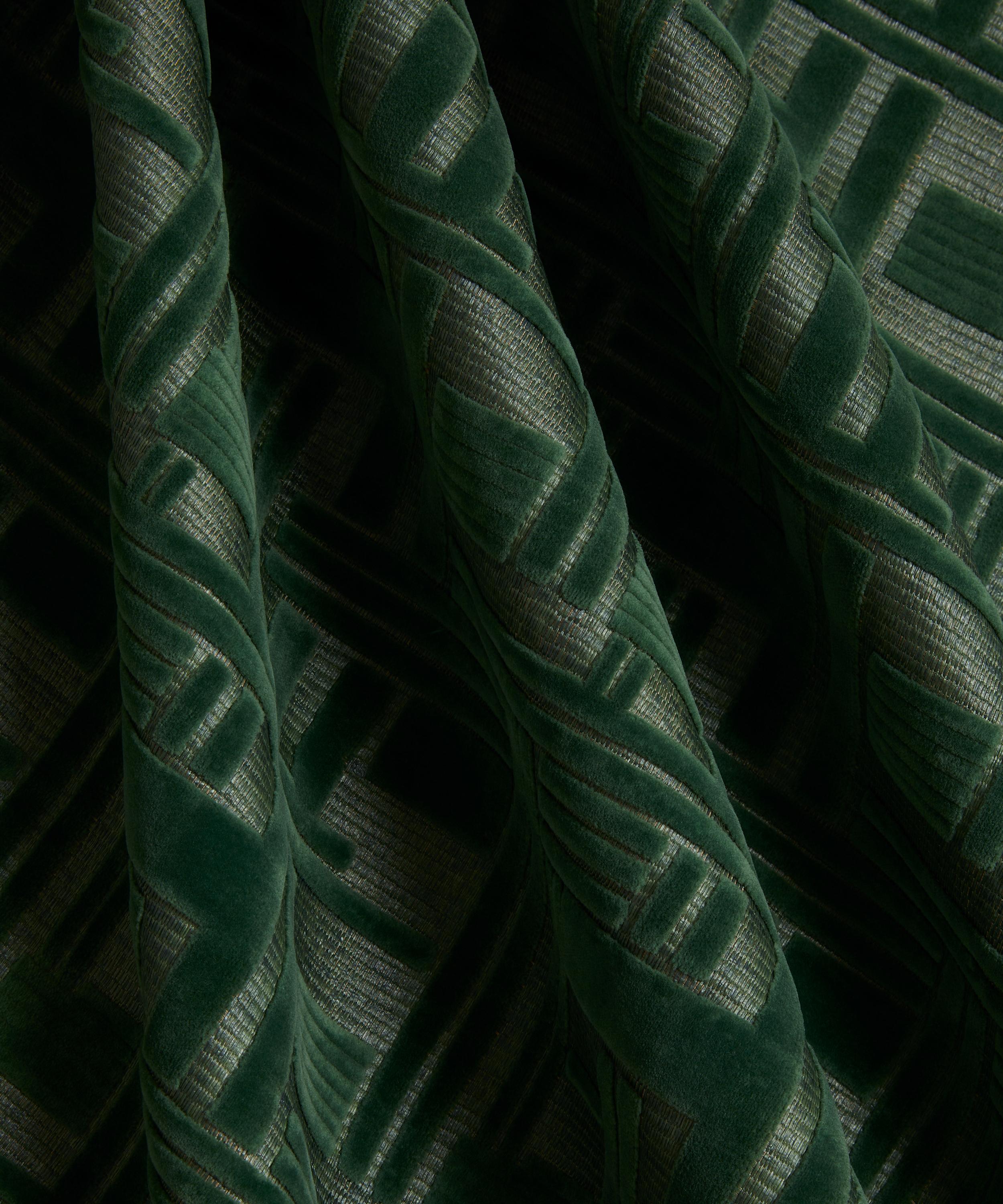 Inspired by a scarf design from the Liberty archives, Tudor Columns pays homage to the iconic Tudor Liberty flagship store – featuring a high-density jacquard velvet, juxtaposed with a raffia ground. This fabric is ideal for heavy domestic upholstery, drapery, and elegant throw cushions.