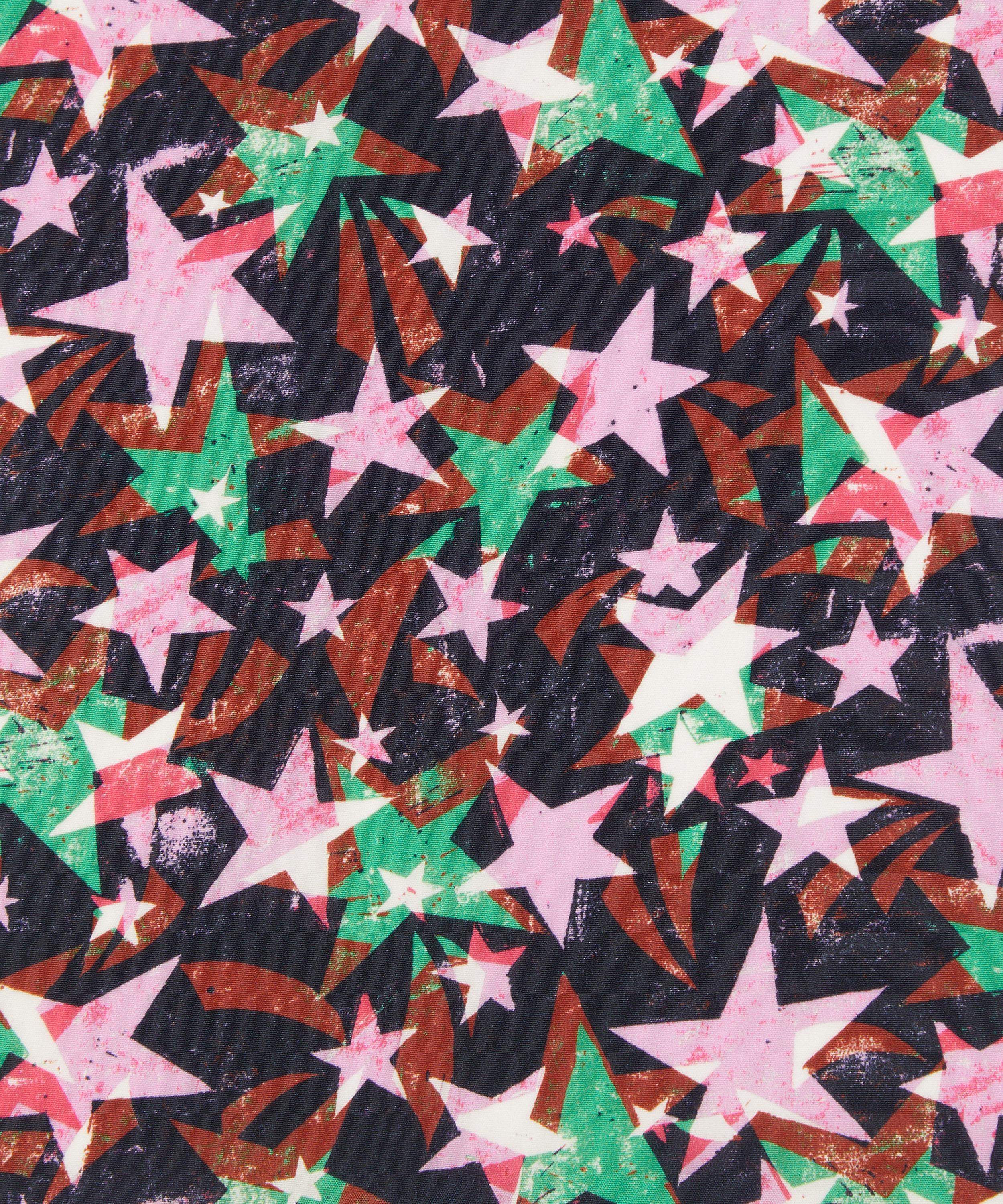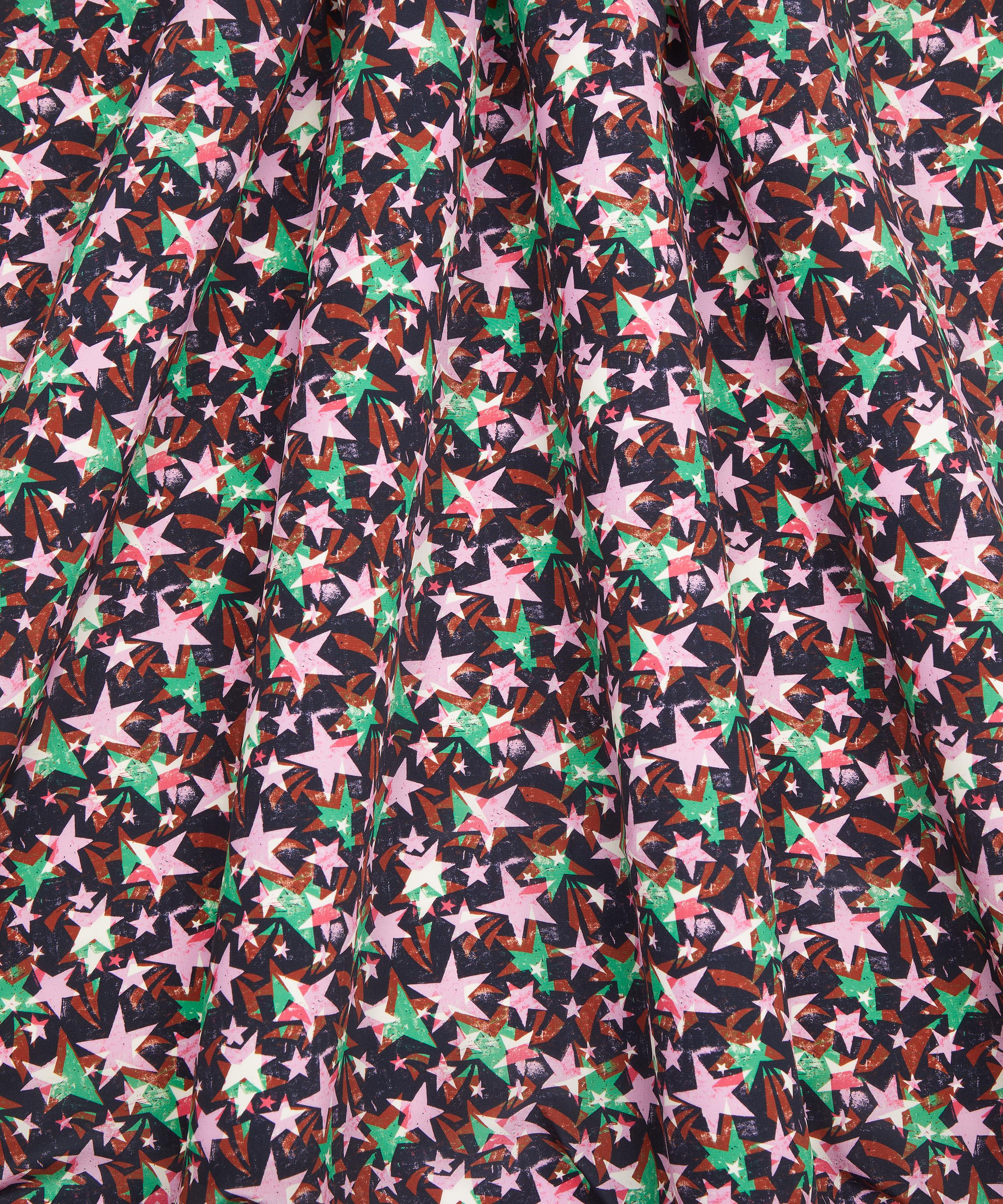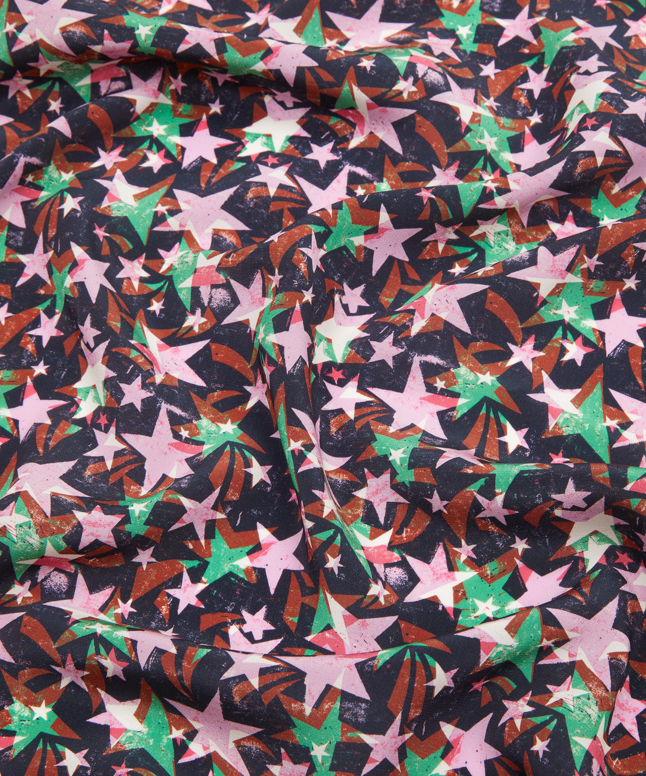 Emerging as a dazzling pastiche of shooting stars, this glistening geometric stands as a joyous celebration of Liberty’s 150th anniversary. The design was created using traditional lino cut printing techniques, capturing layers of spontaneous mark making and rich textures. The star silhouettes, reminiscent of transparent paper collages, appear to glow from within, reflecting a harmonious balance of craftsmanship and modernity. This print is part of the anniversary collection’s final chapter, Collectibles. Offering a design for each decade, this timeline of hero prints encapsulates 150 years - exploring the design house’s varied and influential handwriting while honouring key moments of creativity and discovery.