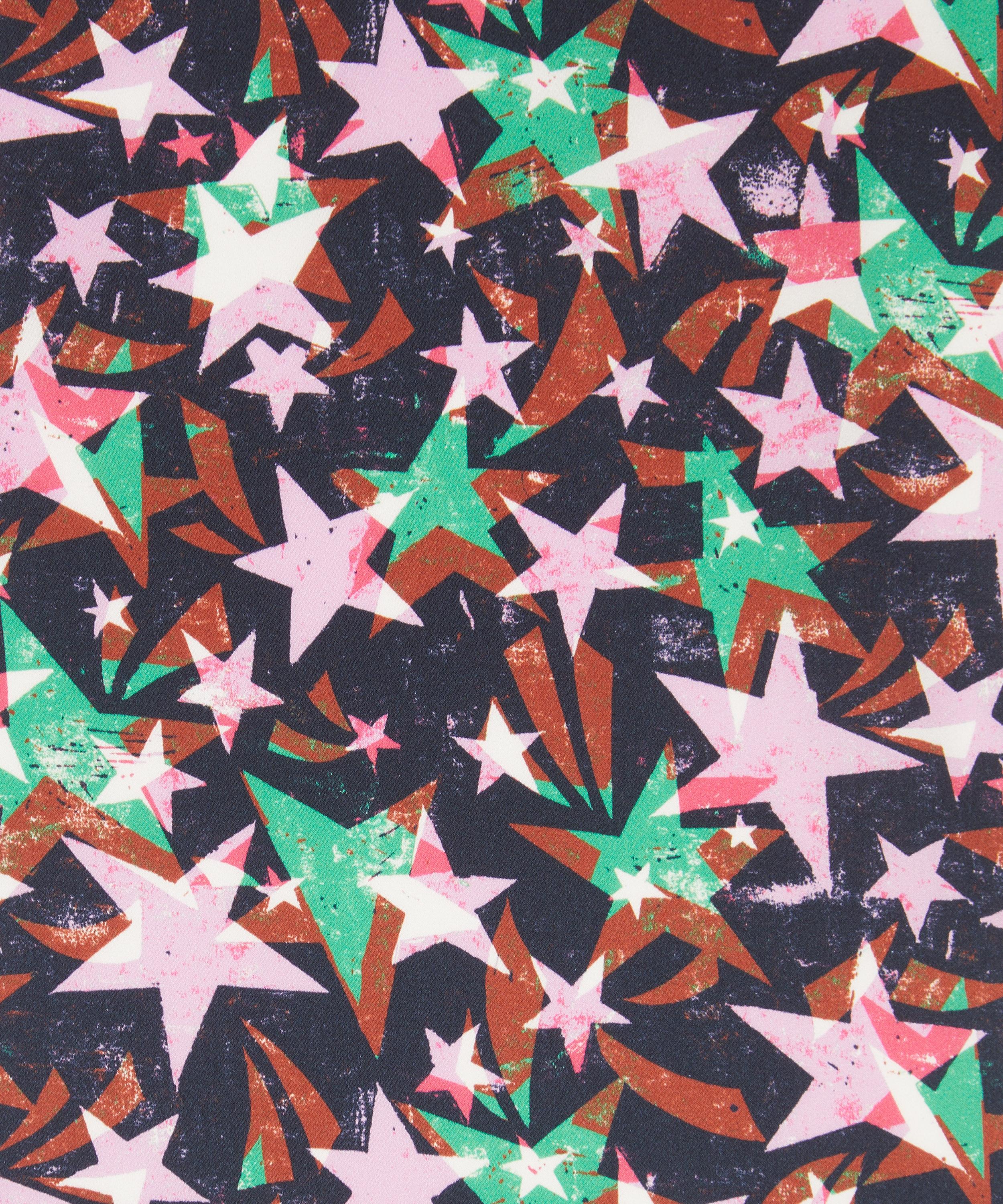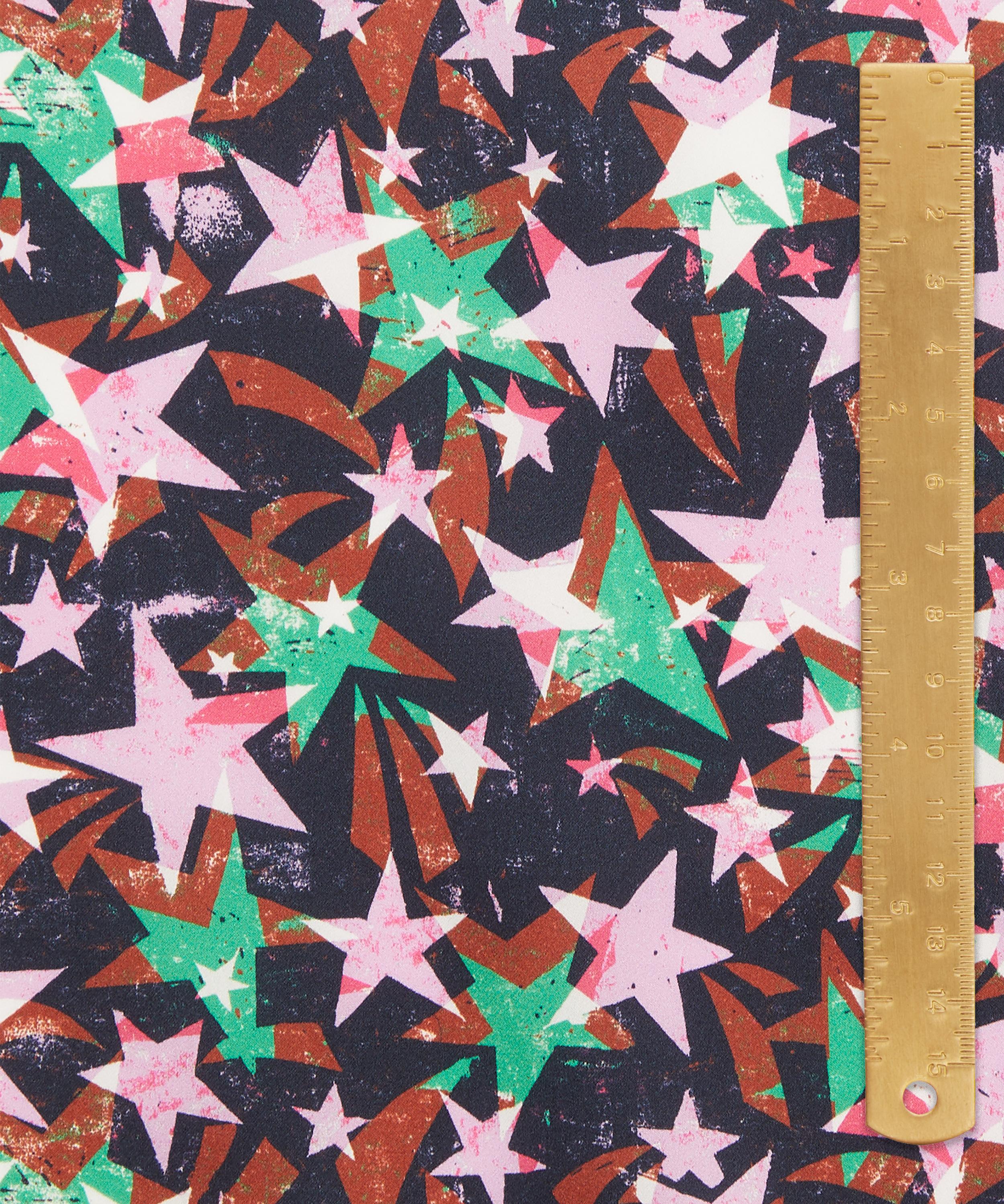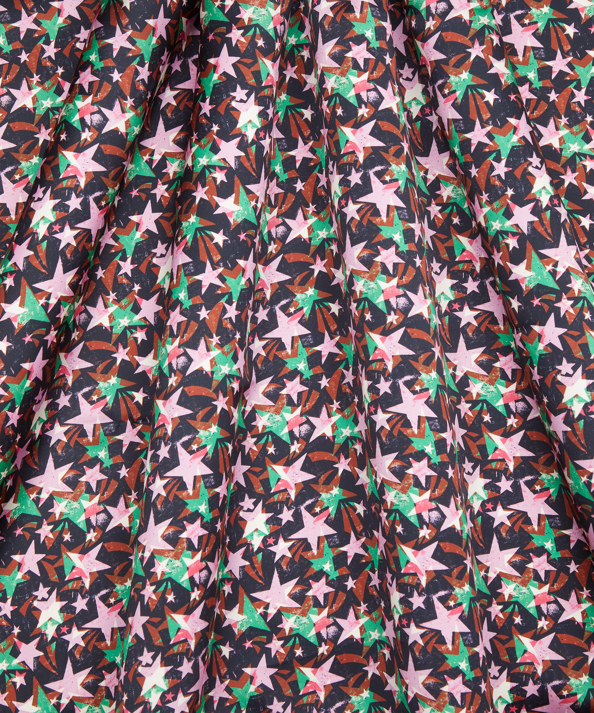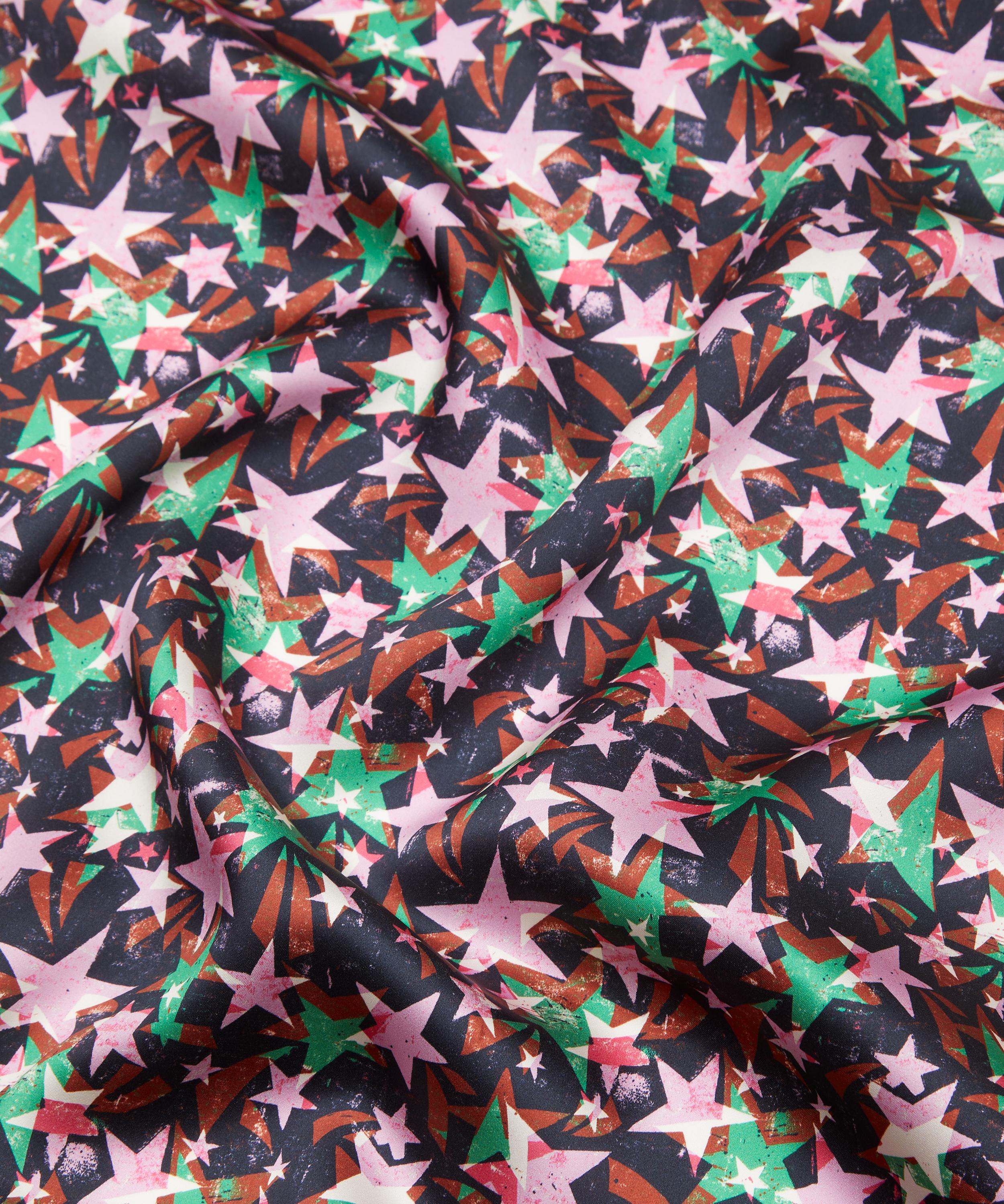 Emerging as a dazzling pastiche of shooting stars, this glistening geometric stands as a joyous celebration of Liberty’s 150th anniversary. The design was created using traditional lino cut printing techniques, capturing layers of spontaneous mark making and rich textures. The star silhouettes, reminiscent of transparent paper collages, appear to glow from within, reflecting a harmonious balance of craftsmanship and modernity. This print is part of the anniversary collection’s final chapter, Collectibles. Offering a design for each decade, this timeline of hero prints encapsulates 150 years - exploring the design house’s varied and influential handwriting while honouring key moments of creativity and discovery.