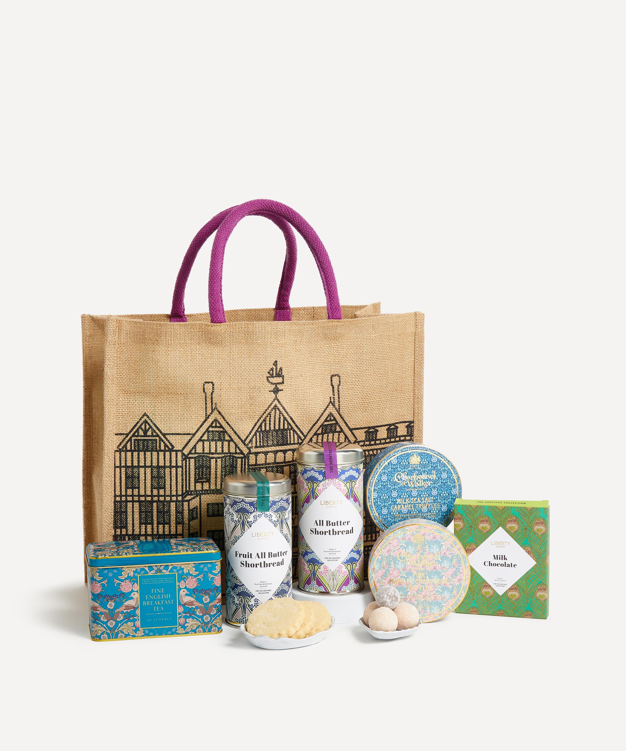 This reusable and sturdy shopper is printed with our archival Tudor design – paying homage to our historic department store. A decadent celebration of British artisan, the hamper is bursting with the very best hits from our Liberty Food Hall, including truffles, tea and crumbly discs of shortbread. Gift this Liberty tote to a fellow foodie, or keep for yourself and enjoy the benefits long after the treats have gone.