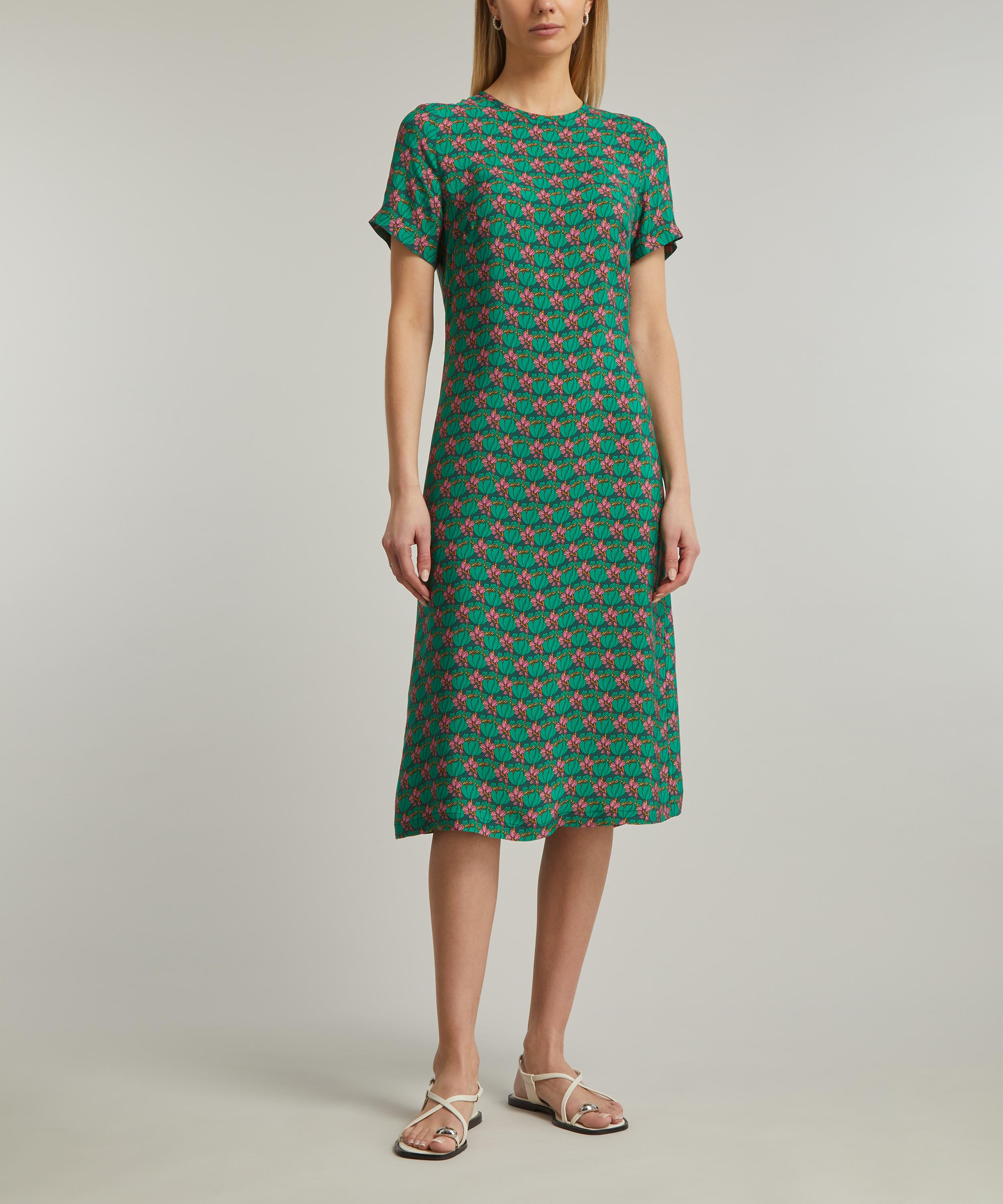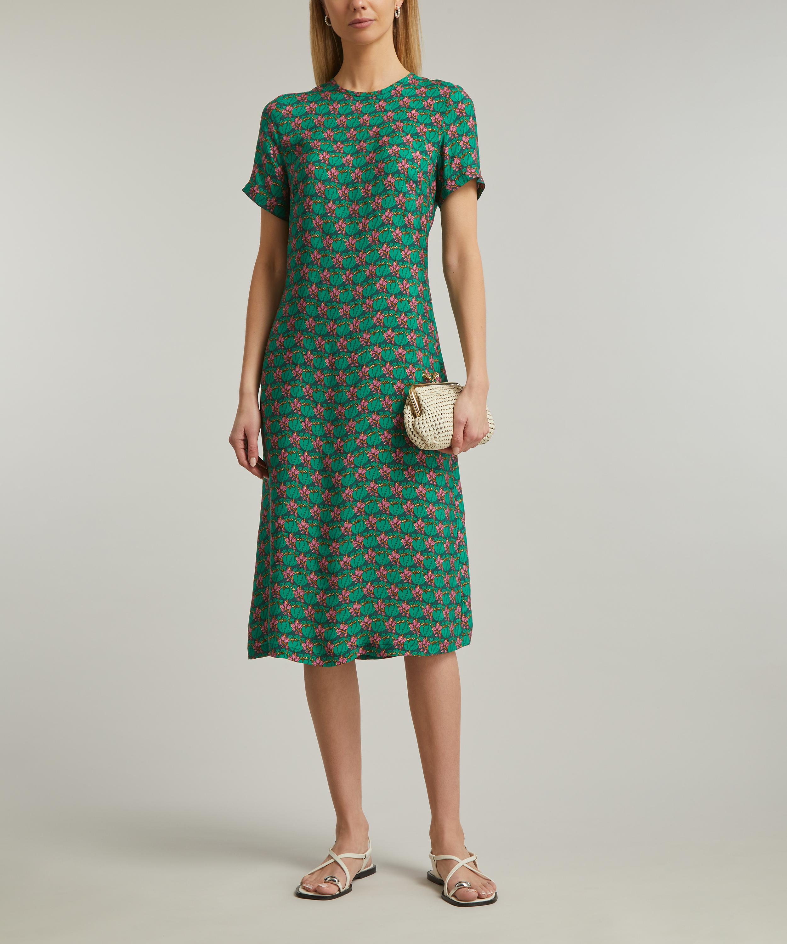 A minimalistic take on maximalism, Liberty introduces the Tee Dress: A simple t-shirt style dress with a striking, summer-infused print that can easily be dressed up or down.