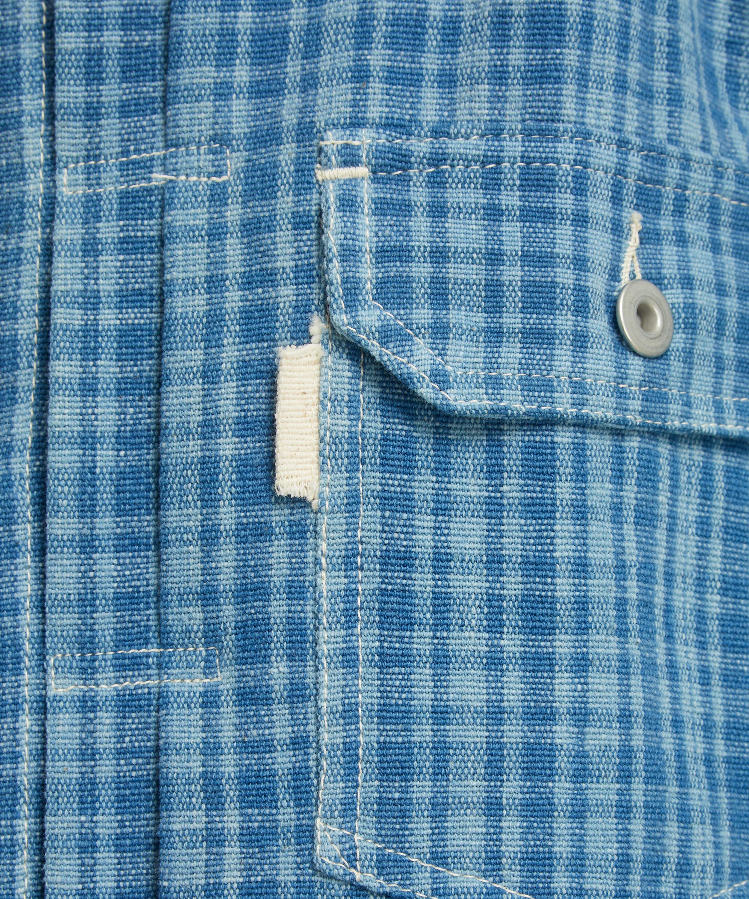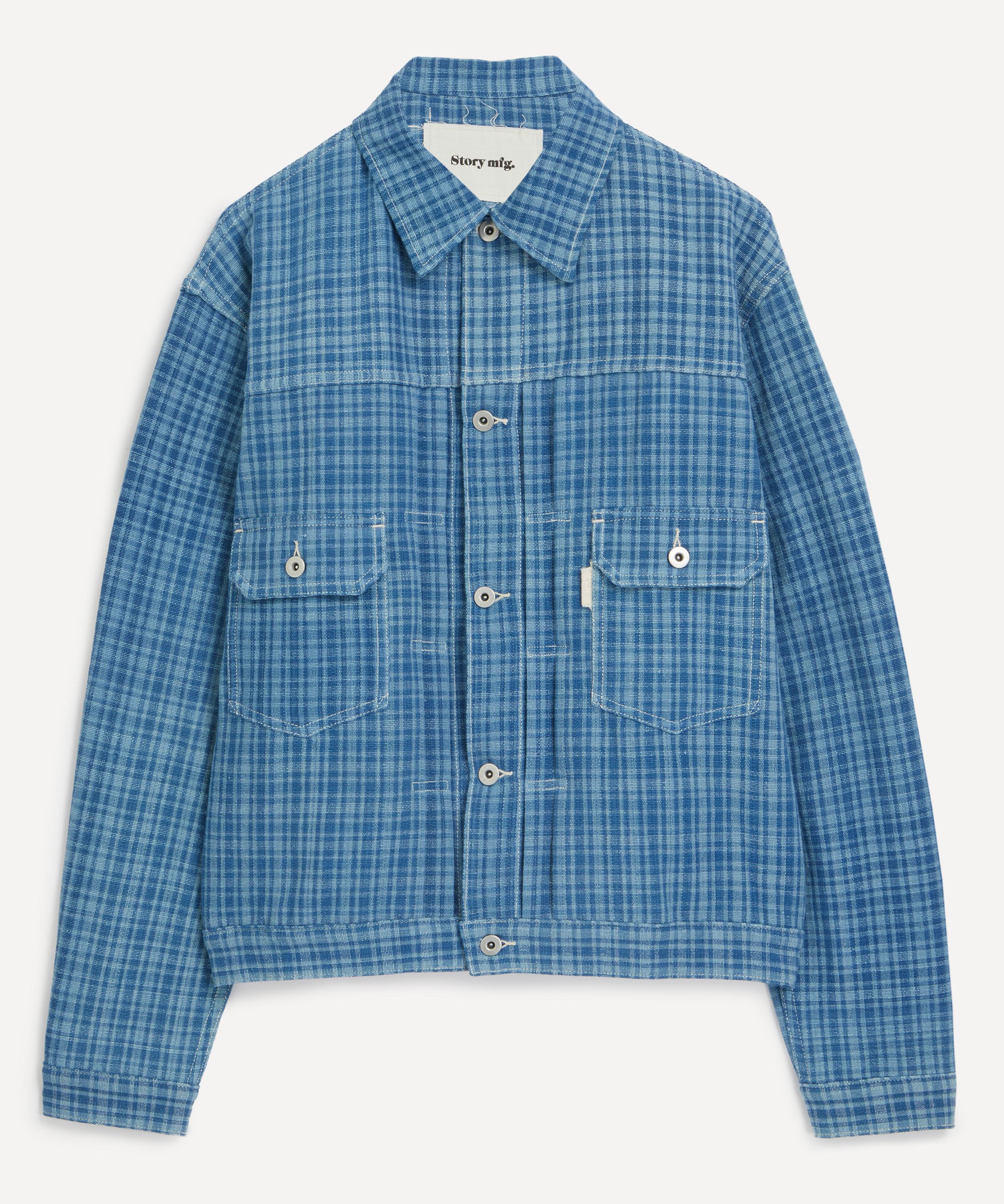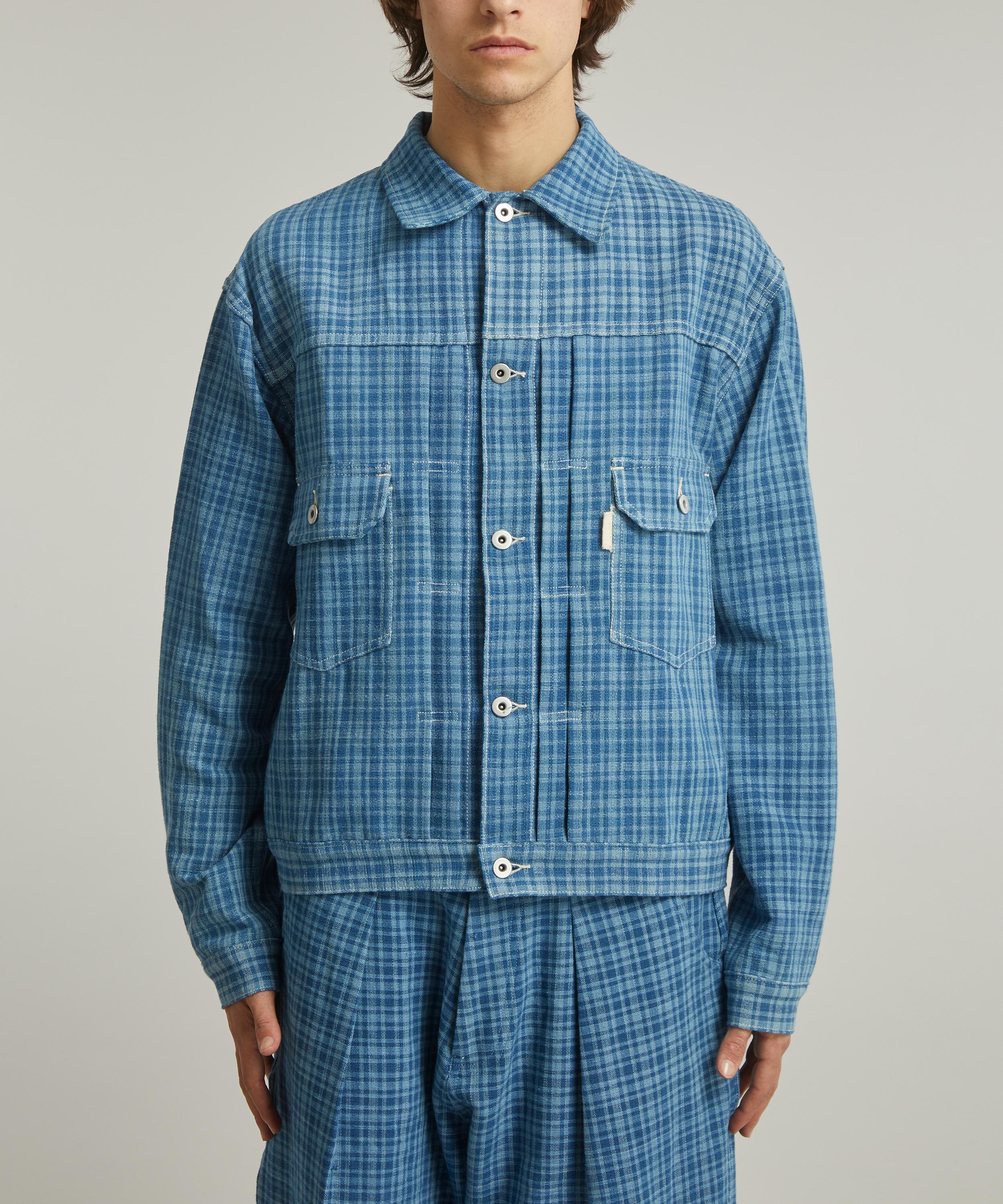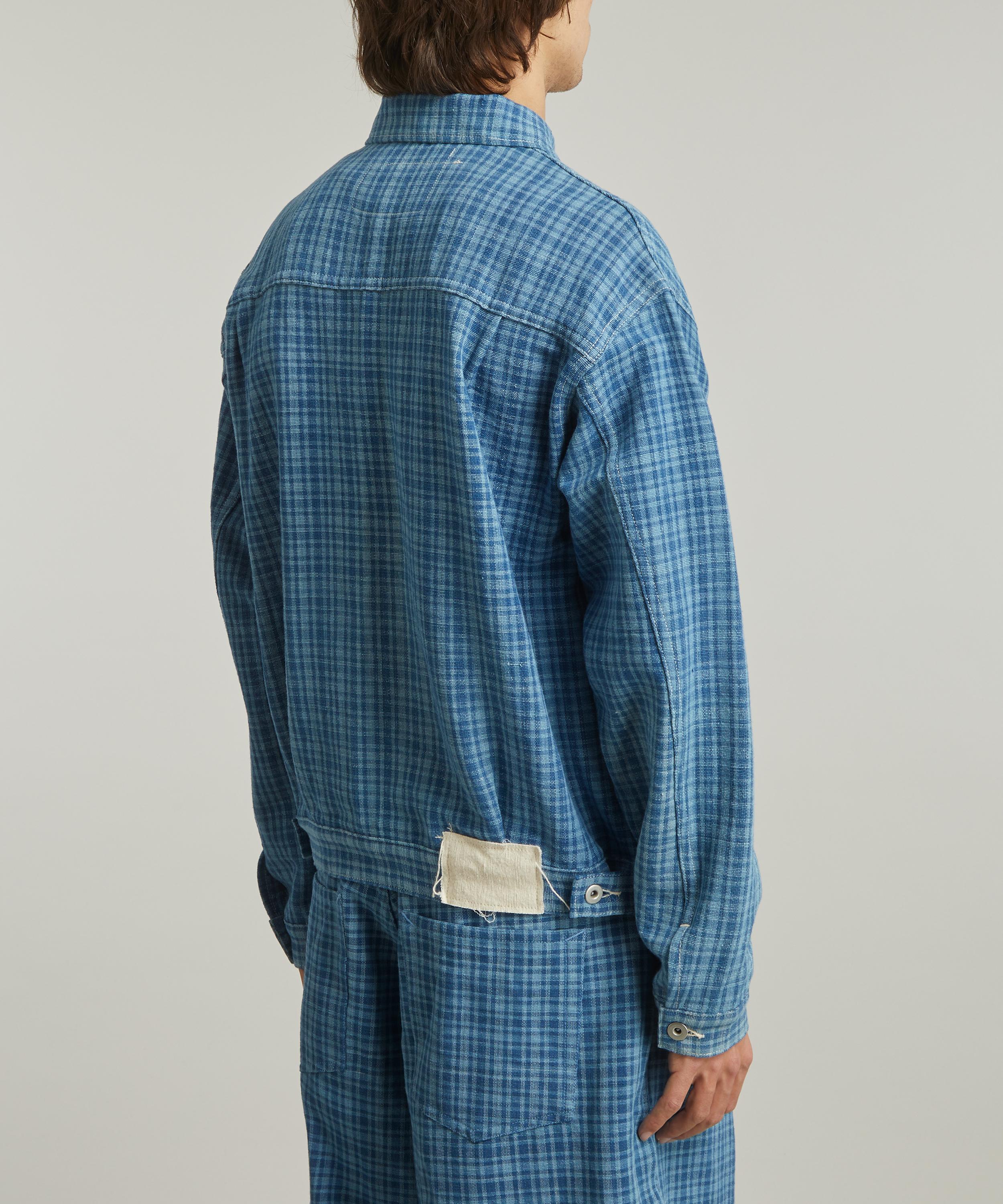 Inspired by retro silhouettes, this unisex style has an cropped, boxy fit meticulously constructed from hand woven cotton and adorned with an all-over indigo mini check. Pair it with lightweight tailored trousers for a refined take on casual dressing.