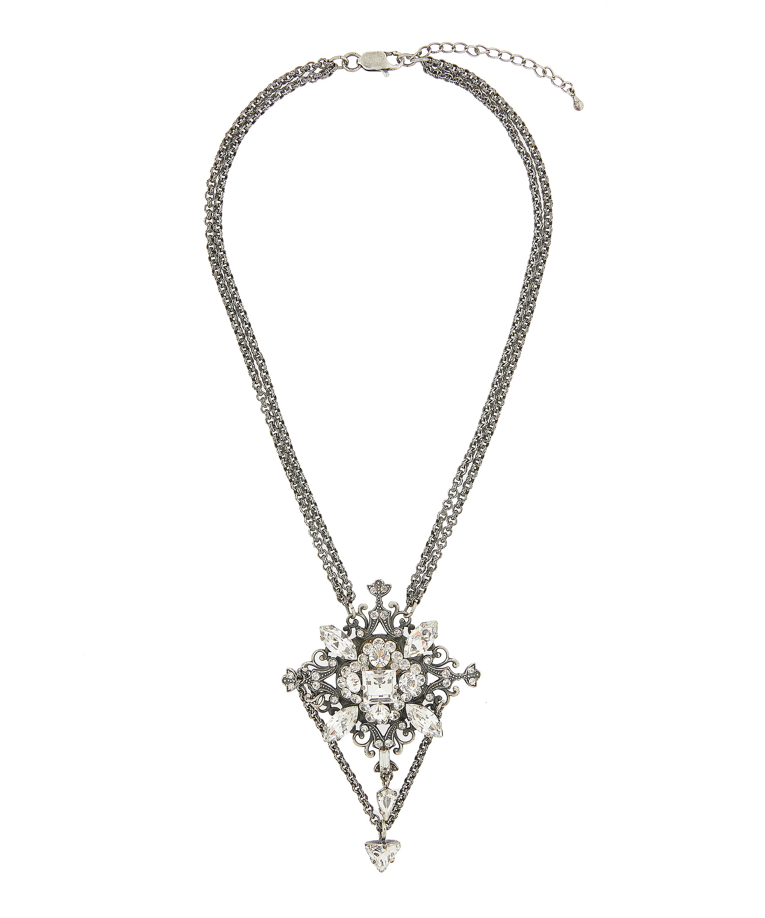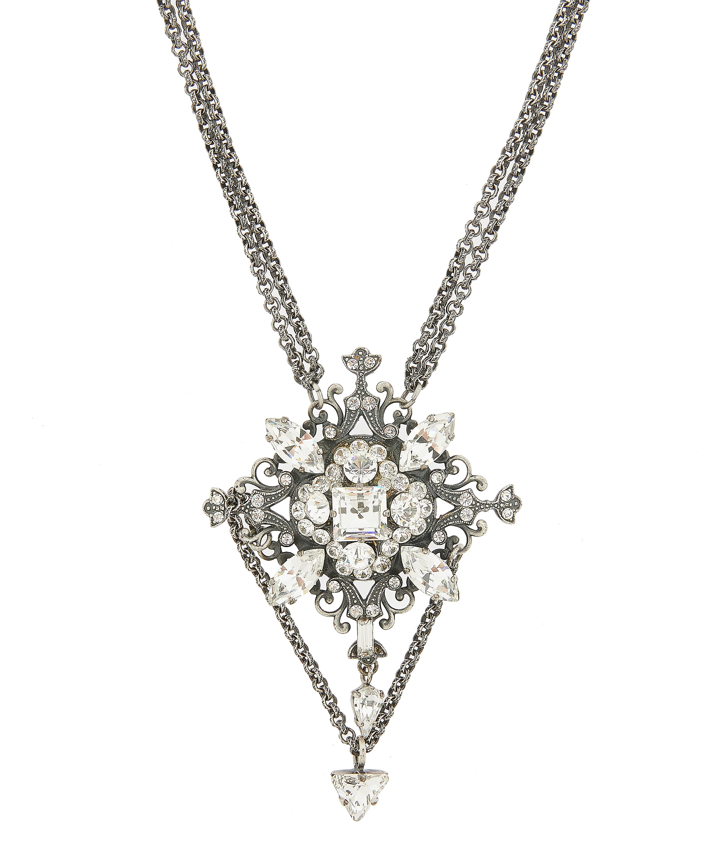 Turn of the Century Claire Garnett White Metal Faux Diamond Pendant Necklace
