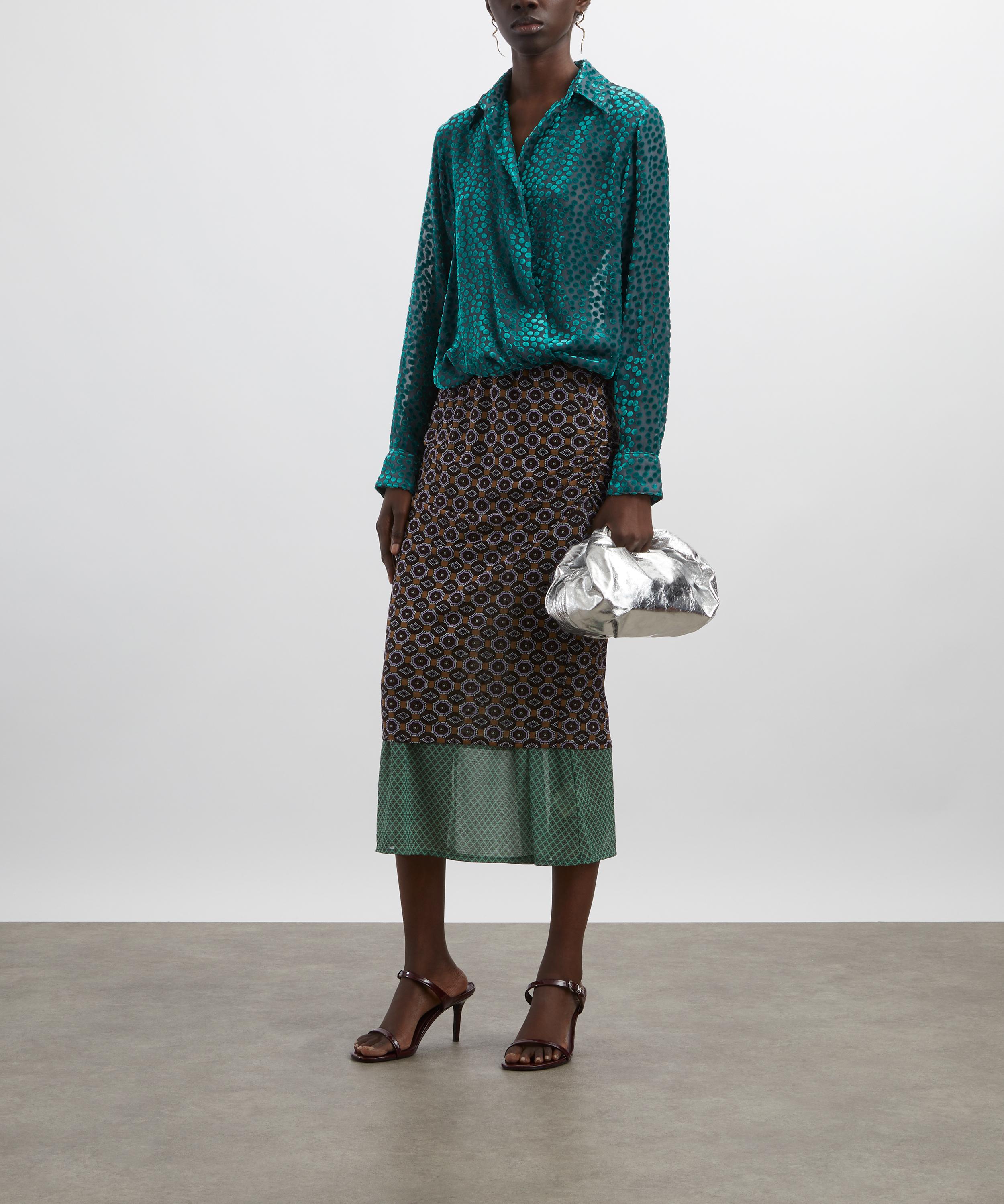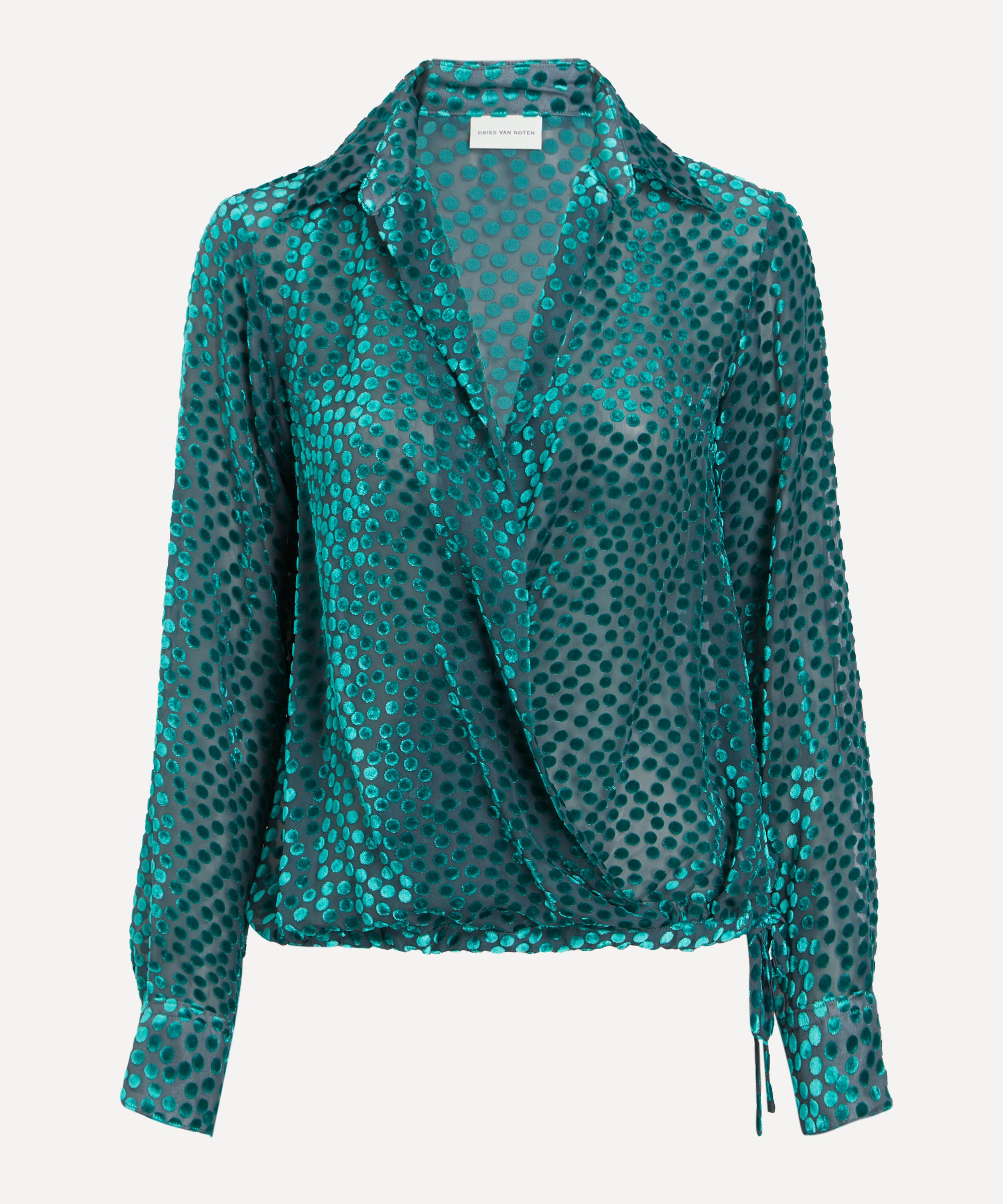 This Devoré Wrap Shirt from Dries Van Noten exemplifies the Belgian label’s avant-garde approach to contemporary fashion.