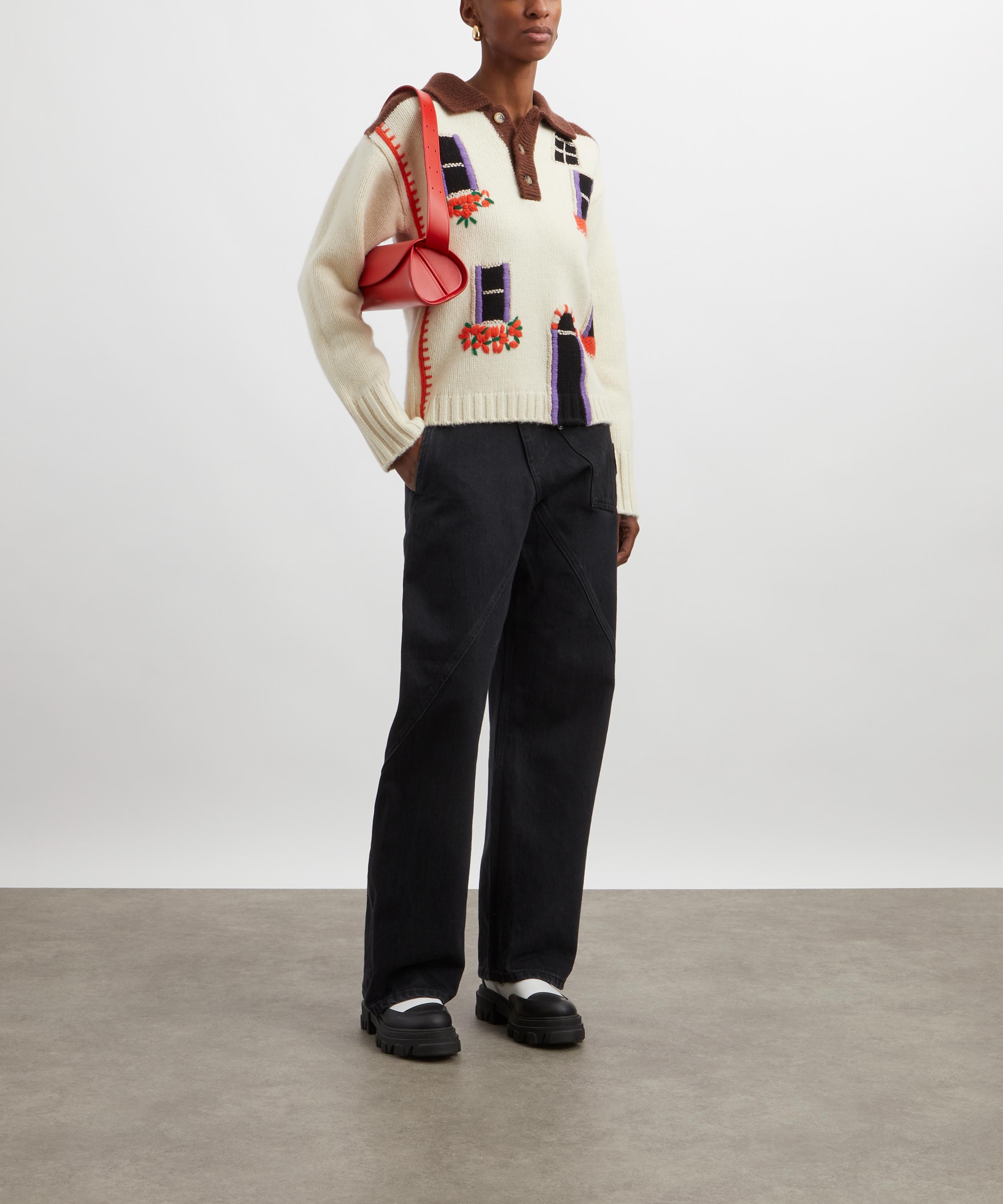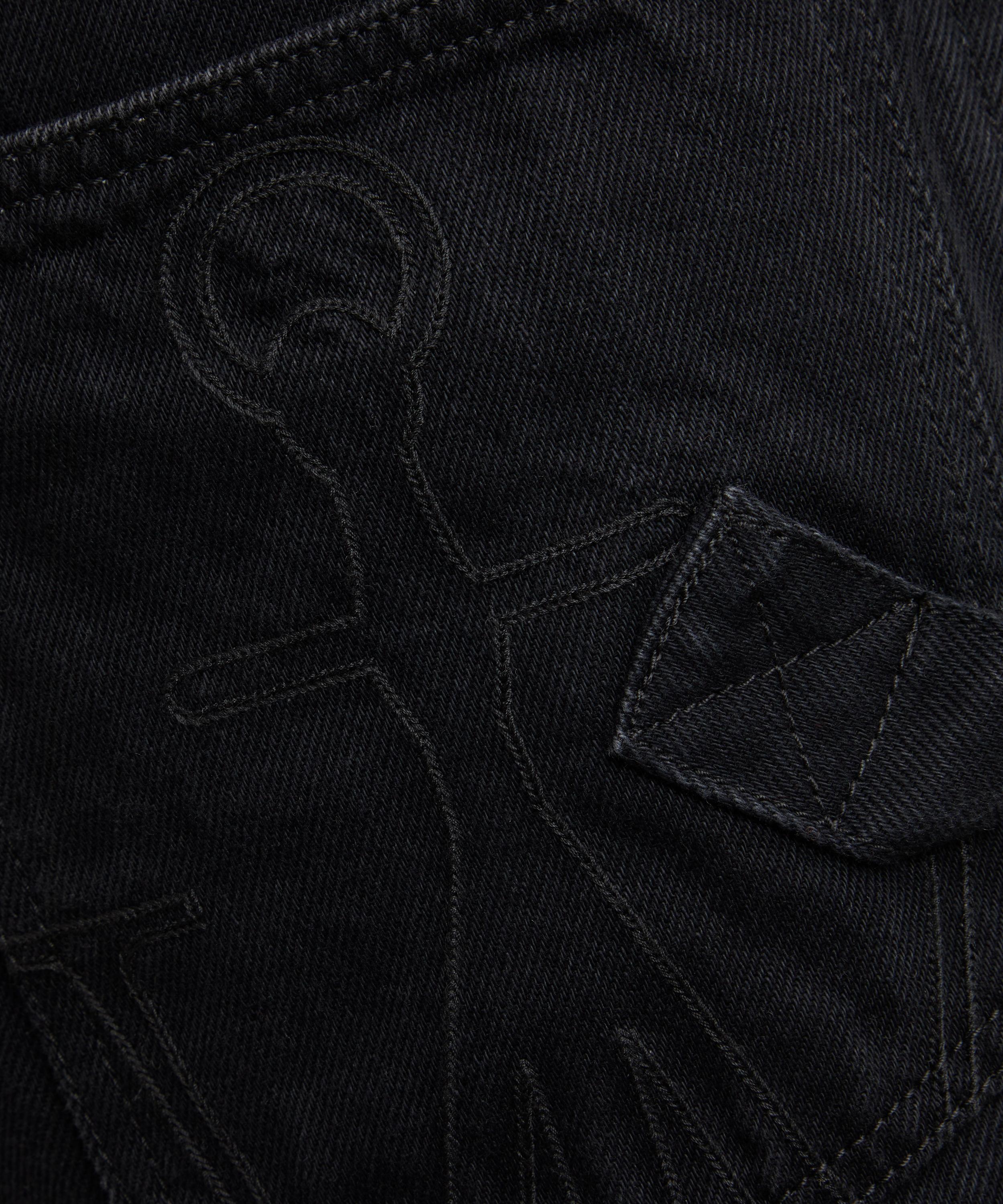 These jeans combine a relaxed fit, low waist, and twisted silhouette for a modern, utilitarian edge. Designed with multiple pockets and a functional carpenter loop, they evoke an authentic workwear aesthetic. An Anchor-embroidered patch pocket and a logo-embossed leather patch at the front add a signature finishing touch to the design.