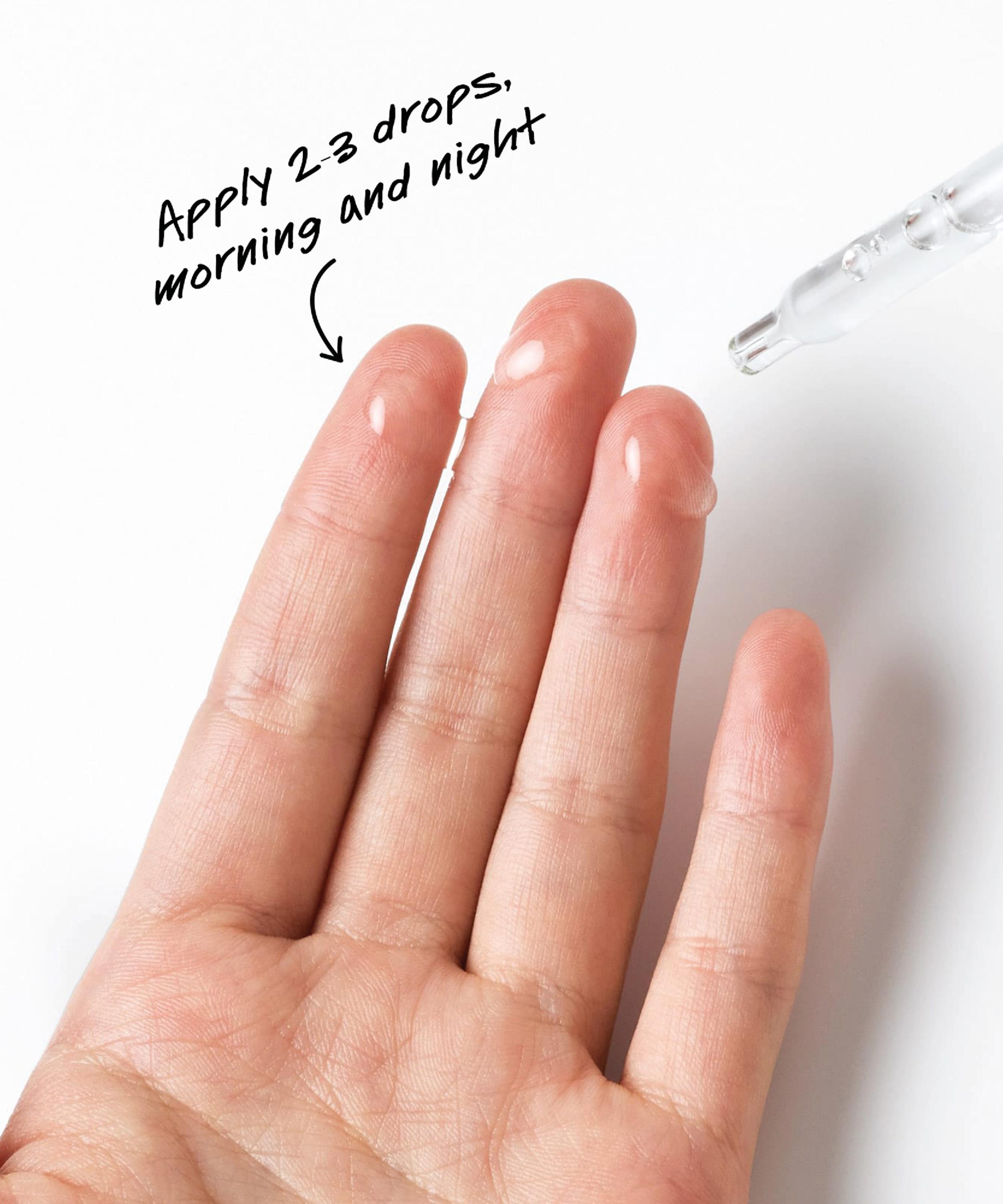 Apply 2–3 drops to clean, dry skin in the morning and evening and layer with other serums as needed.
