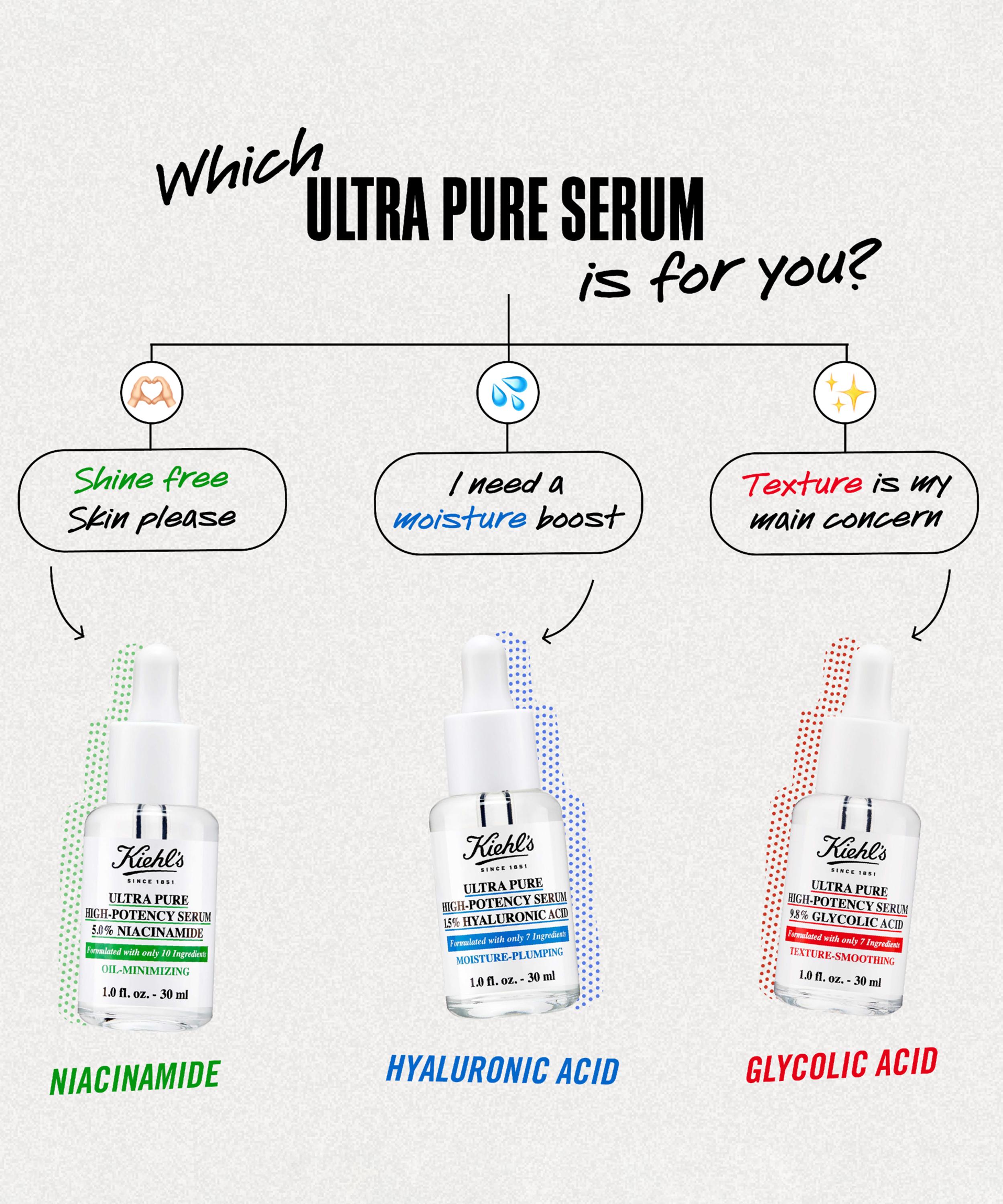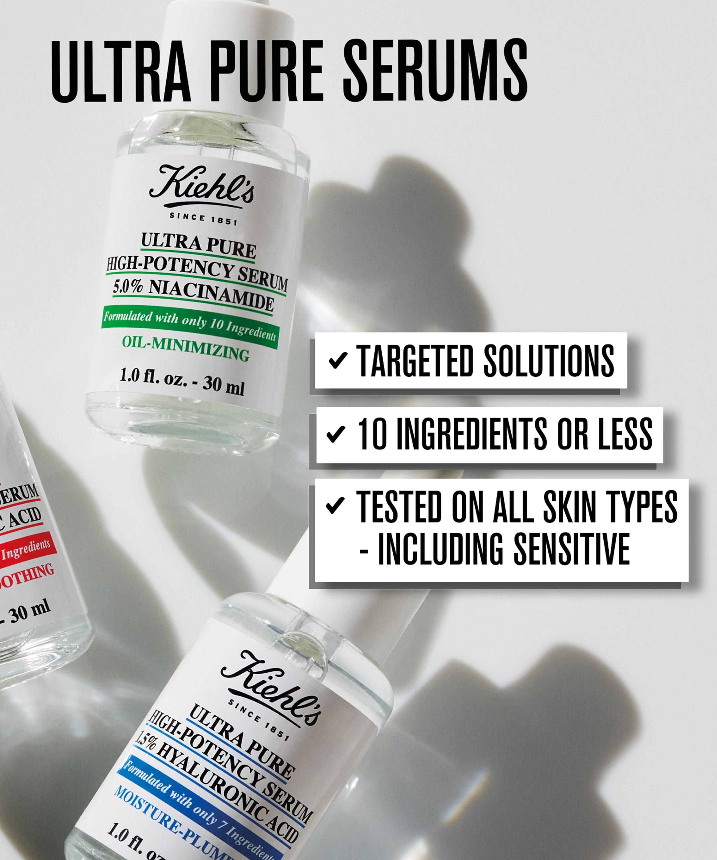 Transform dry, sensitive skin with the replenishing Ultra Pure High-potency Serum 1.5% Hyaluronic Acid from Kiehl's, formulated to quench dehydrated skin, leaving it deeply moisturised and plumped.