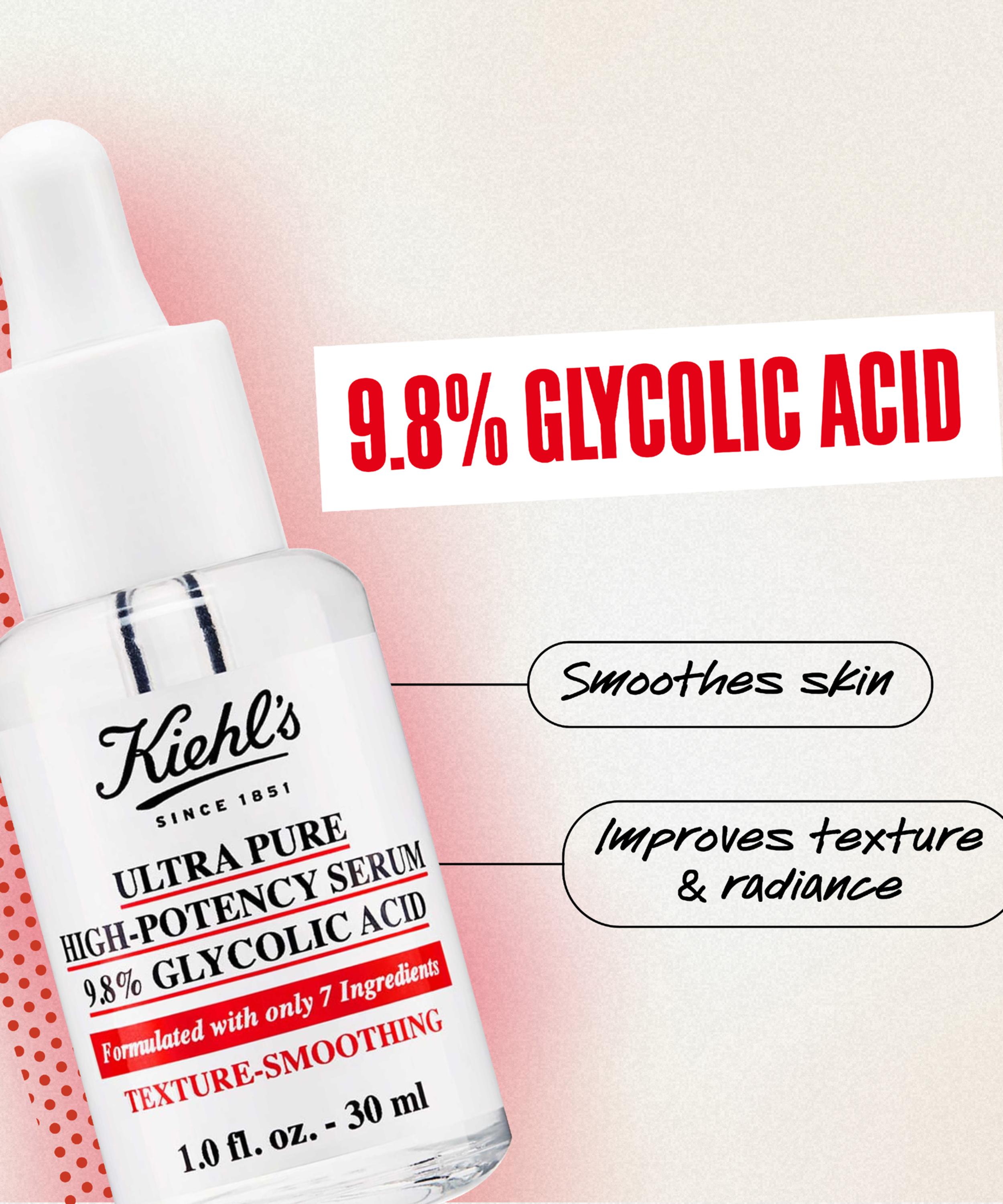Reveal your clearest, most refined complexion with the Ultra Pure High-Potency Serum 9.8% Glycolic Acid from Kiehl's, formulated to transform uneven skin texture.