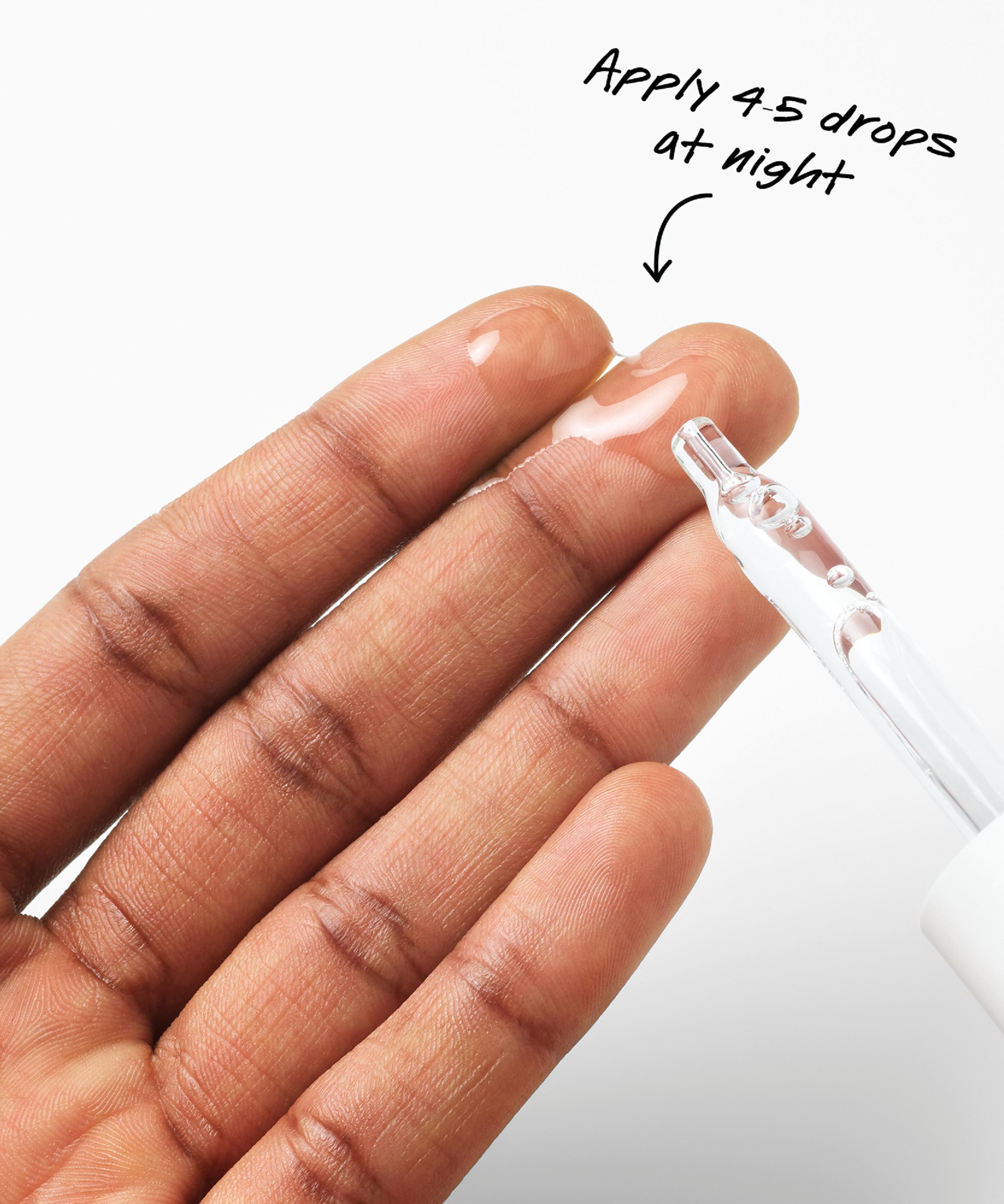 Apply 4–5 drops to clean, dry skin in the evening and layer with other serums as needed