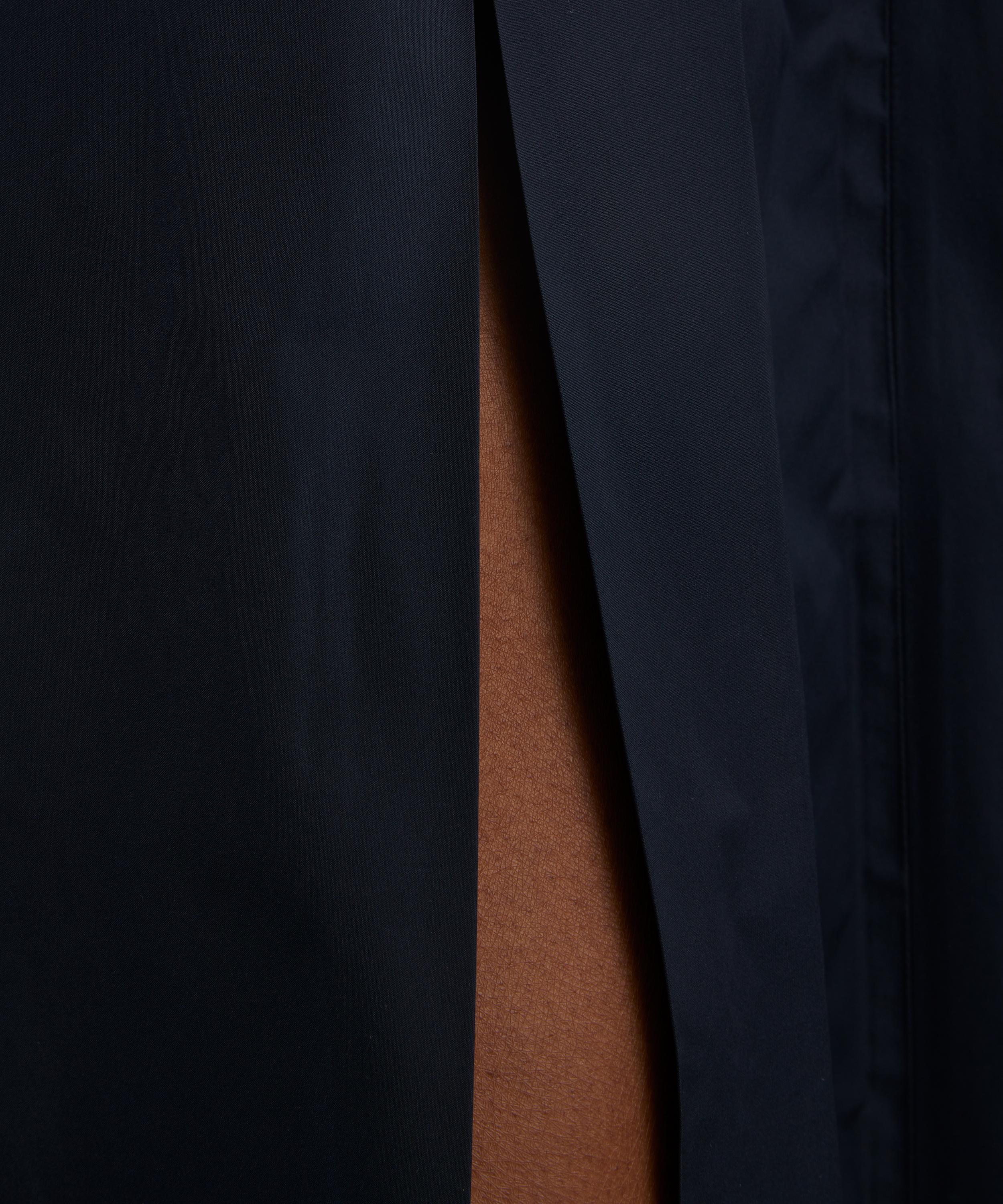 Crafted from water-repellent taffeta in a rich navy hue, the Jokey skirt embodies understated elegance. Its flattering A-line silhouette is enhanced by stitched pleats at the waist, adding subtle volume and graceful movement.
