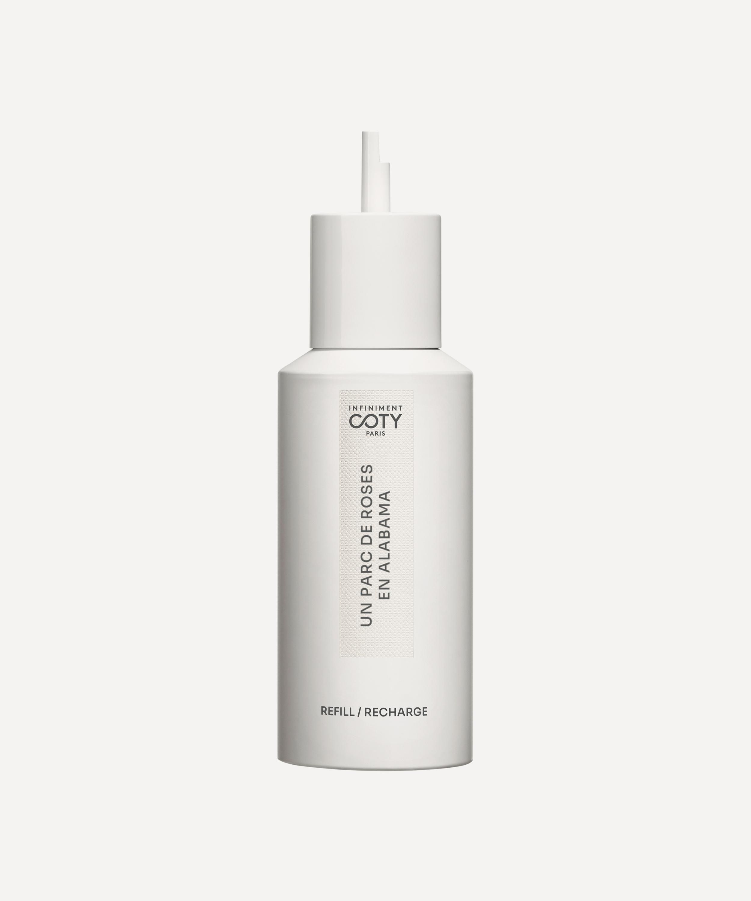 INFINIMENT COTY PARIS' Un Parc de Roses en Alabama parfum refill reveals sumptuously dark and velvety rose petals, enlivened by the golden tears of myrrh.