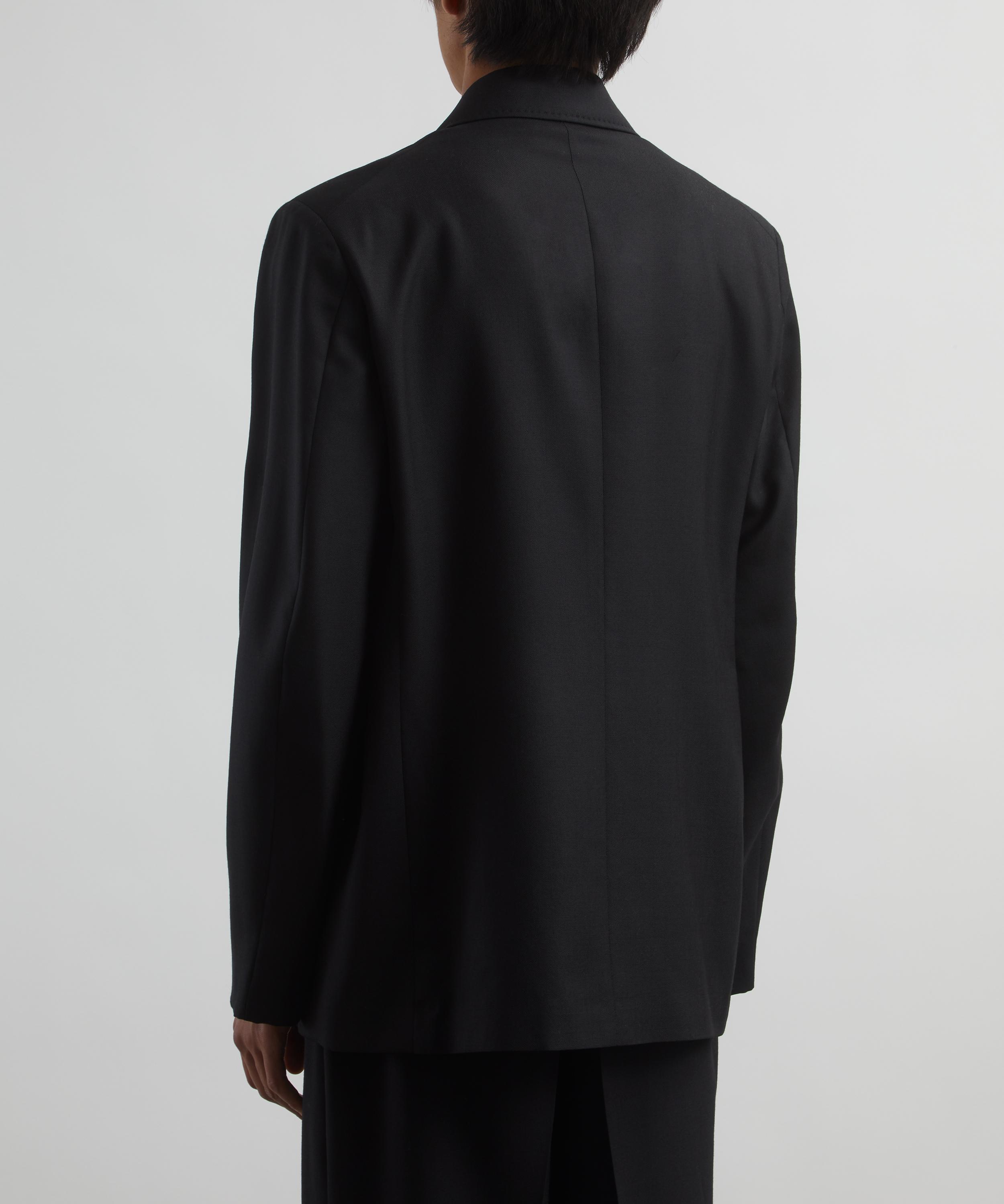 Cut from a fine grain Panama wool cloth for a relaxed fit, this fully lined blazer features a peaked lapel, a single welt pocket and a two flapped welt pockets for a tailored finish, and is secured with a horn button closure.
