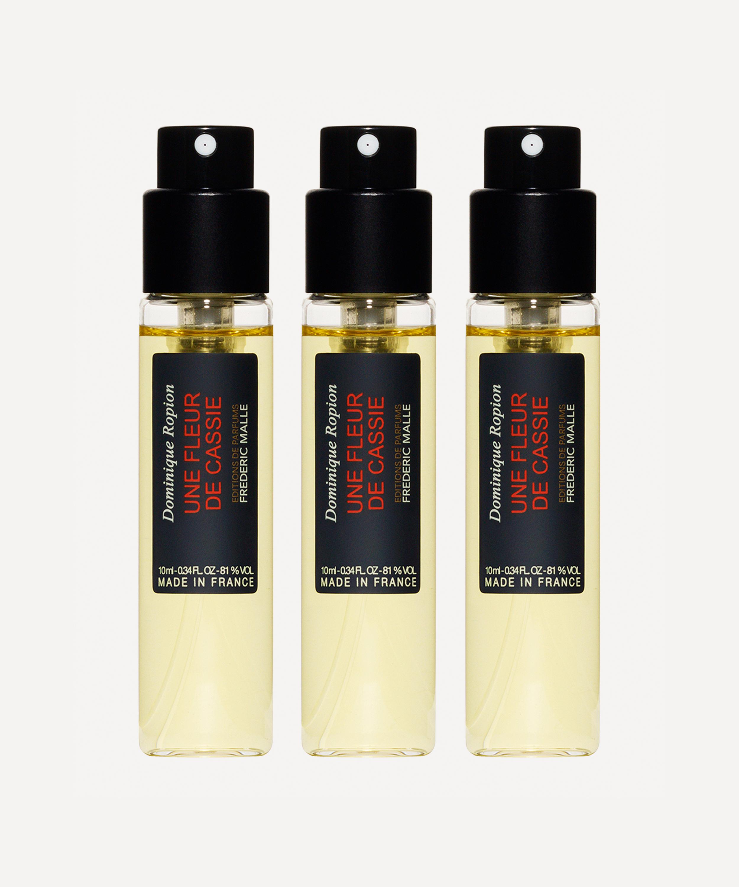 For Frédéric Malle's intoxicating and complicated fragrance, Une Fleur De Cassie, Dominique Ropion takes inspiration from the glamour and grace of the Thirties. Rare and precious notes of mimosa, jasmine, cassia and rose use carnation as a counterpoint, resting upon a rich vanilla and sandalwood base - a highly indulgent and powerful floral. Acquire this travel set to ensure your favourite fragrance is always at hand, wherever life may lead.