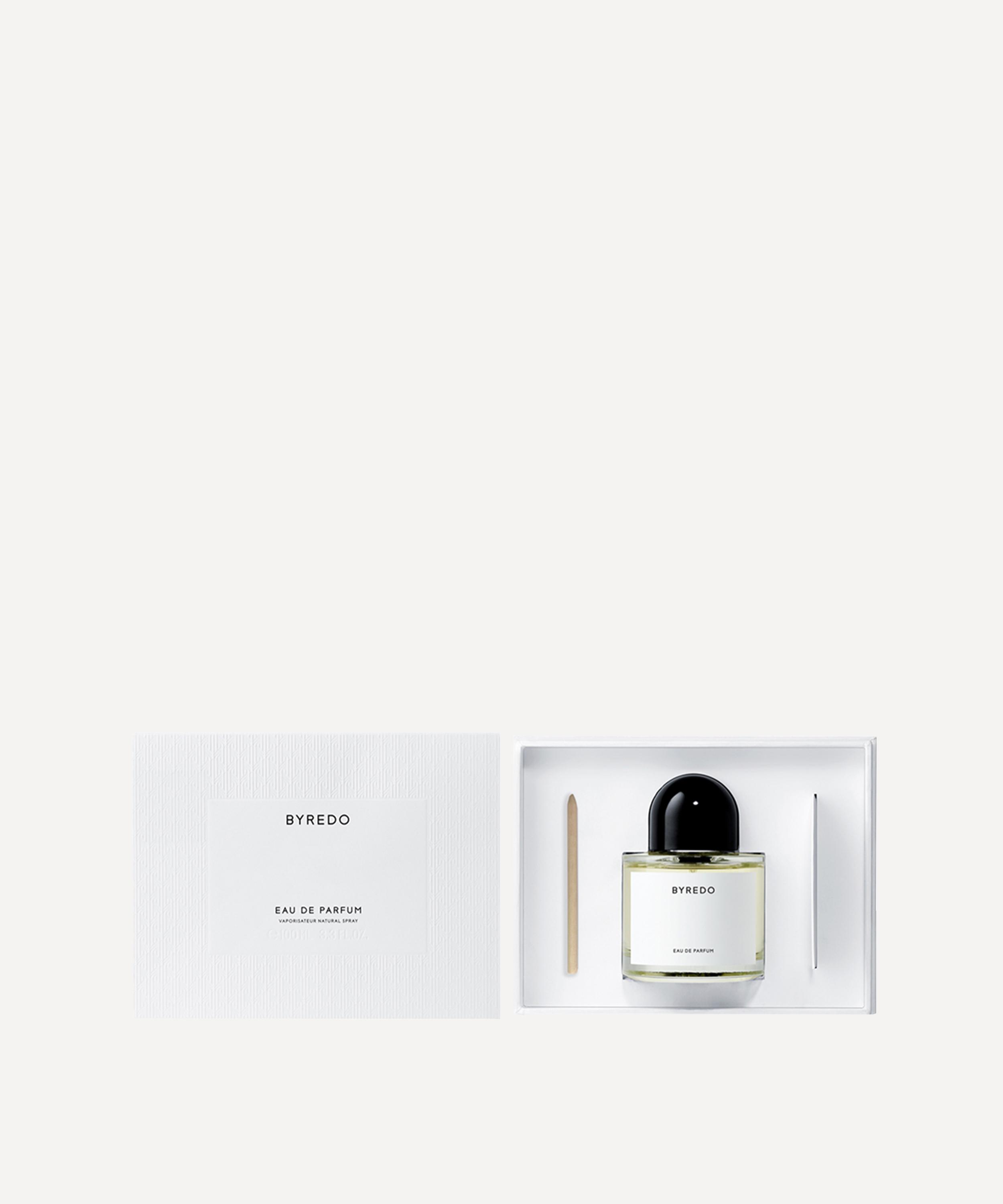 - Features a plain white Byredo label with sticker set