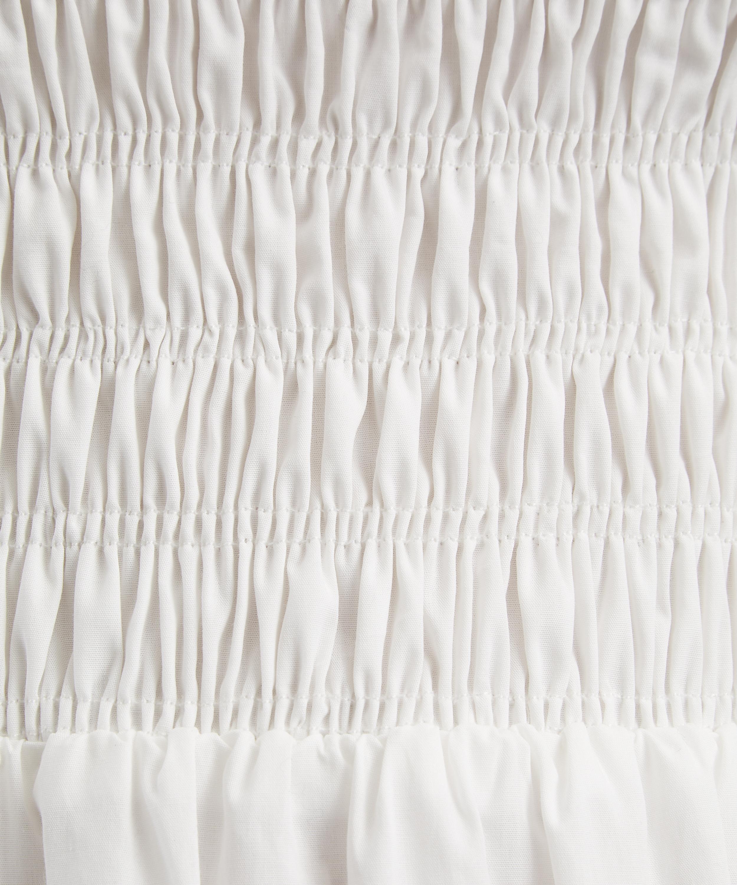 In bright white, this cotton dress is a chic warm-weather staple, featuring an elegant square neckline, ruched cap sleeves, and a shirred bodice that flows into a tiered A-line skirt, finished with lace and delicate pintucks. Pair with simple sandals for a holiday-ready look.