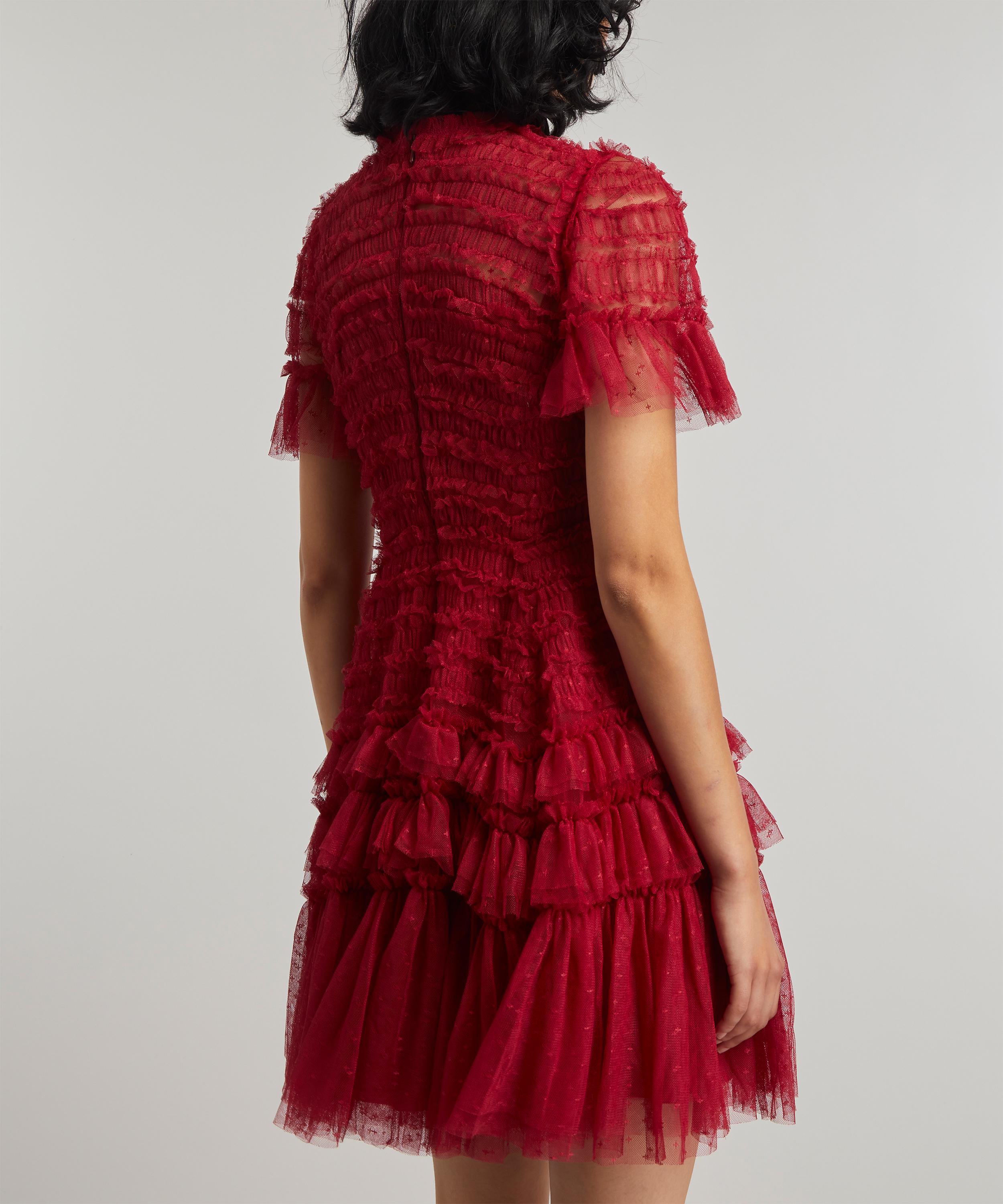 Needle & Thread prides itself on creating the stand-out piece you need for your next celebration – this frivolously feminine tulle mini-dress is no exception. Crafted from layers of signature Kisses tulle, this whimsical mini-dress has a sweeping short-skirt adorned with tiers of delicate frills. Youthful and beguiling, its impeccable styling is certain to turn heads.
