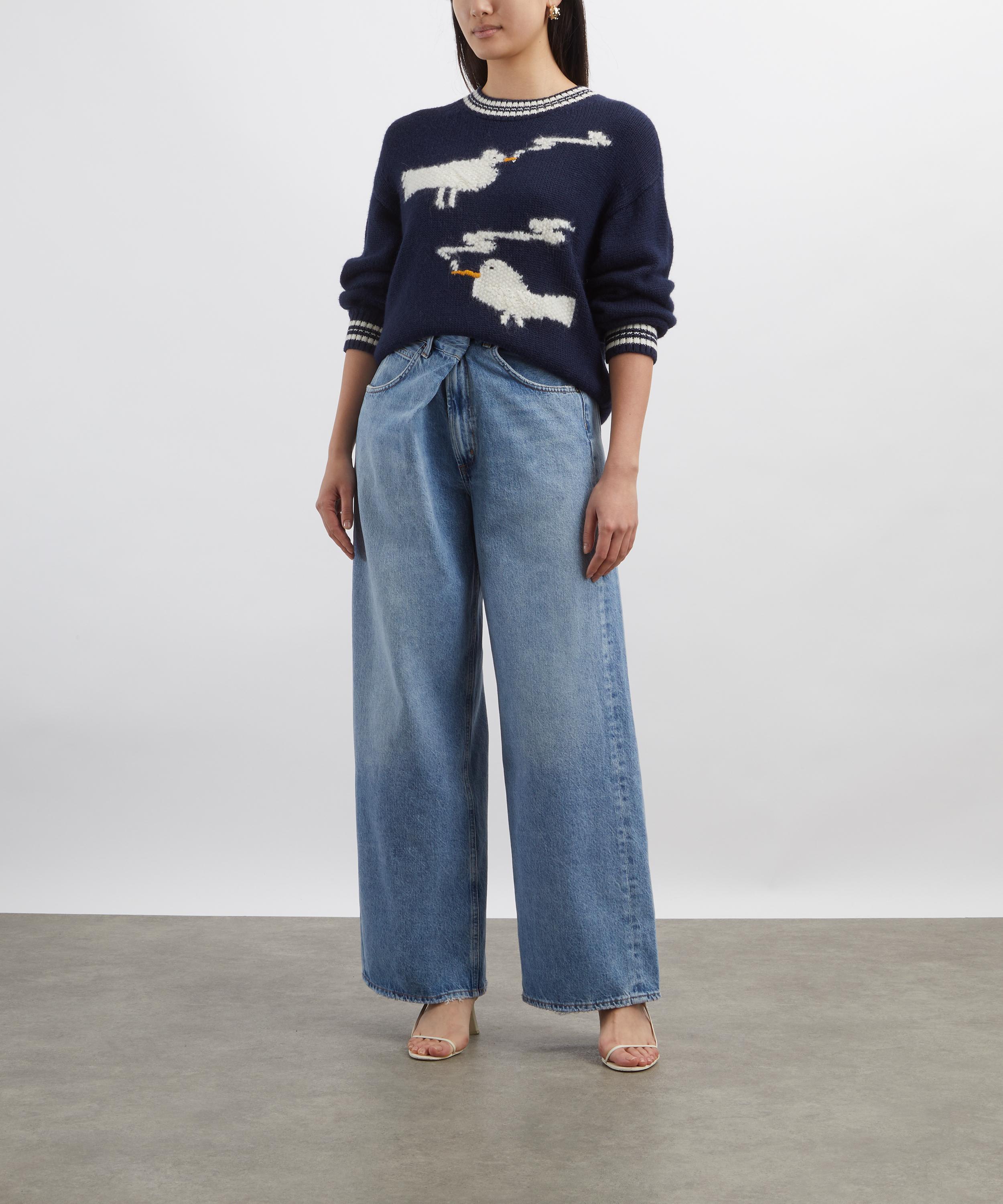 Crafted from non-stretch, weightless denim in a vintage marbled indigo wash, the Vana Fold jeans are defined by a relaxed wide-leg silhouette and a distinctive fold-over waist detail, creating a sculptural twist on an otherwise laid-back shape.