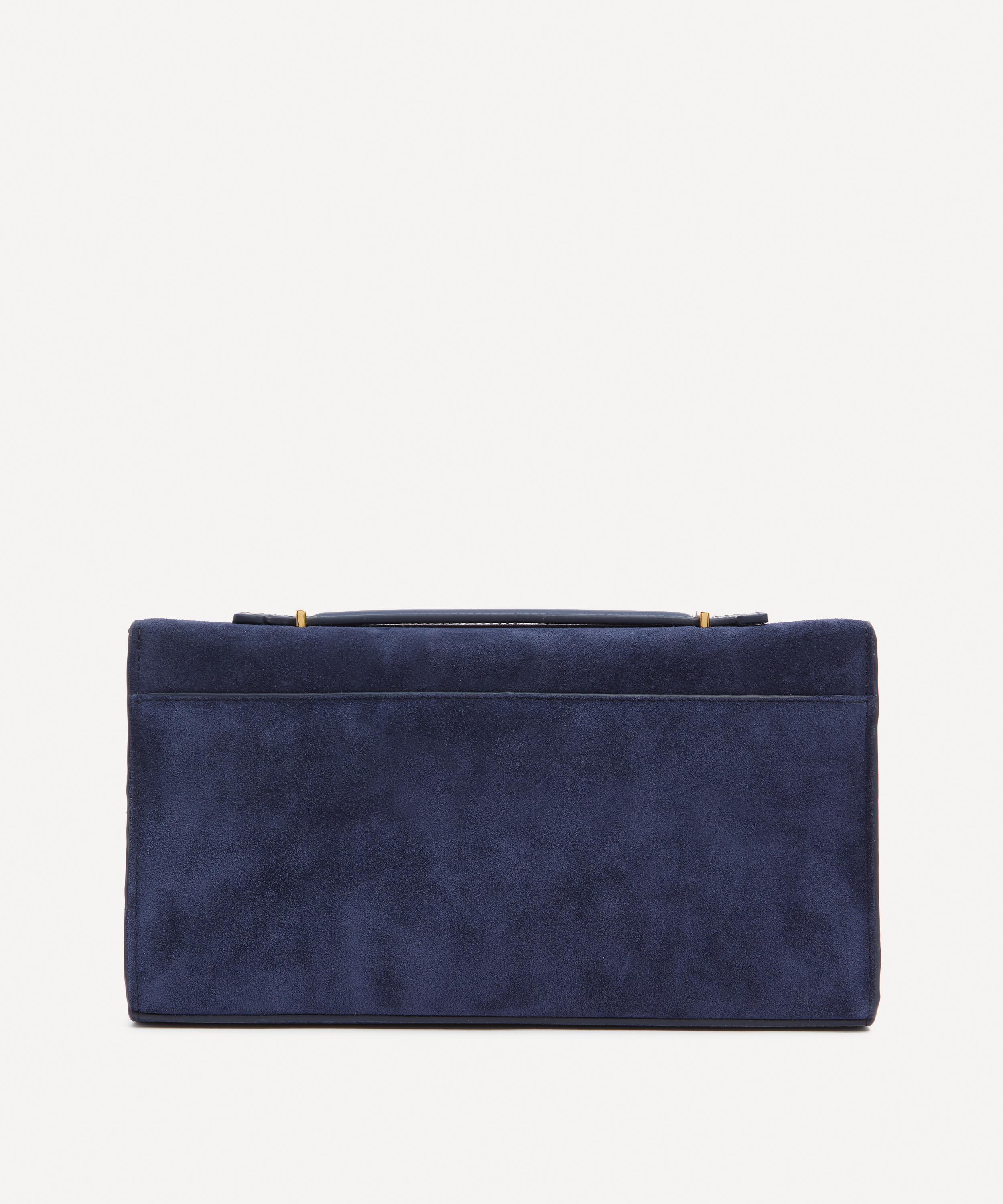Handcrafted with integrity from velvety suede by skilful artisans, it’s defined by an elongated, oblong silhouette, adorned with the brand's signature gold-plated double bar lock. Complete with a retractable top handle and an intricate long chain strap, it can be carried by hand, tucked under the arm, or over the shoulder.