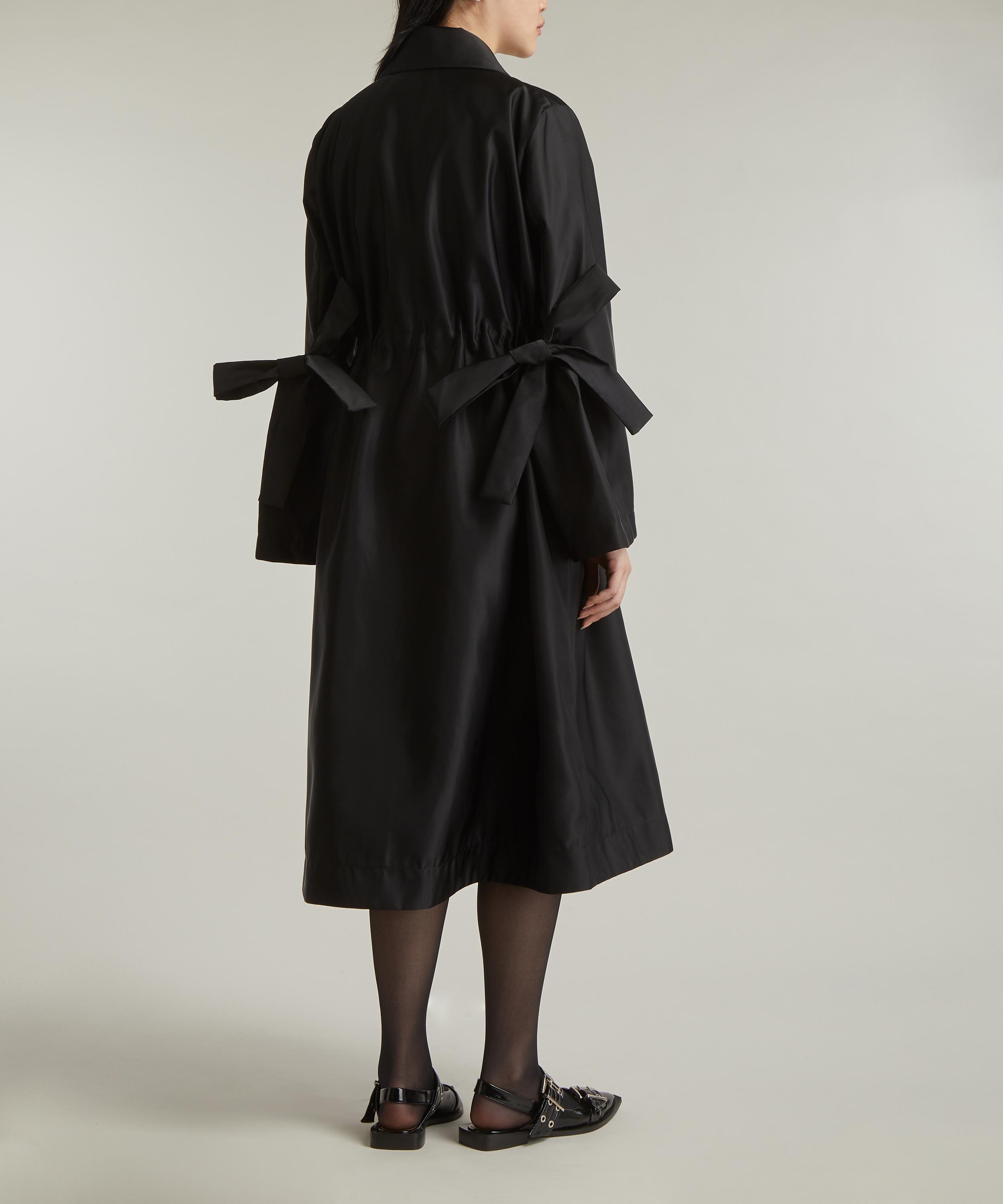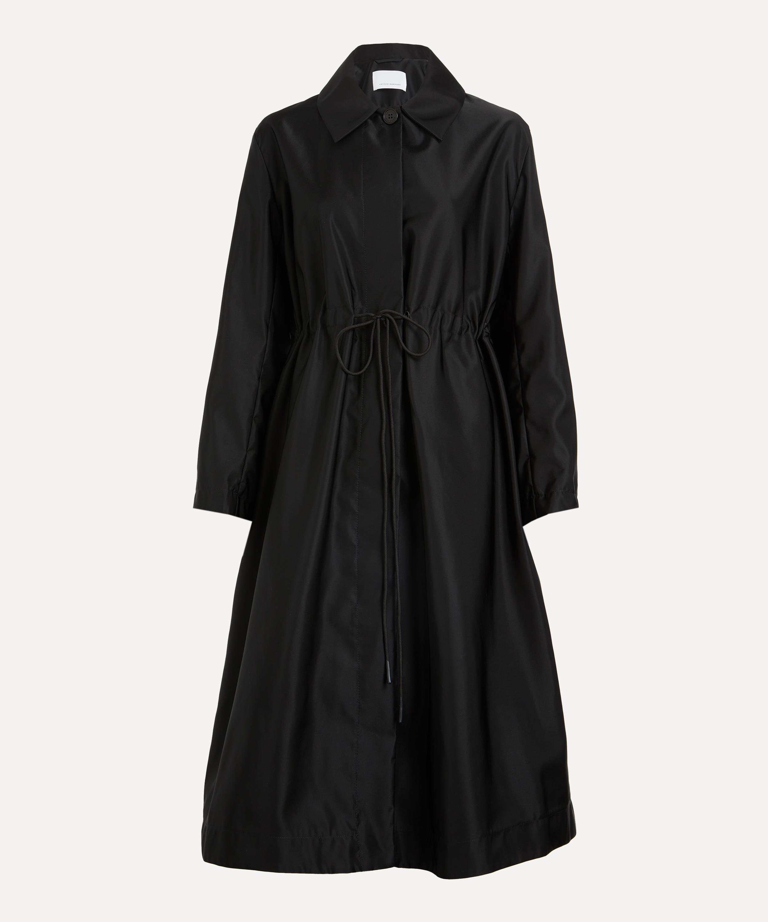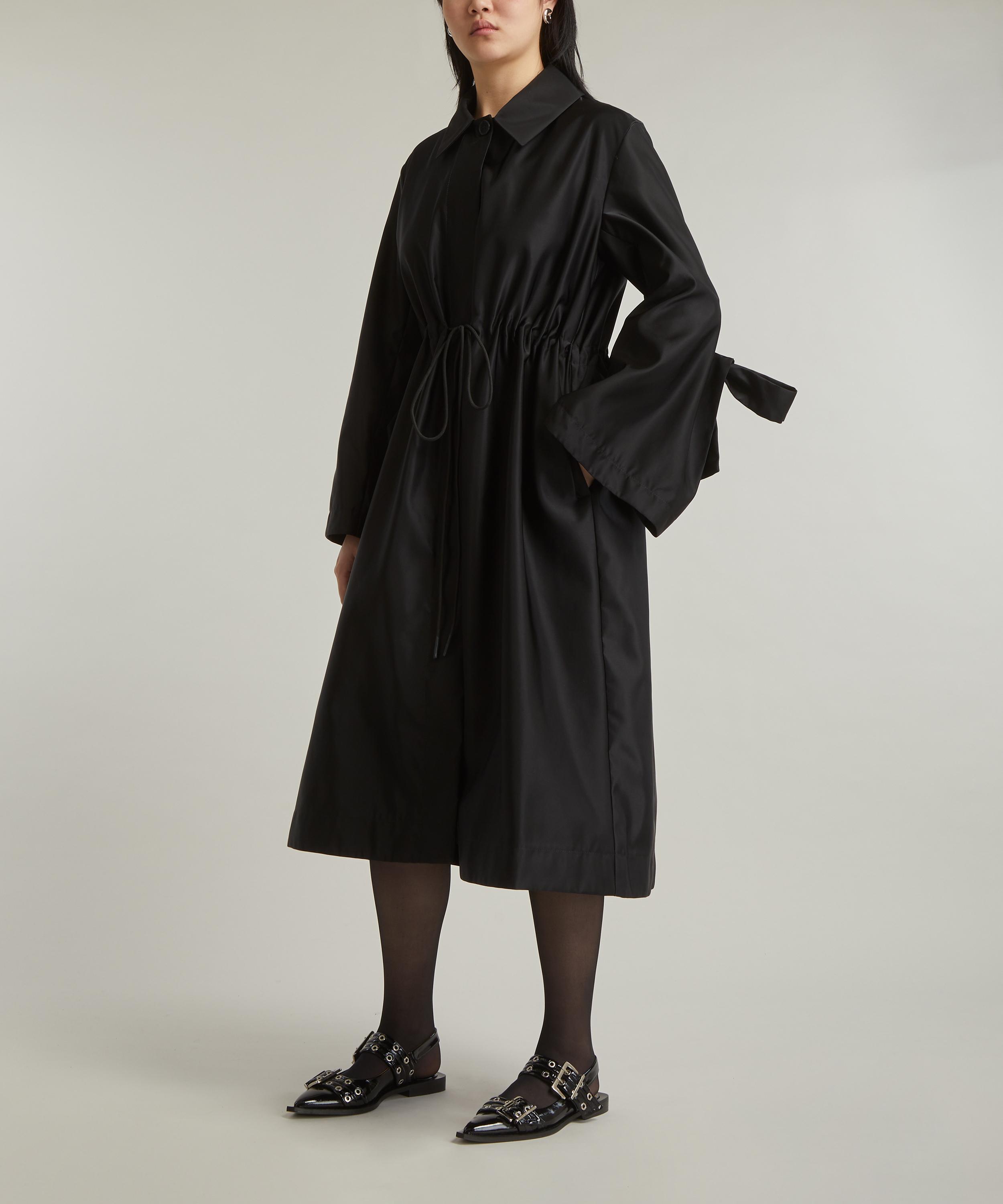 Update your outerwear edit with the Vania Coat from Cecilie Bahnsen, a playful piece that embodies the designer’s alluring aesthetic for whimsical silhouettes with a sculptural edge. Fashioned from a technical canvas with a lustrous finish that brings a fluid look to the sleek silhouette, this mid-length coat is designed to be constantly re-interpreted with its drawstring tie running through the waist and oversized wrist bows.