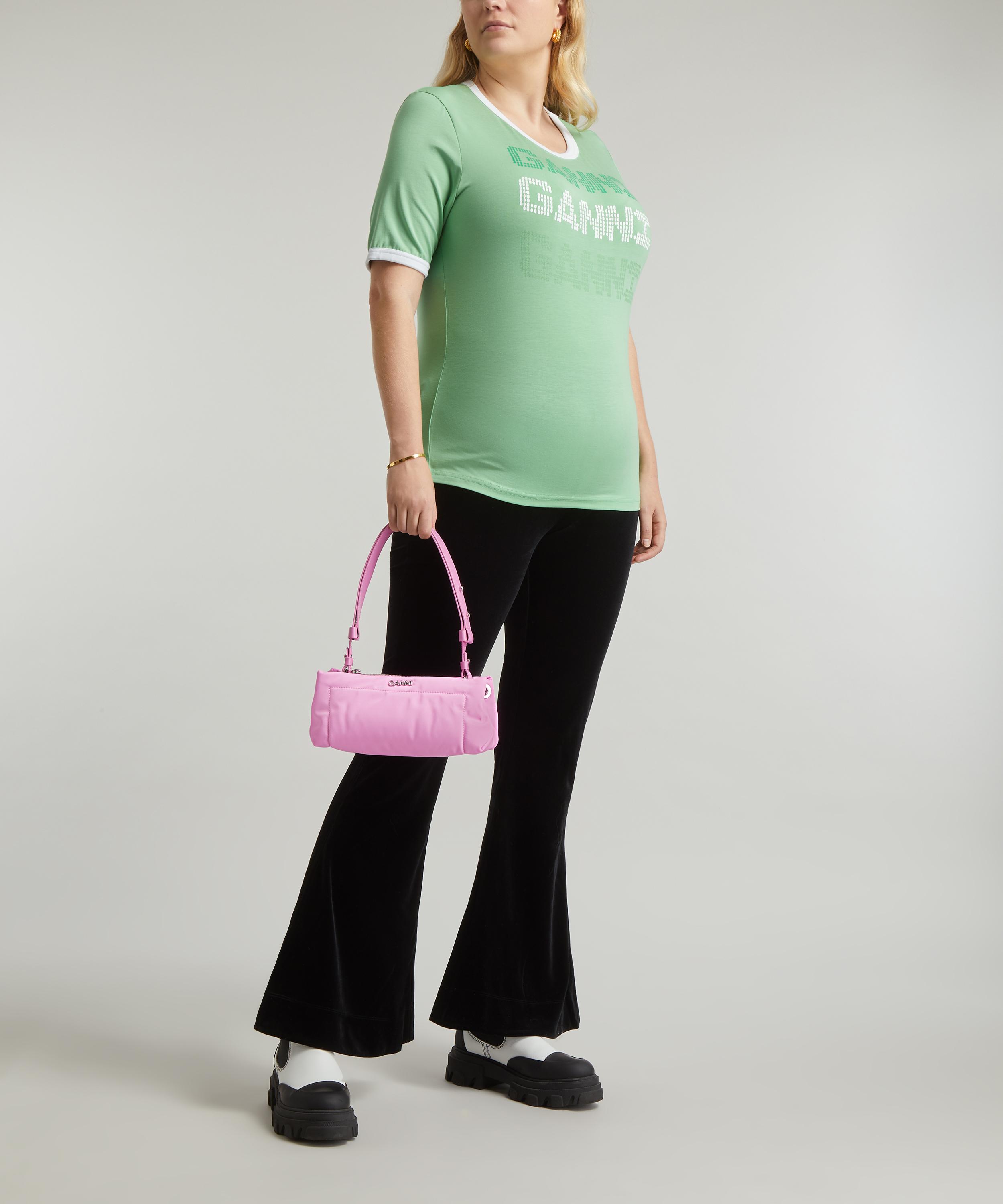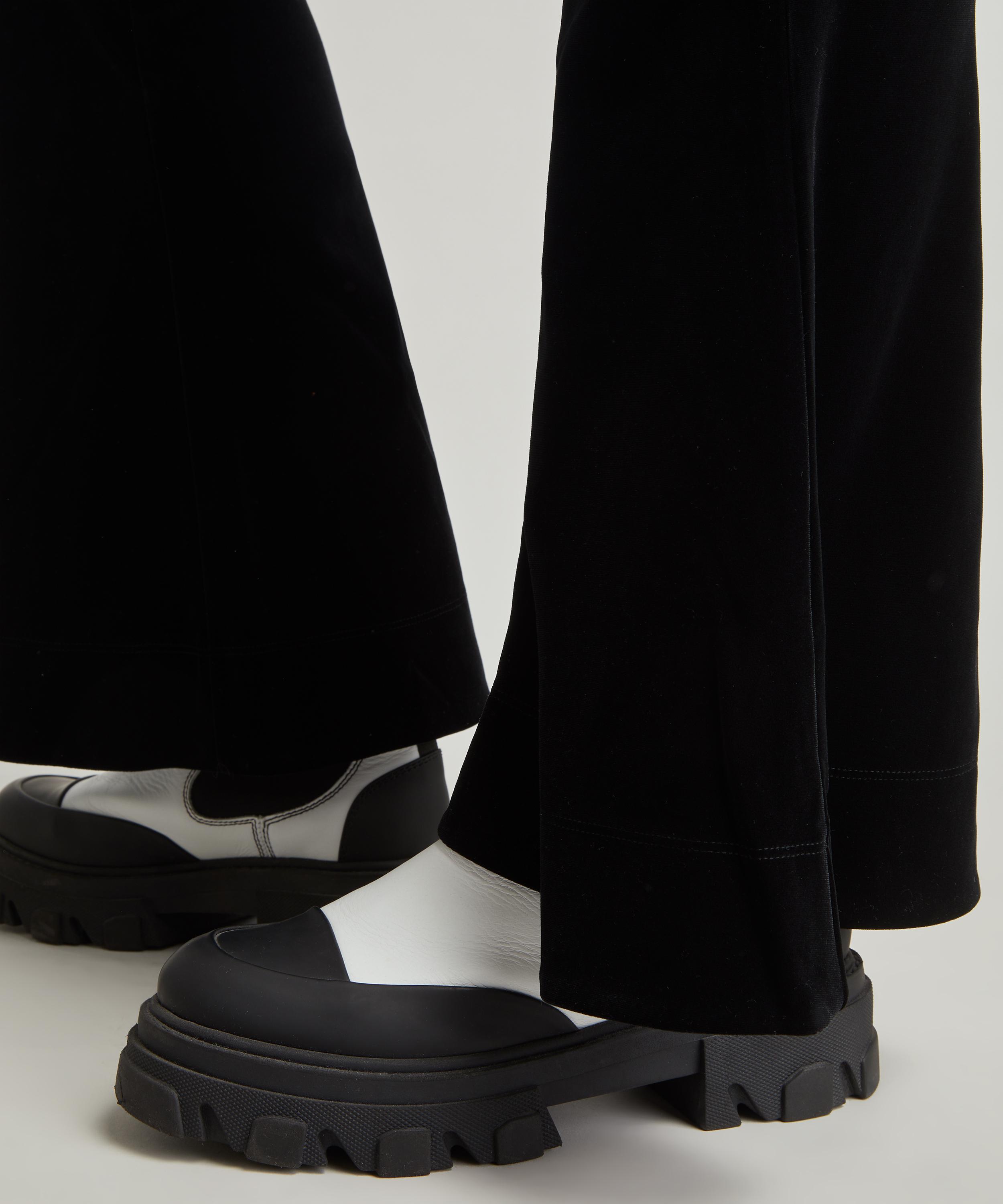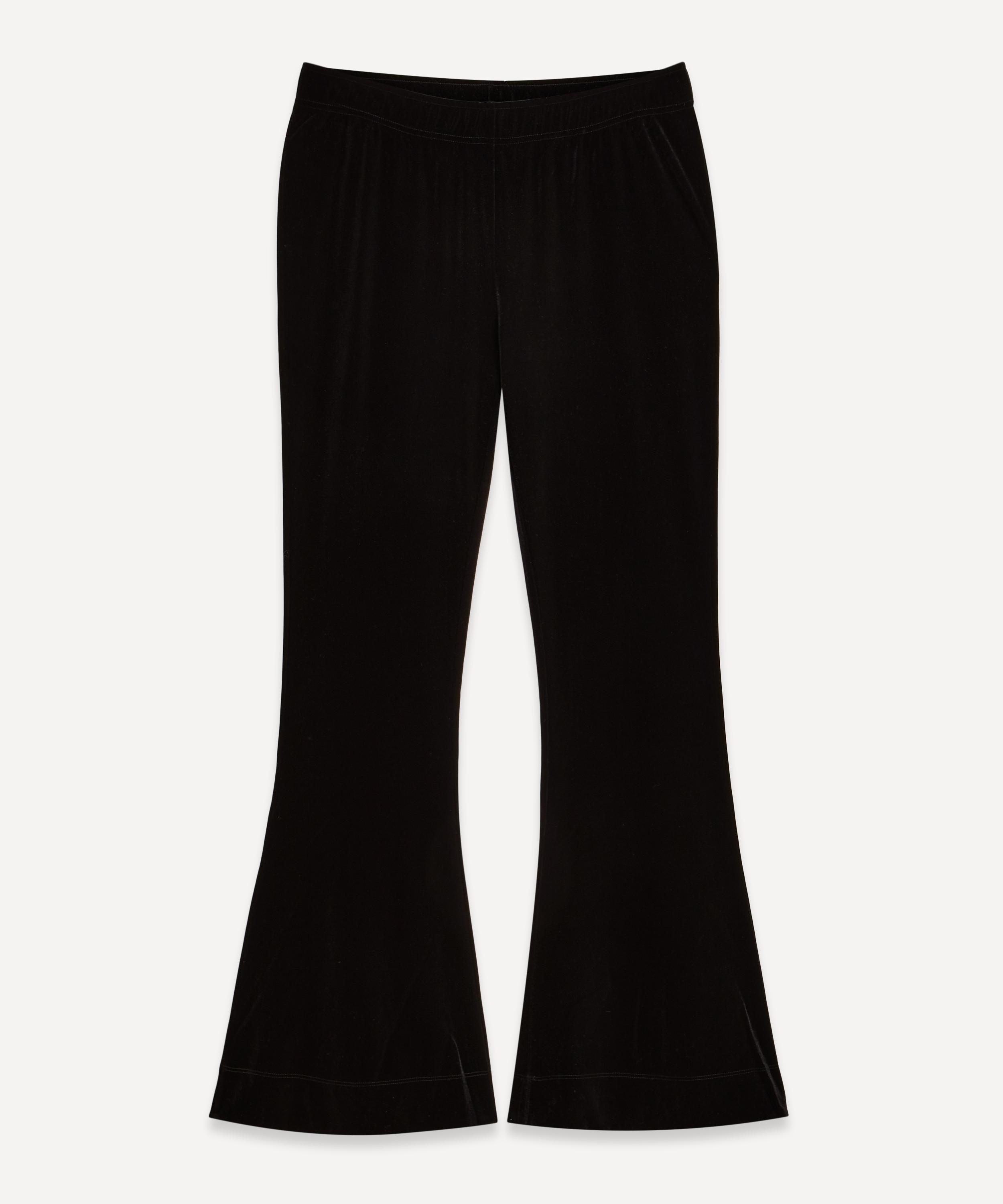 An everyday, essential style with a retro-infused silhouette, these velvet flared trousers are by GANNI. Crafted from a blend of 94% certified recycled polyester that’s cuts for a slim-fit with a ‘70s-inspired wide-leg, these bell-bottoms feature a super-comfortable elasticated waistline.