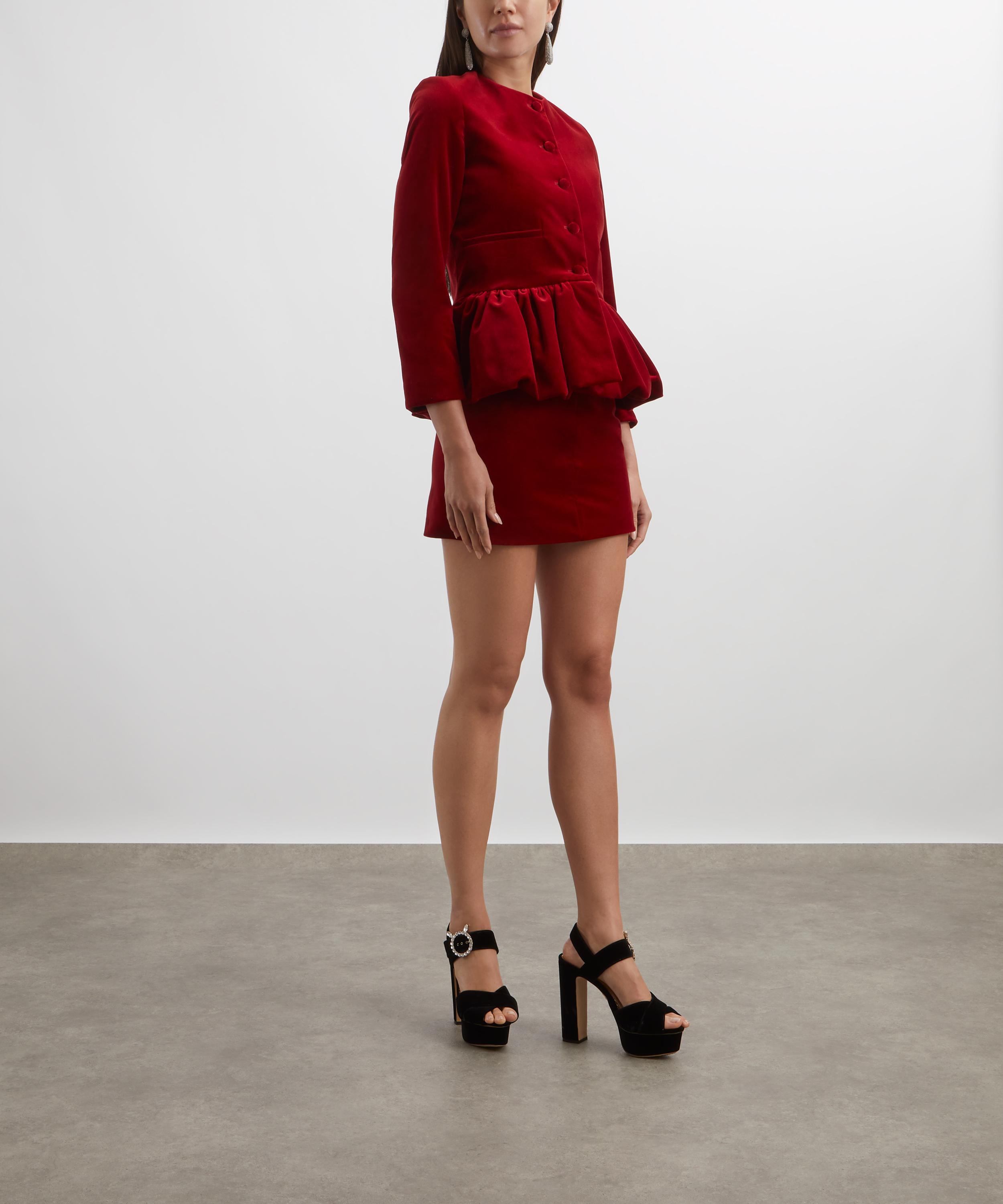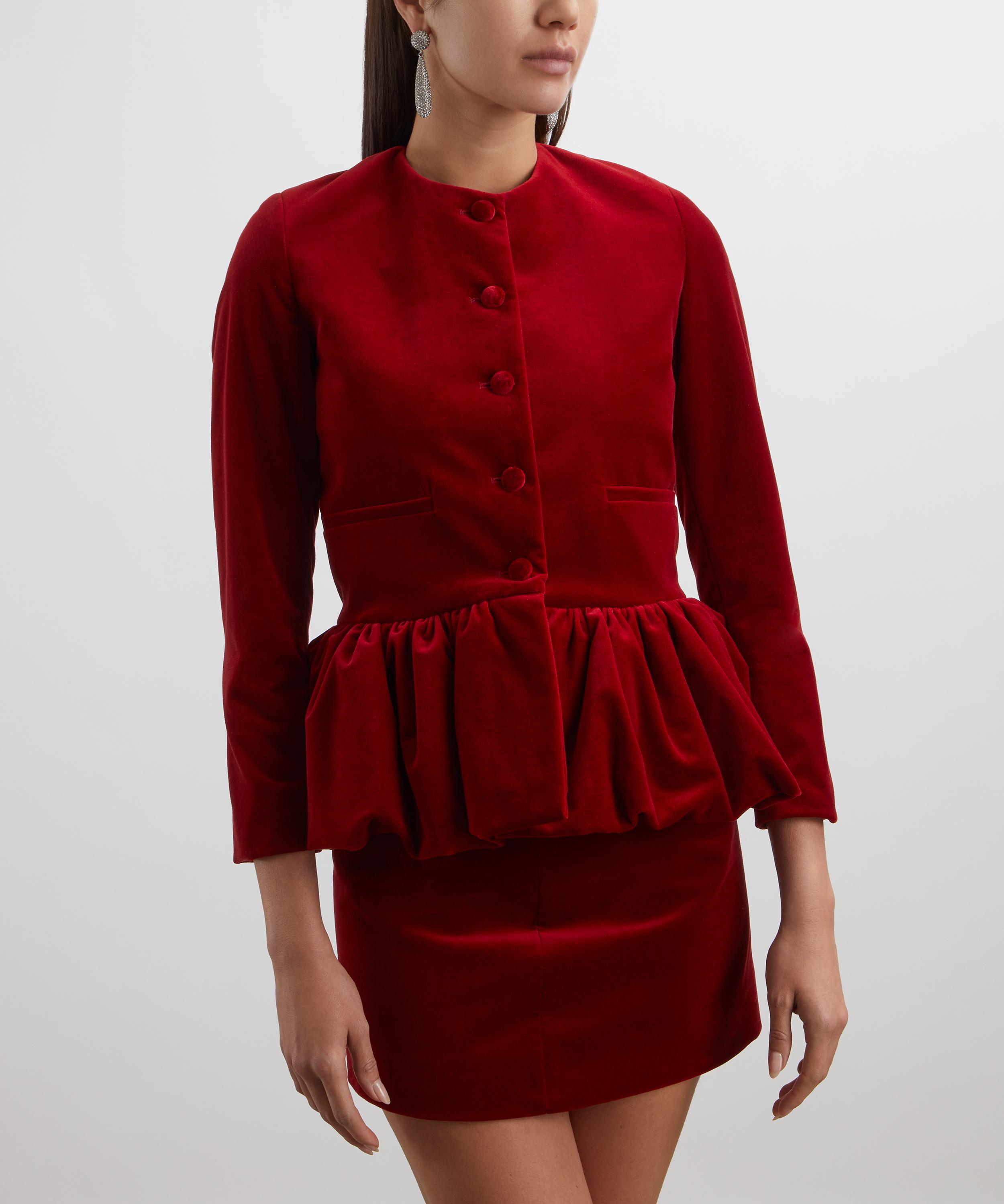 Elevate your seasonal staples with the refined opulence of the Velvet Peplum jacket from London based label Liberowe.