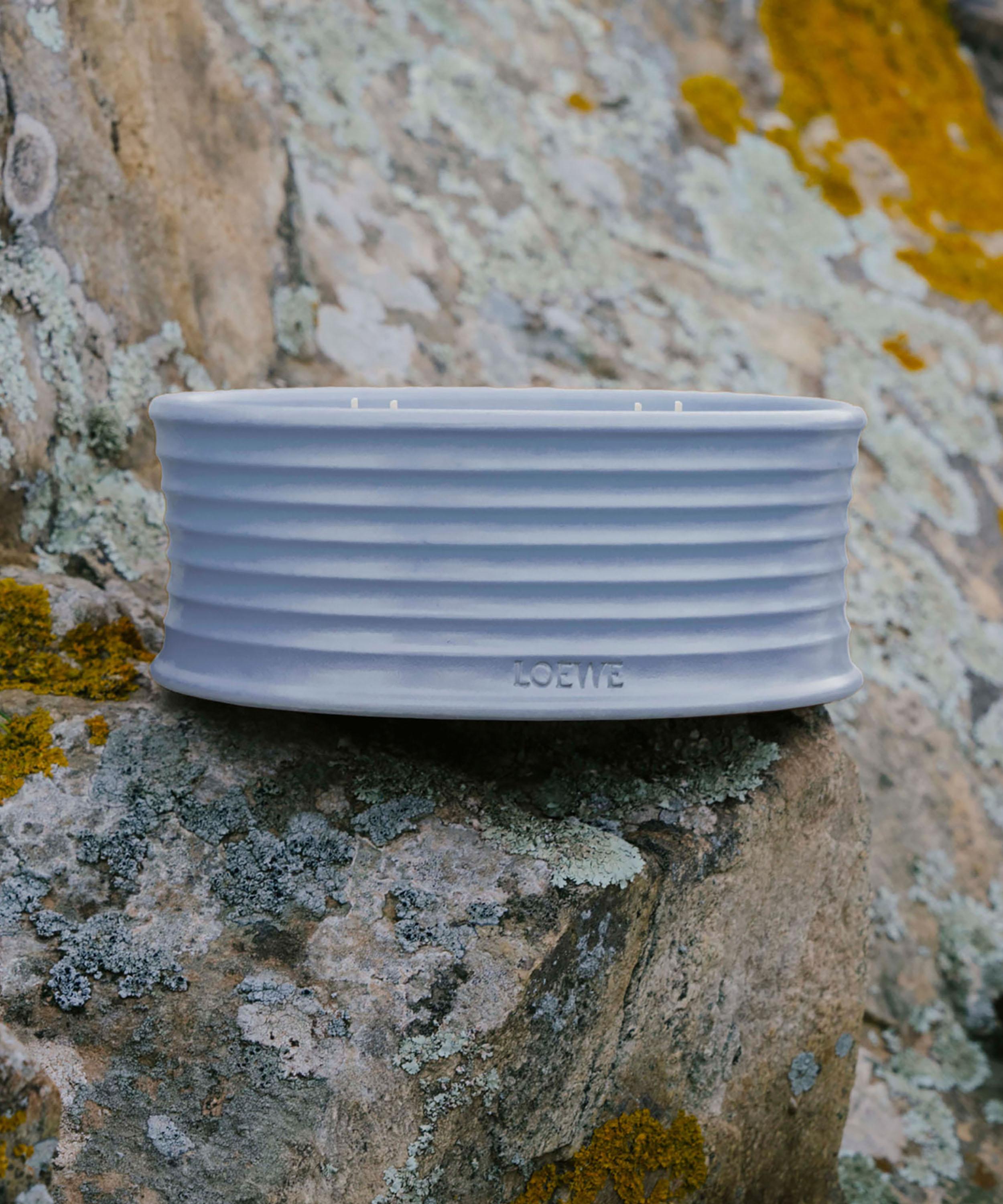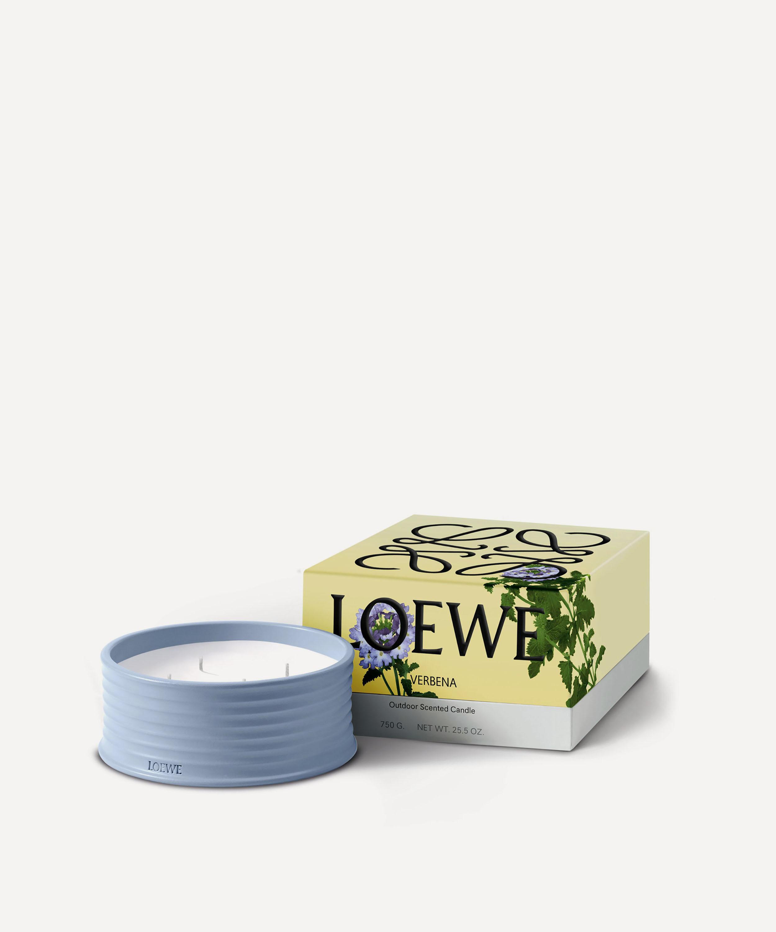 The Verbena Outdoor Candle from Loewe is meticulously crafted from vegetable wax, and presented in a signature glazed, ribbed terracotta earthenware vessel.