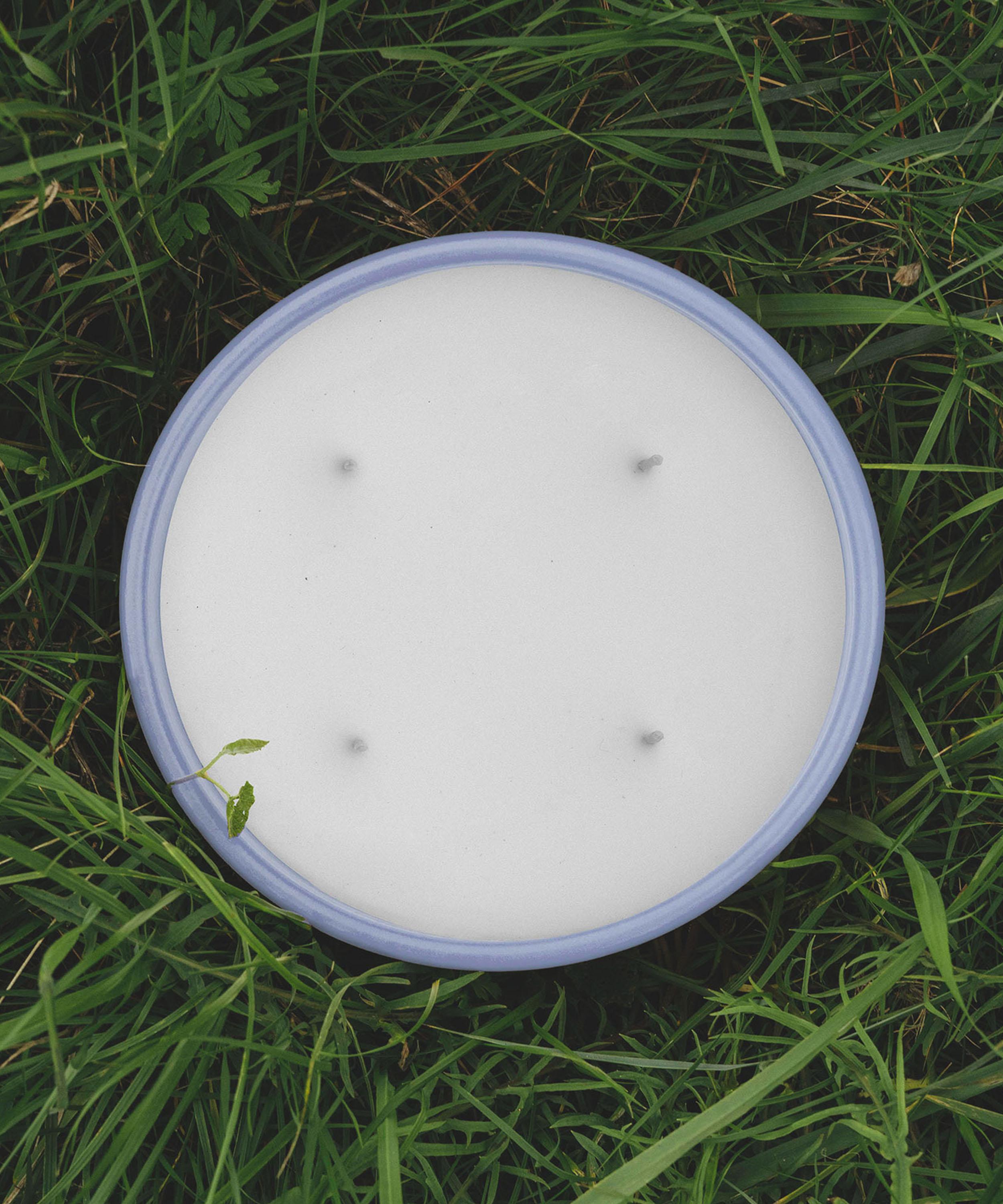 - Housed in a pale blue-glazed terracotta earthenware vessel