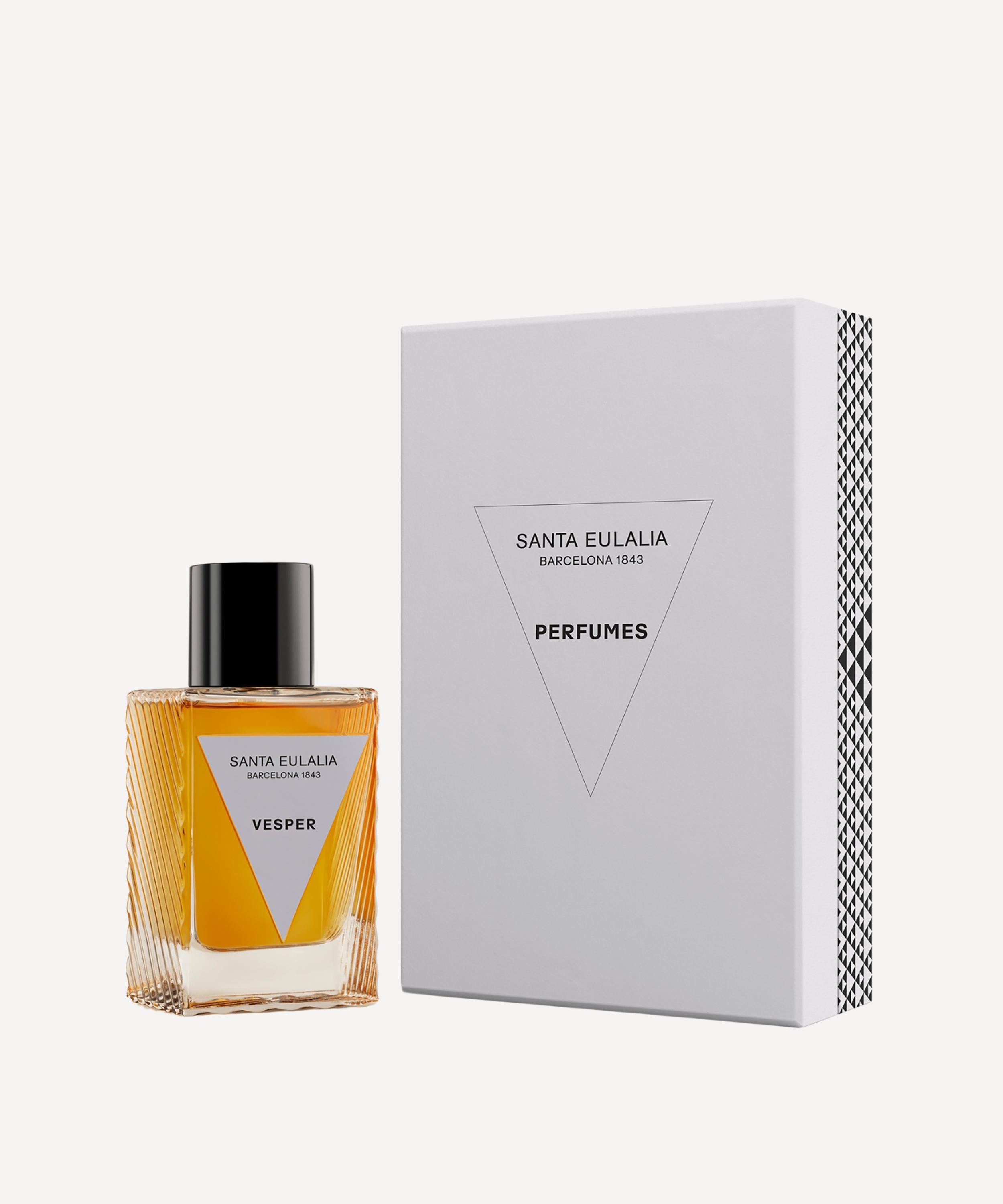 Santa Eulalia's Vesper eau de parfum captures a romantic evening stroll through the streets of Barcelona with pale woods, precious spices and aromatic botanicals.