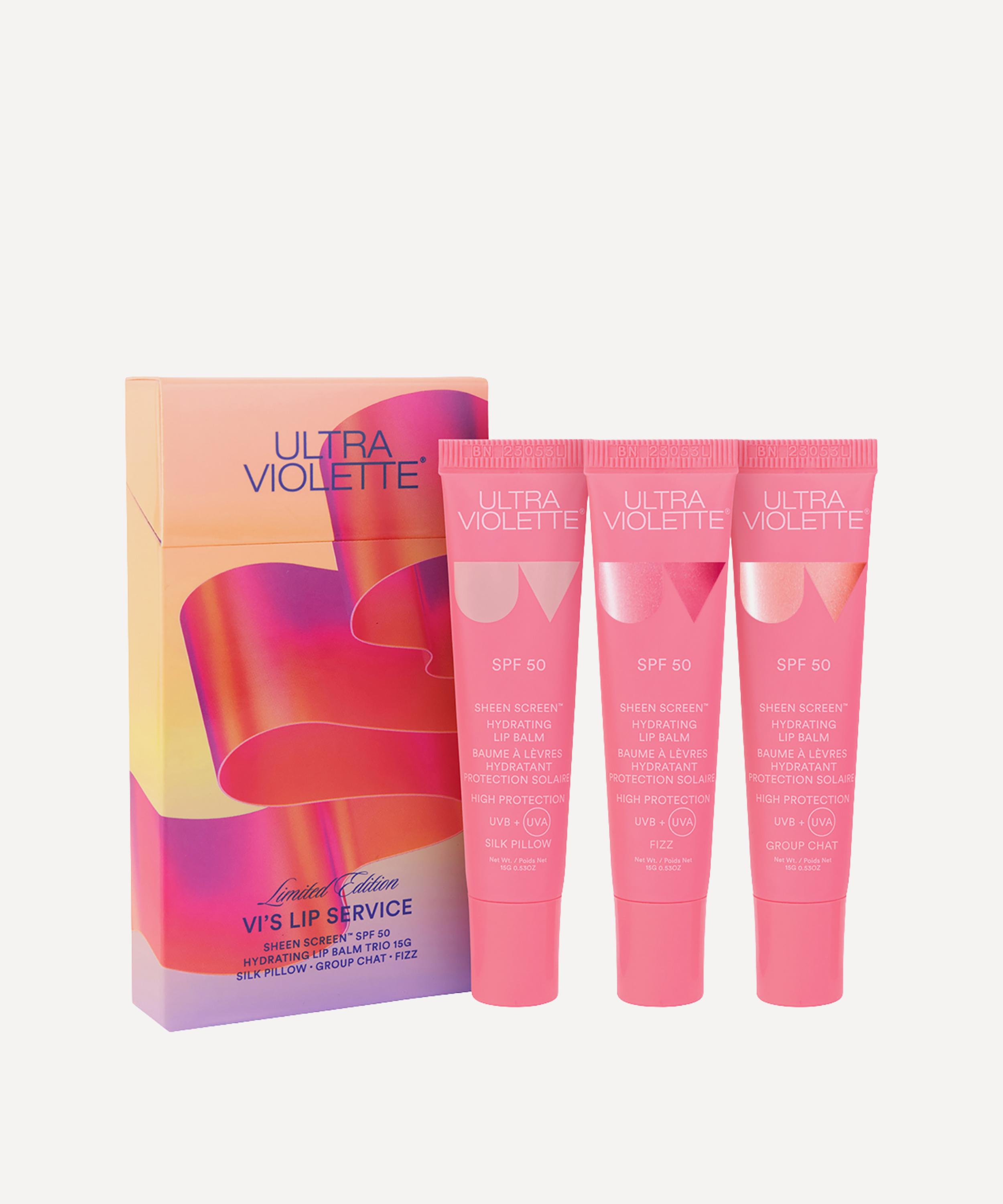 - Vi’s Lip Service includes: Sheen Screen™ SPF 50 Hydrating Lip Balm in Silk Pillow 15g, Fizz 15g and Group Chat 15g