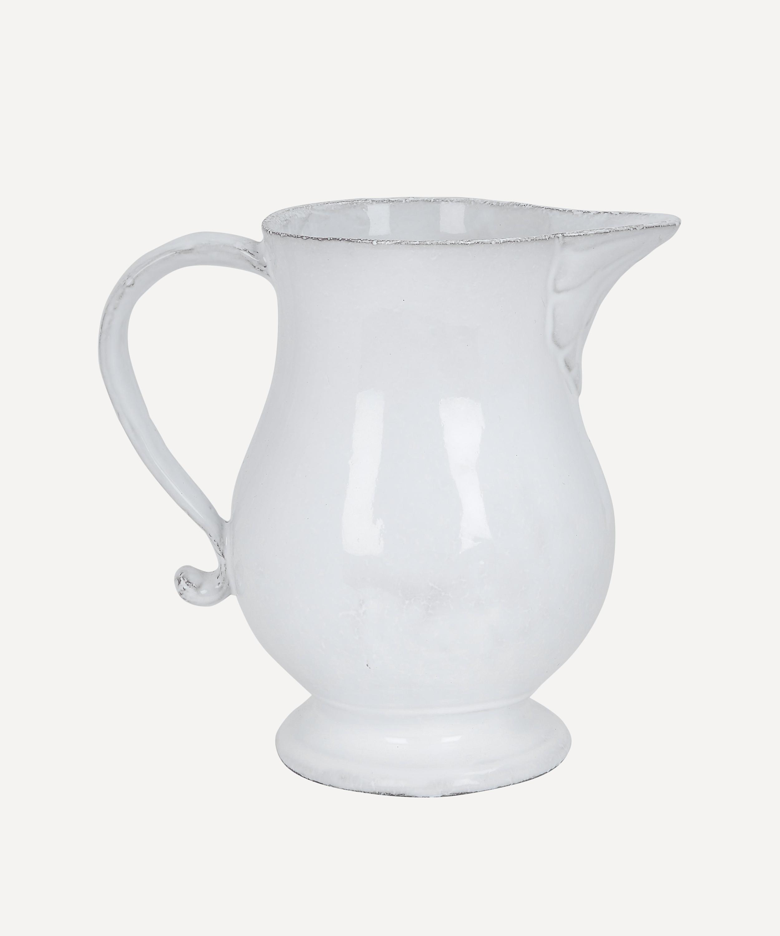 Votary of pre-industrial fabrication, Astier de Villatte is celebrated for being the one and only studio in Paris to hold and harbour the traditions of artisanal ceramic production. Restoring the ancestral systems of moulding and stamping, the Victor pitcher is made using techniques from the Middle Ages which involve moulding a sheet of handmade clay, double firing the ‘biscuit’ piece and glazing the product in white enamel – a lengthy process that requires a drying time of up to one month. Characterised by its well-rounded form, the jug is engraved with the brand’s signature crest - depicting an interlacing A & V - alongside the initials of one of the 40 master artisans who created it. Each handmade piece tells a beautiful story, it romances and imparts a sense of nostalgia into its owner. Arrange with other serveware in the collection to breathe an air of authenticity into your dining collection.