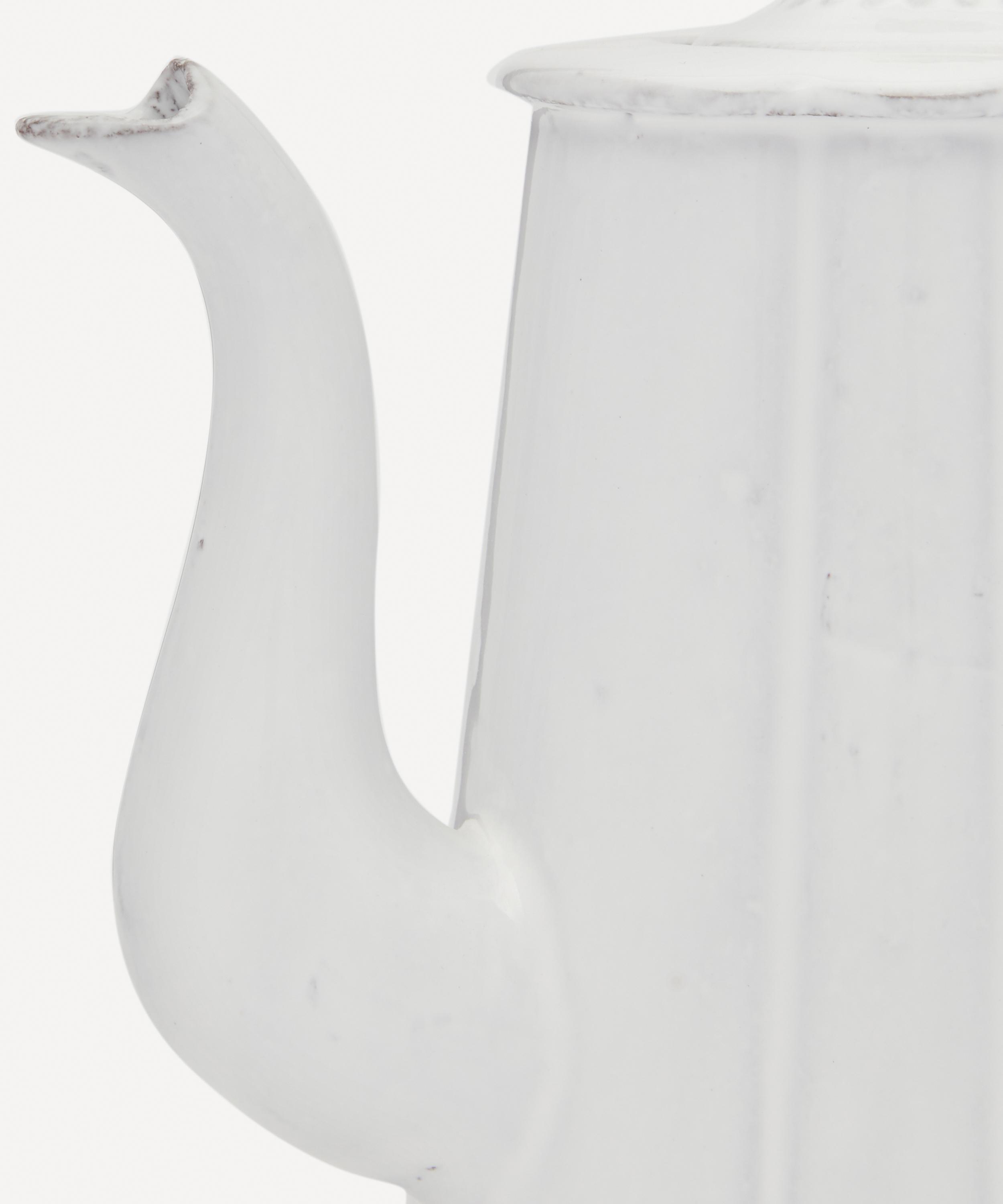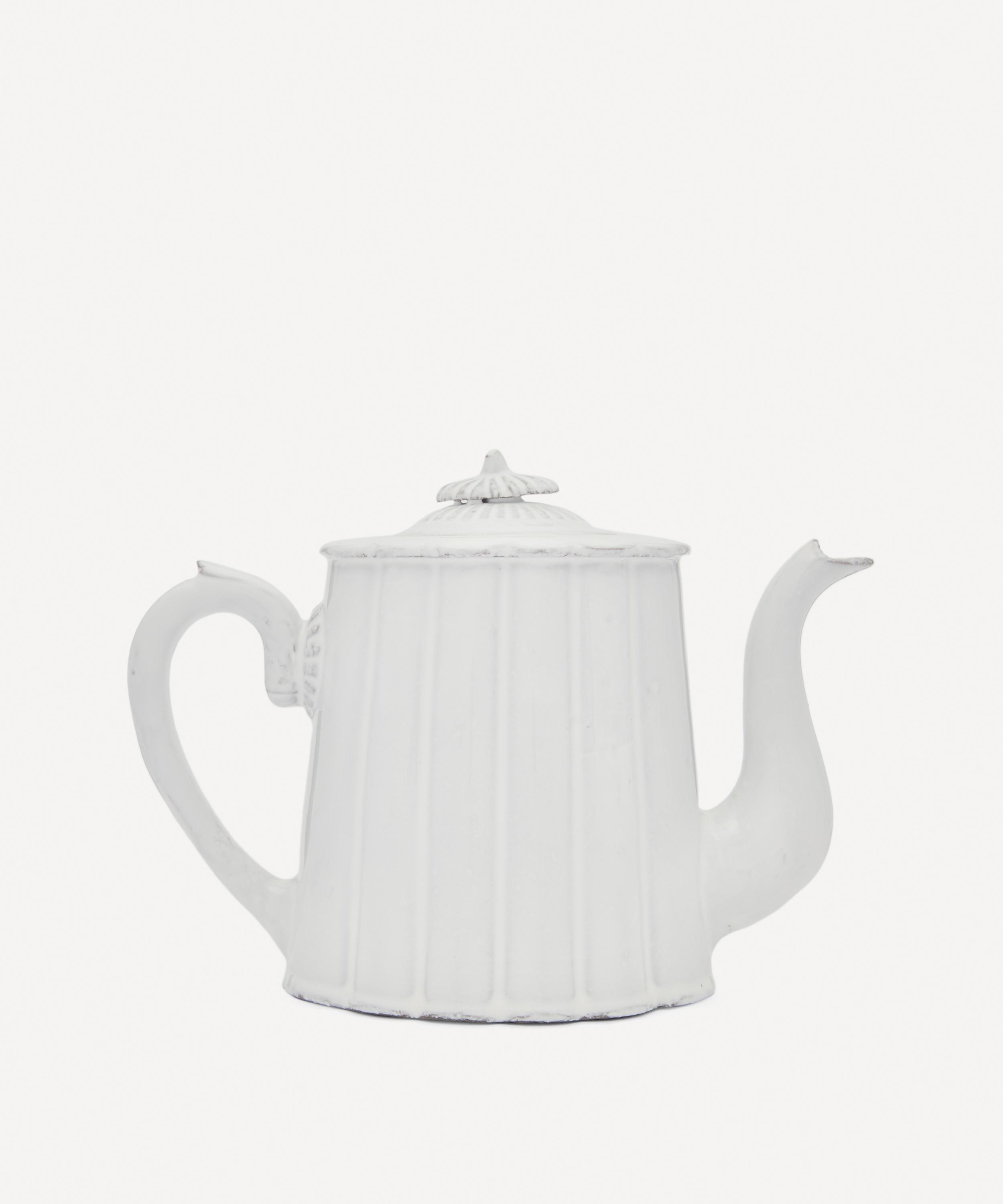 Votary of pre-industrial fabrication, Astier de Villatte is celebrated for being the one and only studio in Paris to hold and harbour the traditions of artisanal ceramic production. Restoring the ancestral systems of moulding and stamping, the Victoria teapot is made using techniques from the Middle Ages which involve moulding a sheet of handmade clay, double firing the ‘biscuit’ piece and glazing the product in white enamel – a lengthy process that requires a drying time of up to one month. Characterised by a ridged exterior and sturdy handle, the teapot is engraved with the brand’s signature crest - depicting an interlacing A & V - alongside the initials of one of the 40 master artisans who created it. Each handmade piece tells a beautiful story, it romances and imparts a sense of nostalgia into its owner. Pair with other ornate tea mugs and coffee cups from the collection for a coordinated tea party setting.