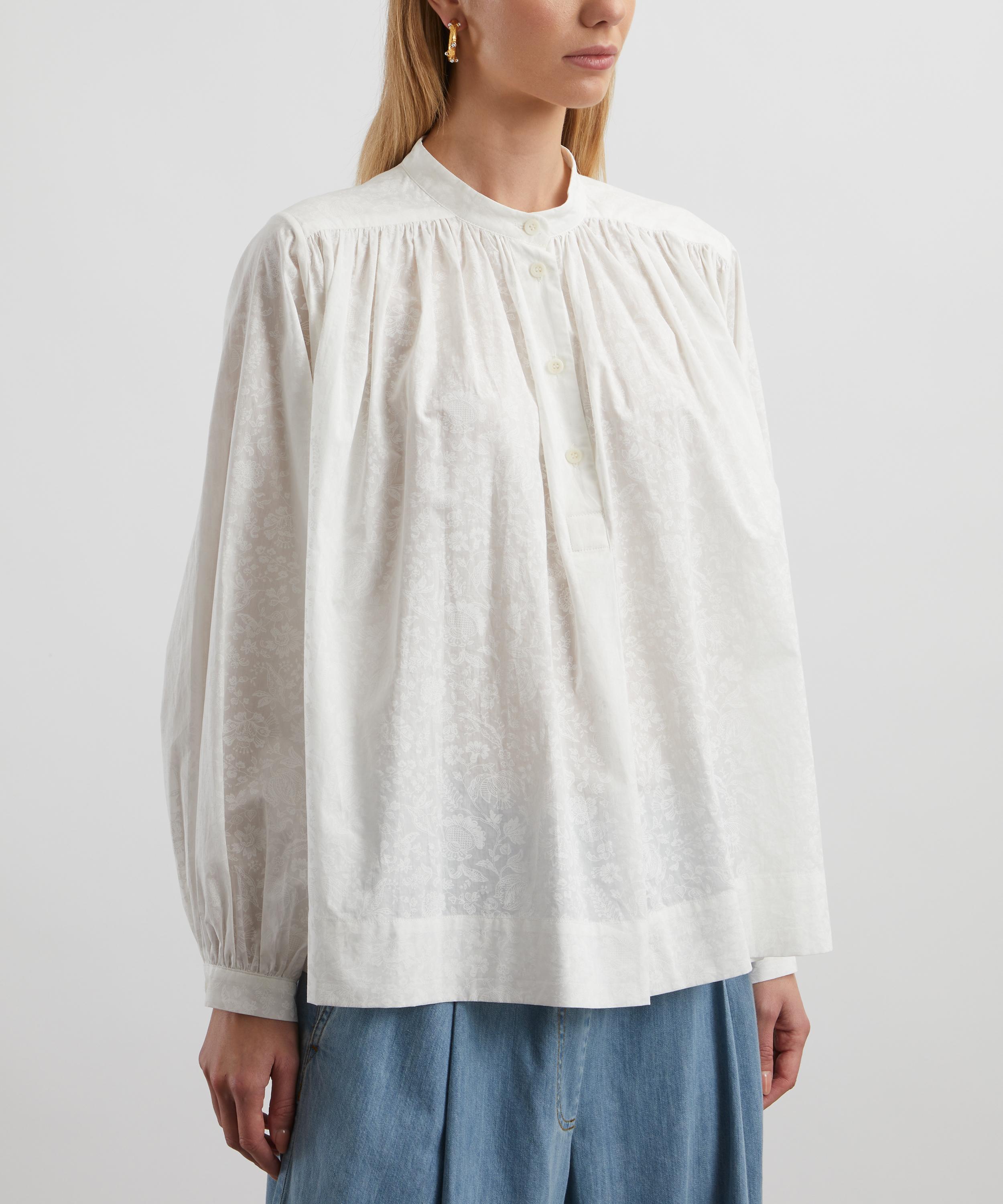 Elegant and easy-going, our Boho shirt is designed to fit and flatter all shapes with its billowy, loose fit and long blouson sleeves. Inspired by traditional prairie styles, it features a ‘grandad-style’ band collar and a buttoned half-placket, as well as gathering along the shoulders and cuffs for a voluminous, A-line silhouette.