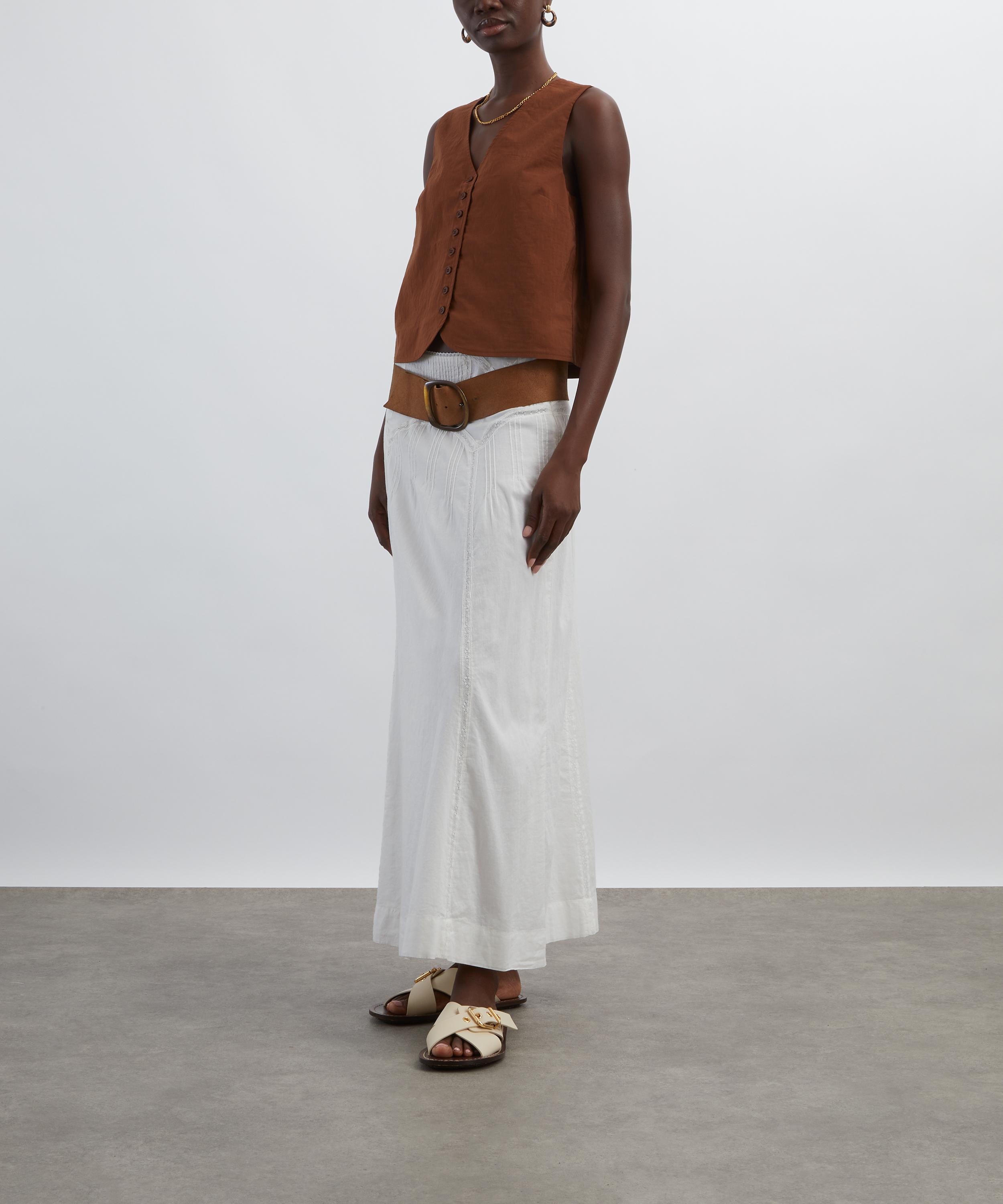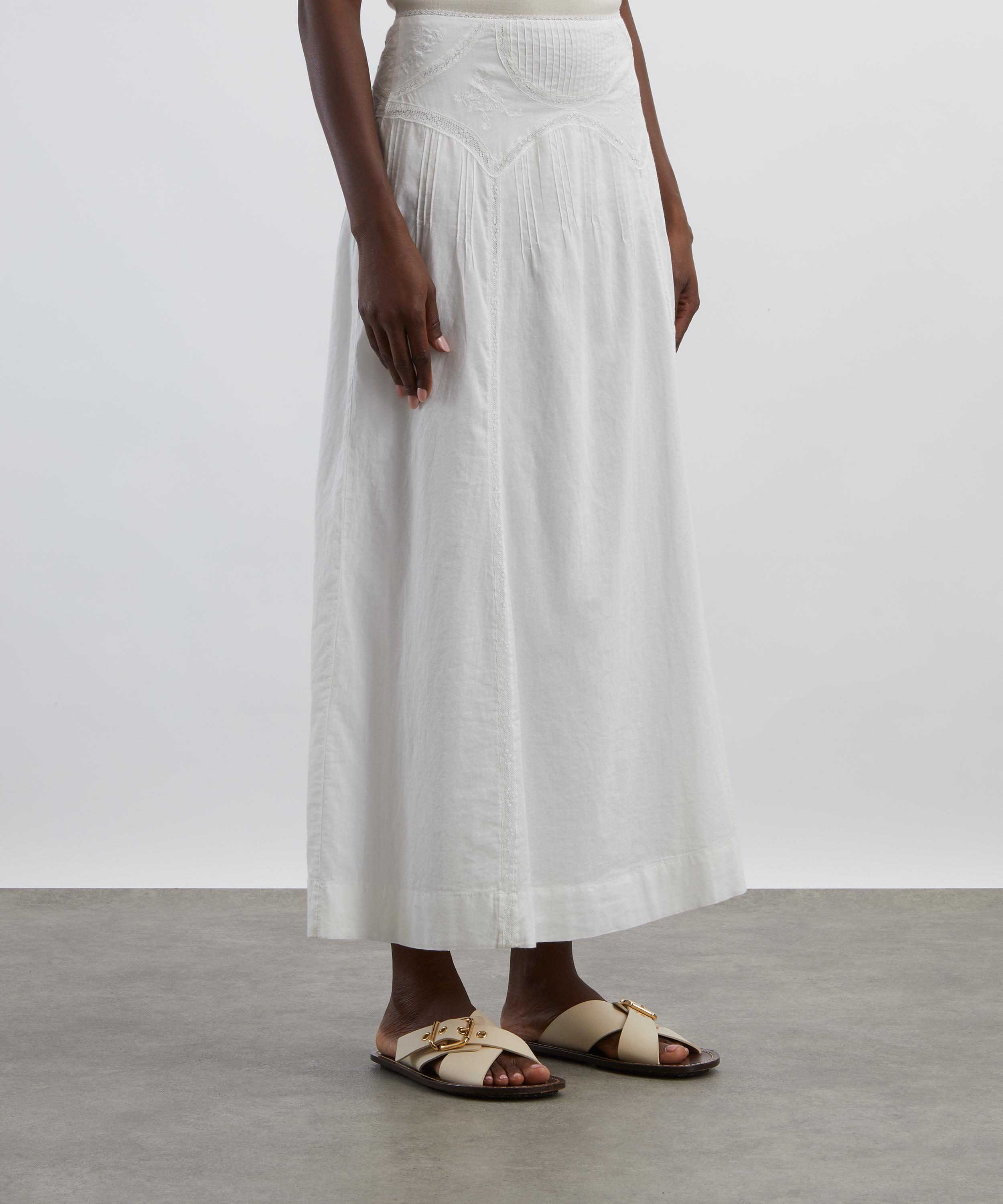 RIXO’s Vienne Cotton Embroidered Midi Skirt infuses your new season edit with a little retro elegance.