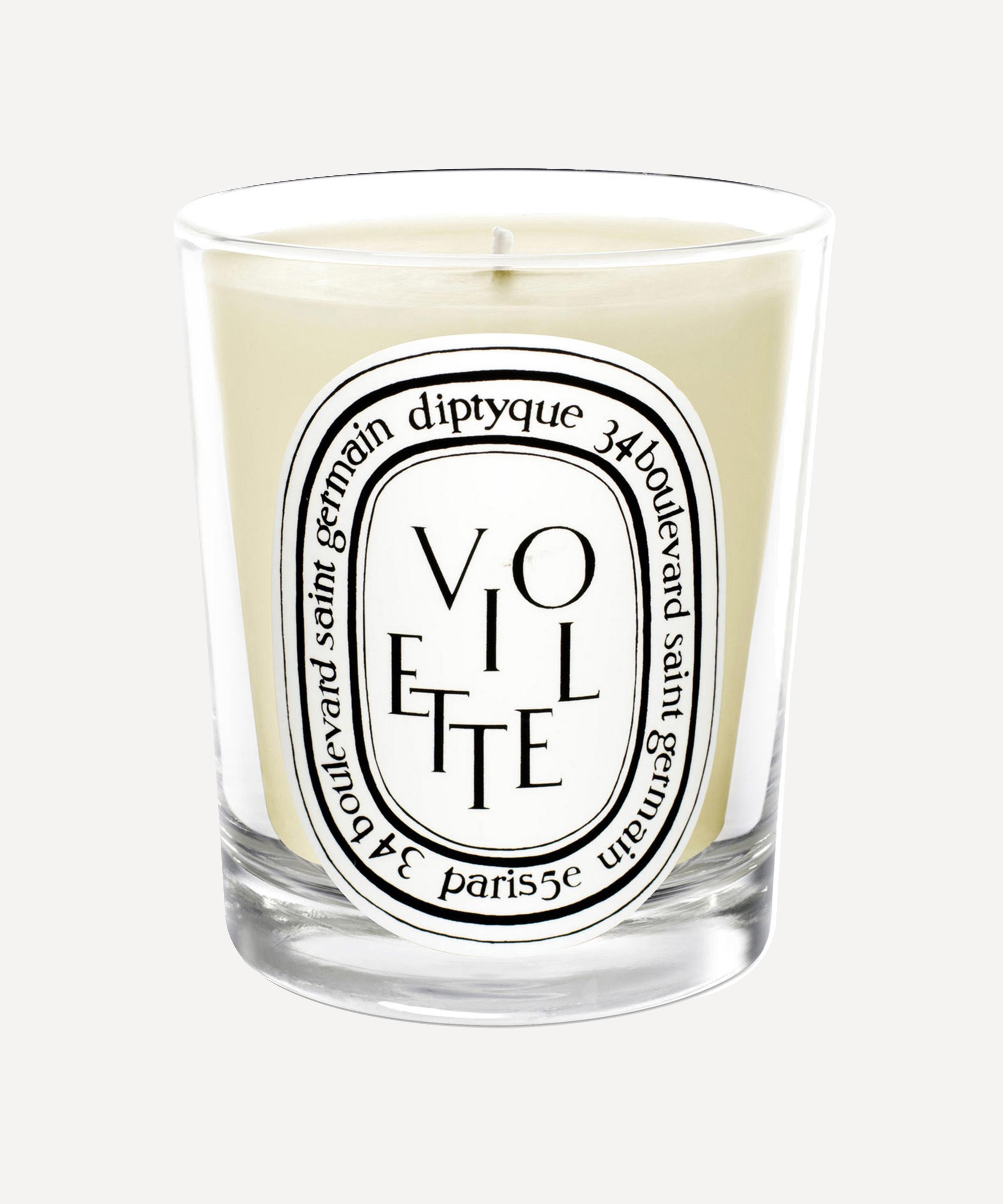 Diptyque's Violette scented candle exalts the expression of a violet’s round, bright leaves, subtly powdered with iris.