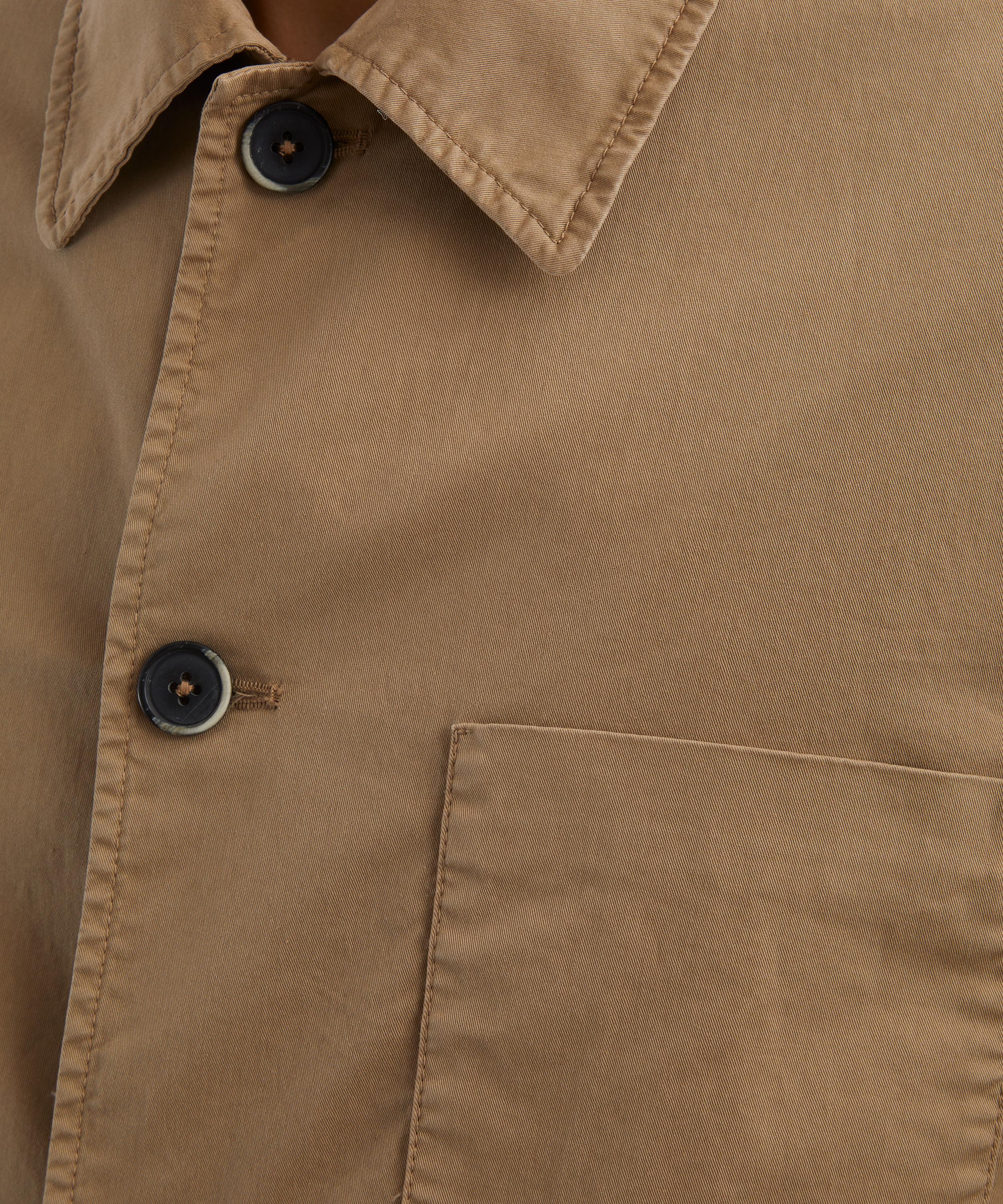 Crafted in Italy from cotton twill with a touch of stretch, the Visal overshirt offers a relaxed yet refined silhouette. Featuring a spread collar, button closure, and multiple pockets, it blends polished tailoring with a utilitarian edge for effortless versatility.