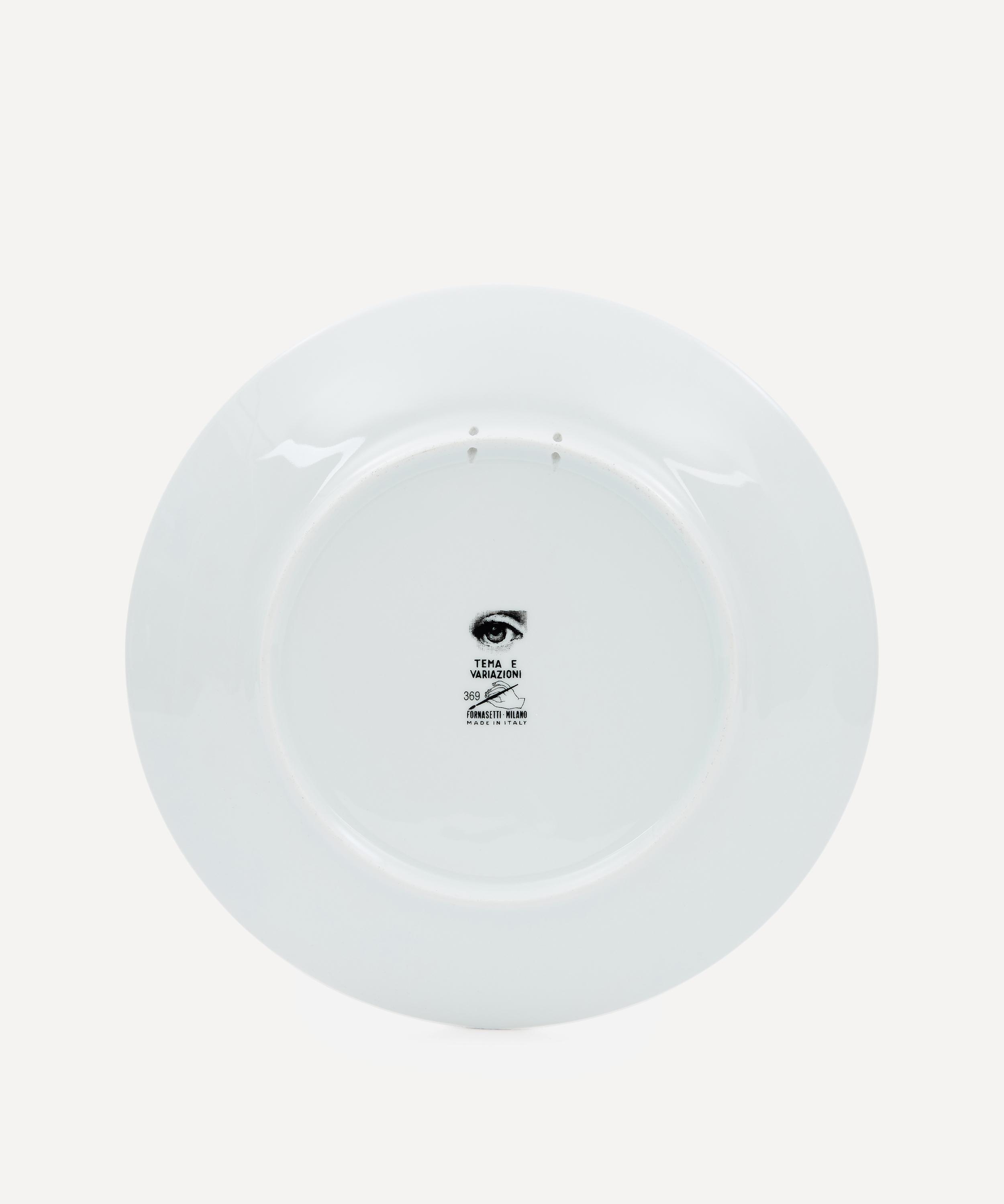 This wall plate is No. 369 of Fornasetti’s kaleidoscopic variations of the face of the designer’s muse, opera soprano Lina Cavalieri.