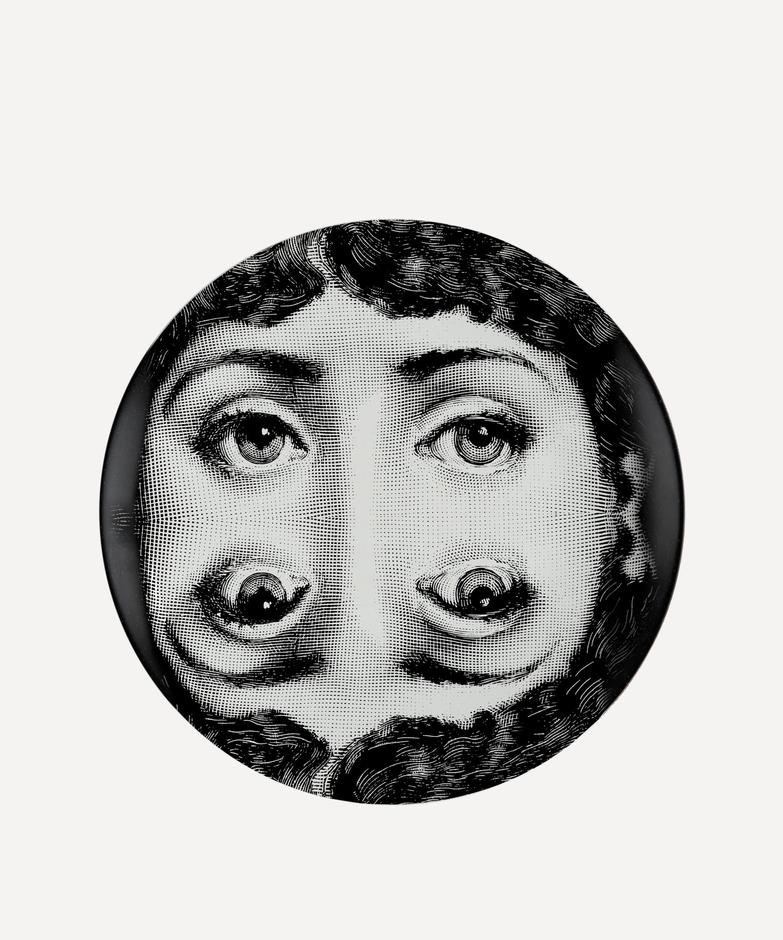 Adorn empty walls, bookshelves or countertops missing that finishing touch with Fornasetti’s decorative wall plate. Originally designed by Piero Fornasetti, this superior ceramic is a true collector’s piece for any art and design enthusiast, featuring a kaleidoscopic variation of the face of his muse, opera soprano Lina Cavalieri. Display this ornamental porcelain plate in pride of place in your living room, dining space or hallway, for a powerful and beguiling approach to your home décor.