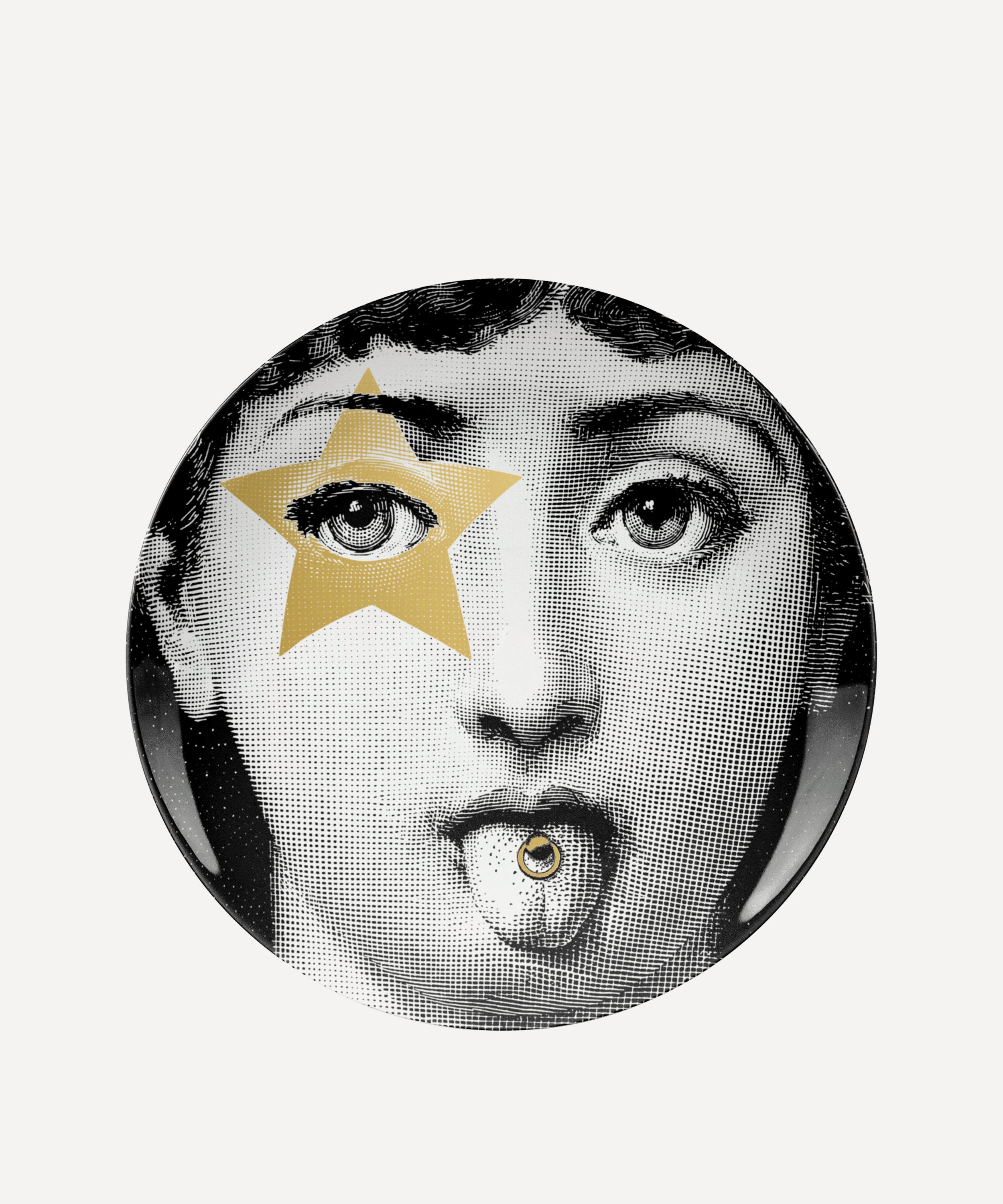 Adorn empty walls, bookshelves or countertops missing that finishing touch with Fornasetti’s decorative wall plate. Originally designed by Piero Fornasetti, this superior ceramic is a true collector’s piece for any art and design enthusiast, featuring a kaleidoscopic variation of the face of his muse, opera soprano Lina Cavalieri. Display this ornamental porcelain plate in pride of place in your living room, dining space or hallway, for a powerful and beguiling approach to your home décor.
