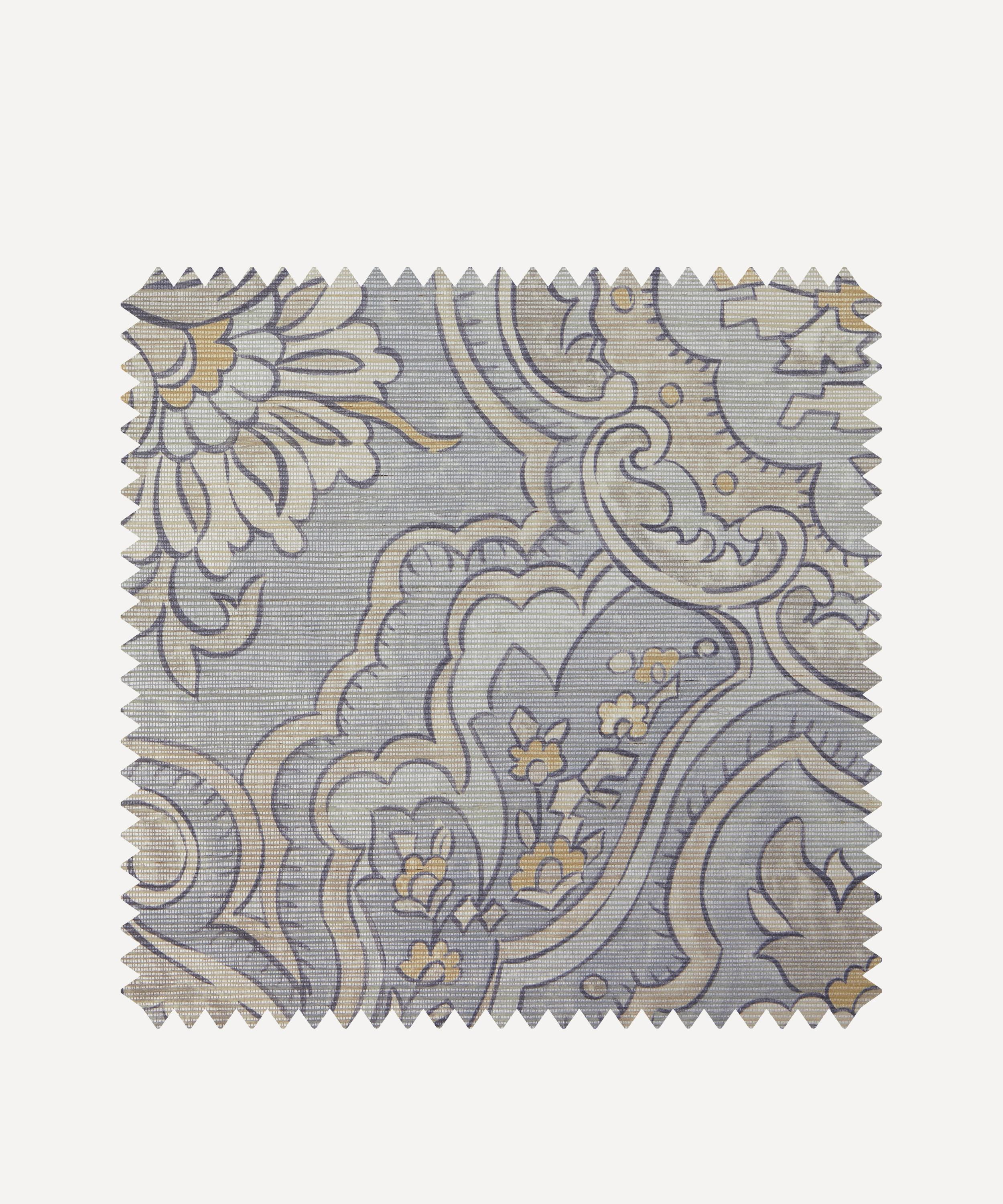 With strong influences from traditional Persian and Islamic design aesthetics, this richly decorated botanical pattern, originally created by Liberty in 1965, seamlessly blends stylised florals with subtle geometric elements. Reminiscent of the exquisite Persian rugs sold at specialist rug department in the Liberty flagship store, Charlton’s intricate shapes follow a symmetrical, tile-like layout. Printed on a lustrous, pearlescent grass-cloth base, each motif is encased within ornate, accentuated frames.