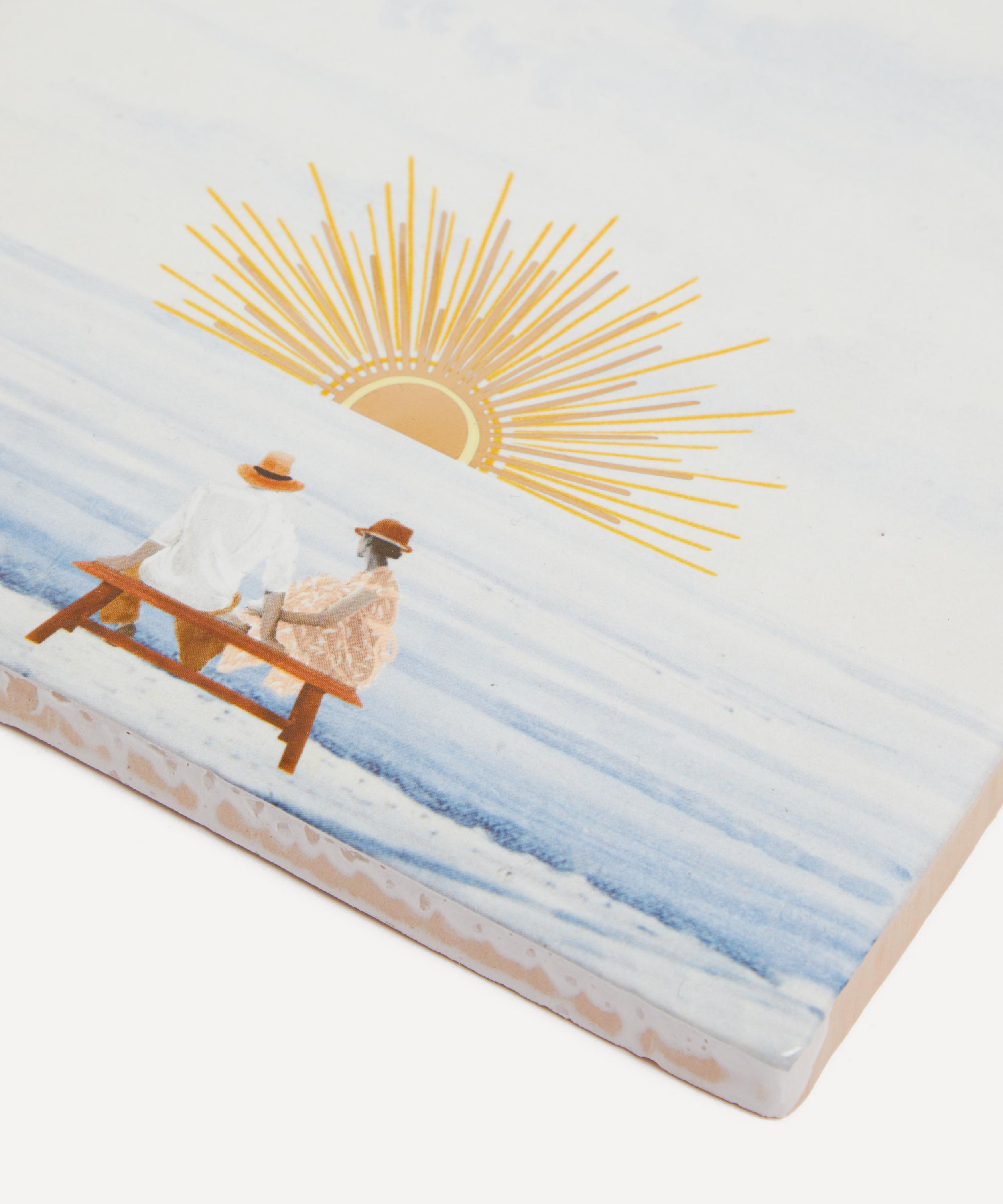 Add an artful accent to eclectic interiors with the Watching the Sunset Together ceramic tile from Amsterdam based brand StoryTiles.