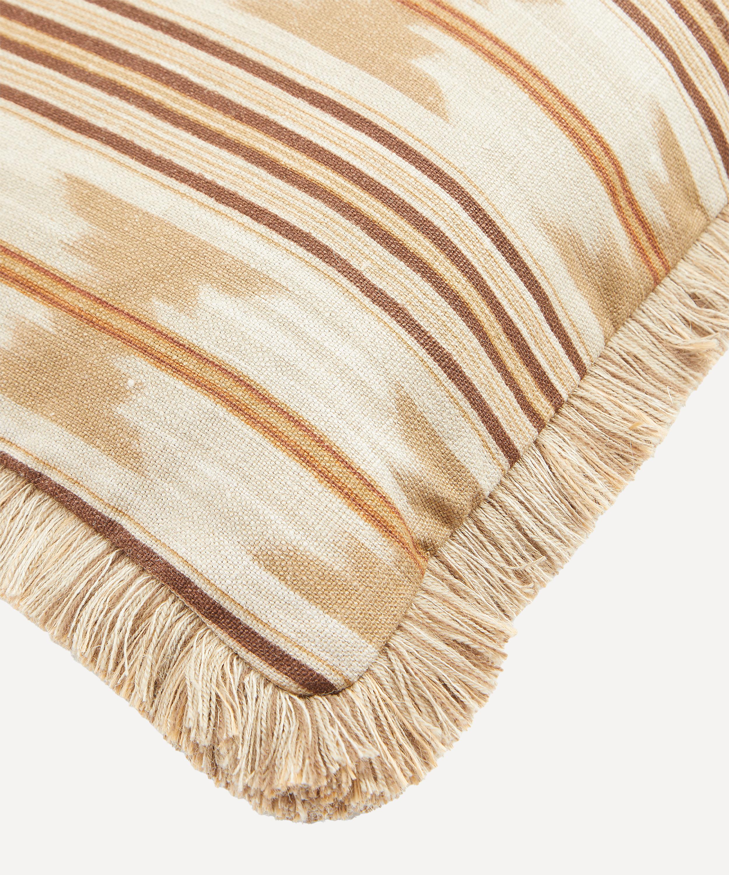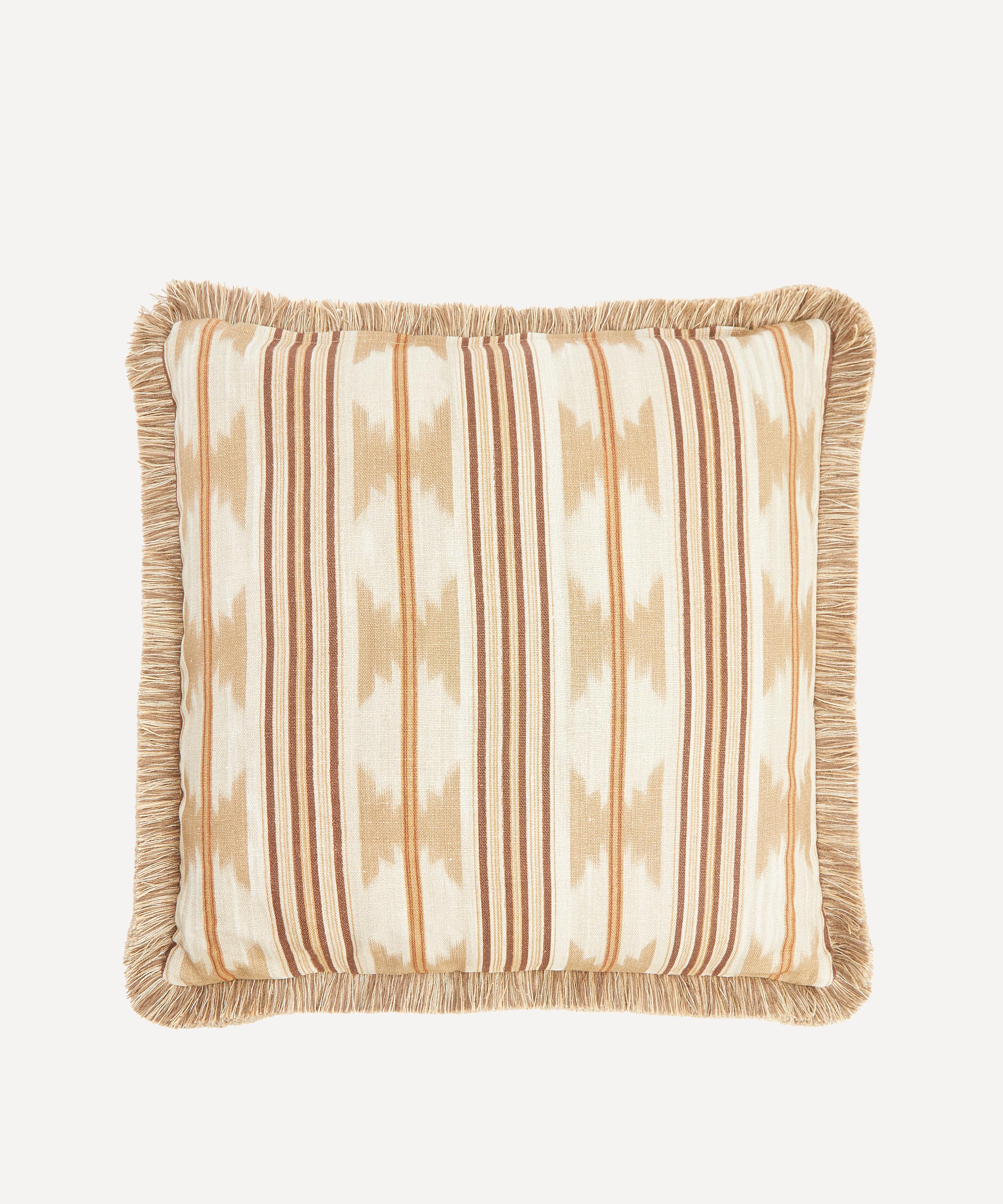Featuring a double sided striped Ikat design digitally printed in Italy, this cushion delivers a dose of bold pattern to slightly subdued interiors. The Liberty team suggest arranging in a reading nook or throwing on a sofa or armchair to instantly uplift a space.