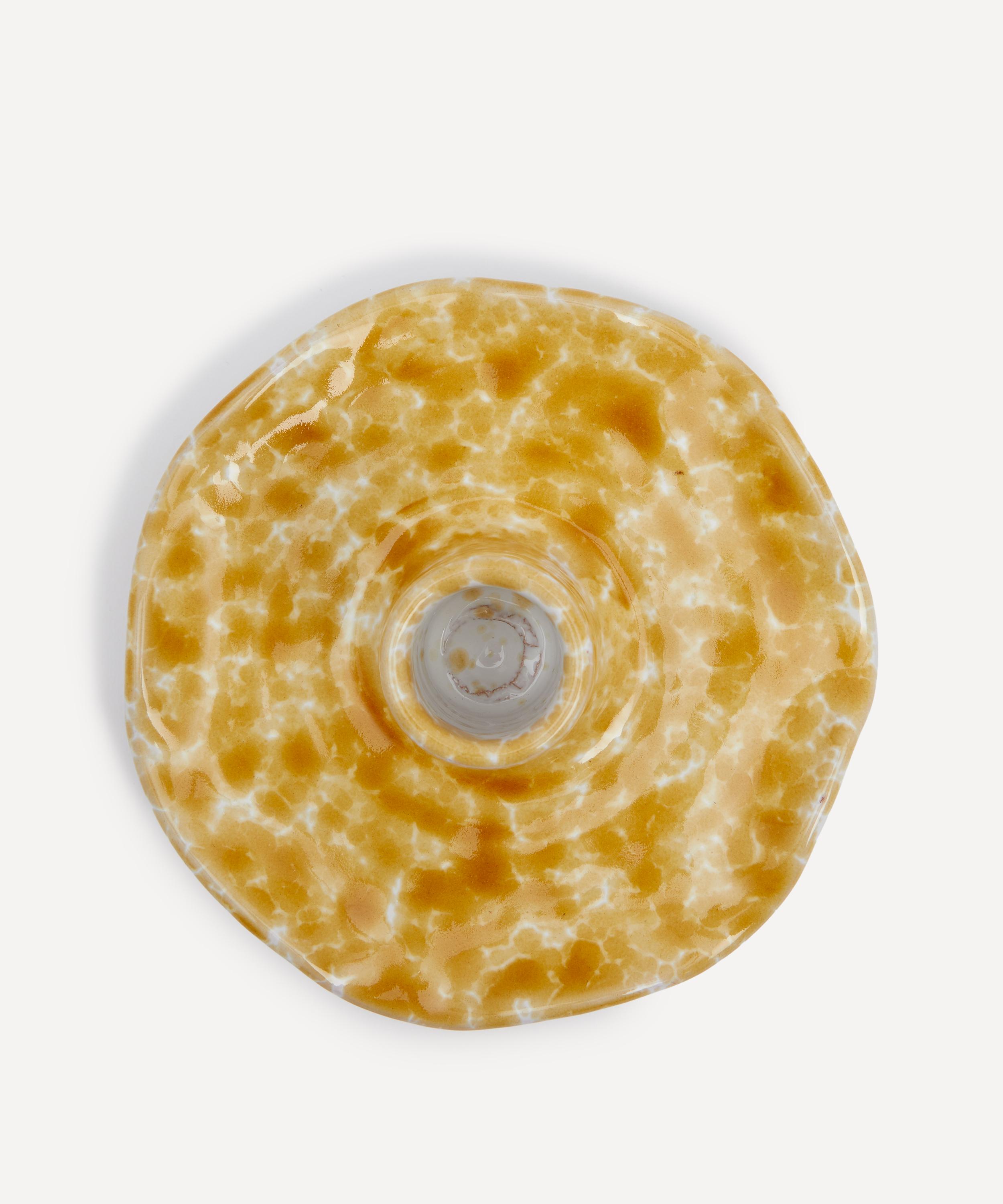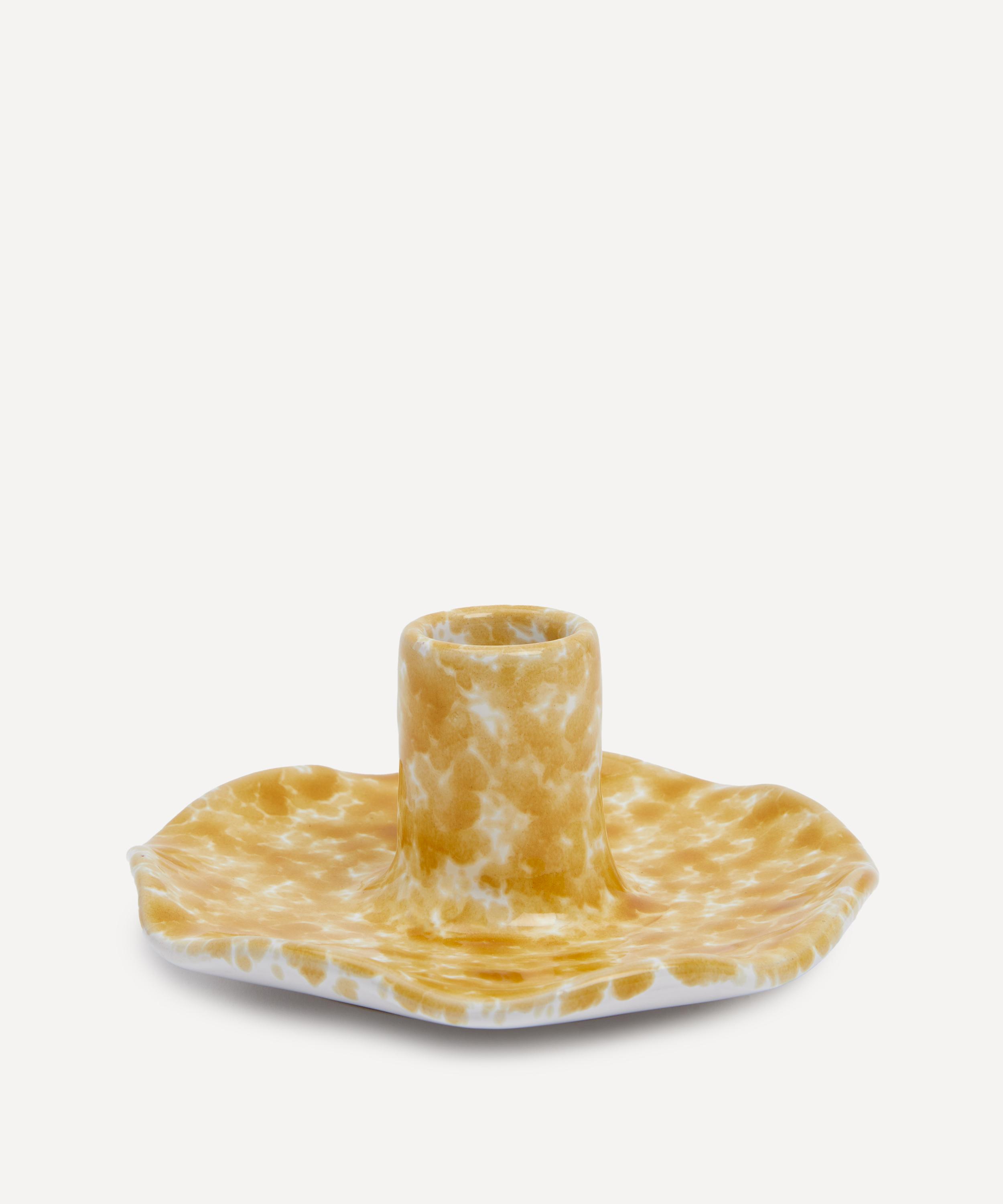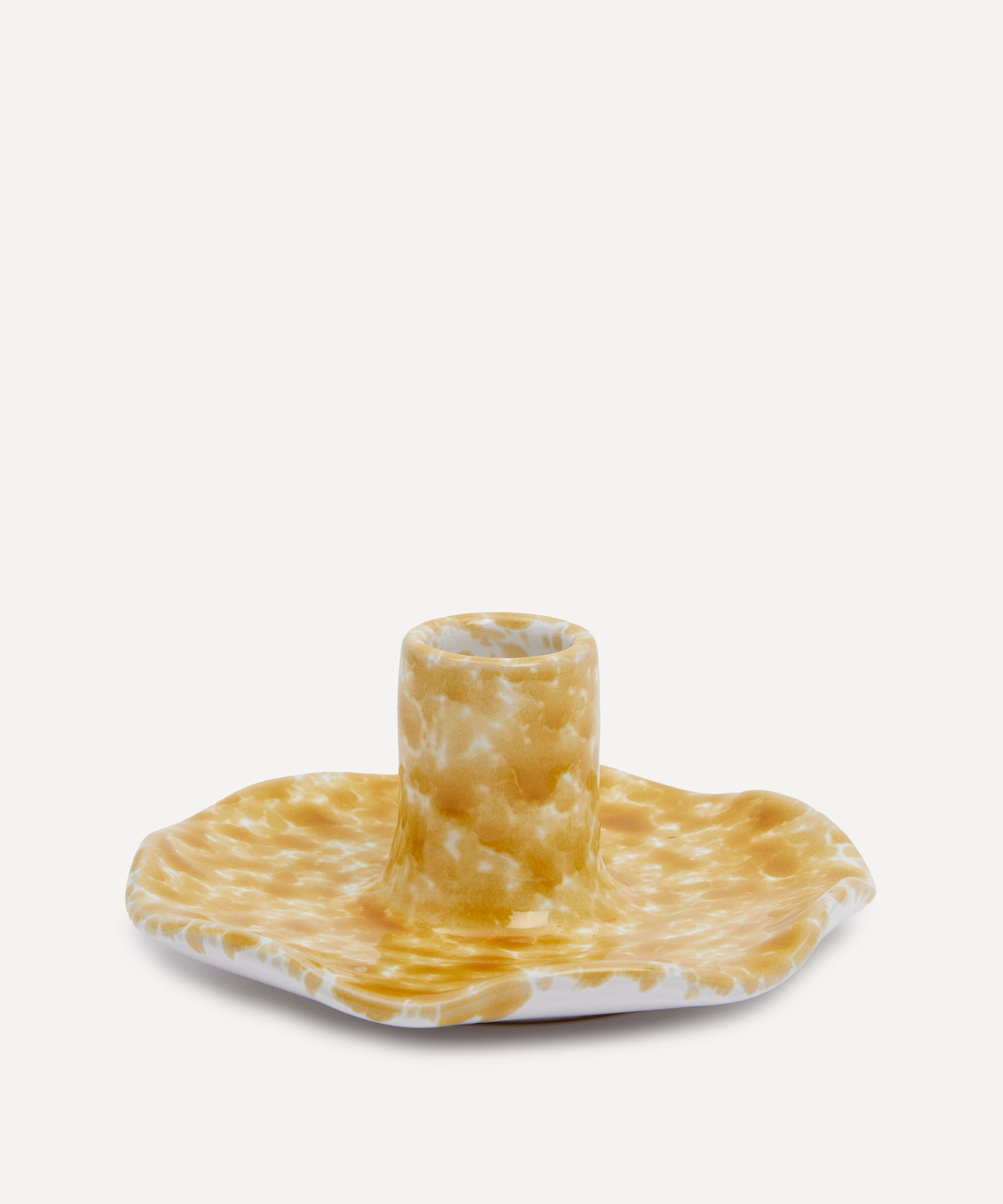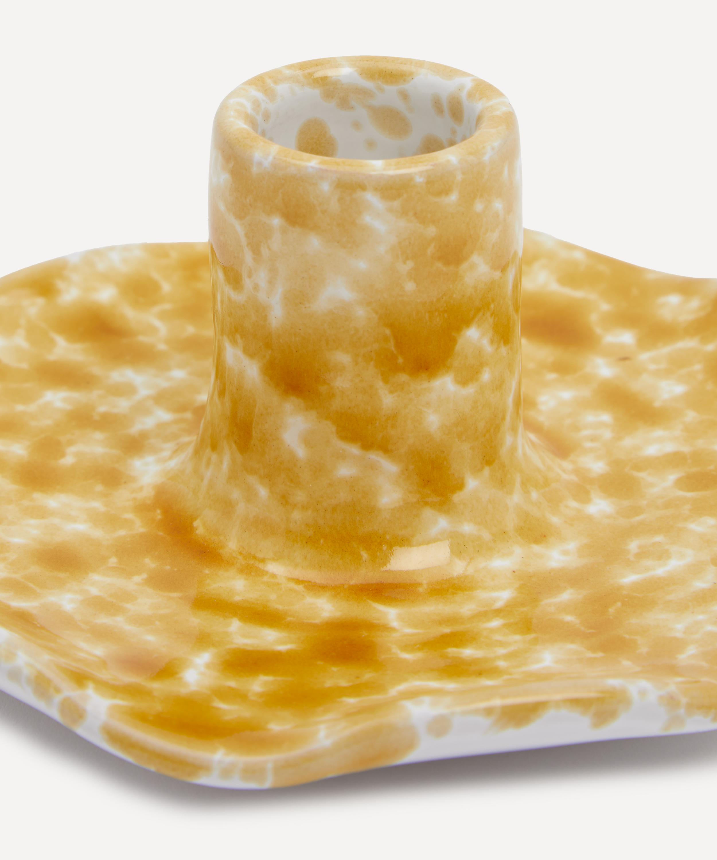 Reflecting the sun-soaked palette of the southern Italian region where it was crafted, this candle holder presents an abstract splatter design in a bright, bold hue, spanning its silhouette. Traditionally handmade and glazed in a nod to classic ceramic artistry, its waved edges will ensure it stands out as the focal point of a mantlepiece or shelfscape.