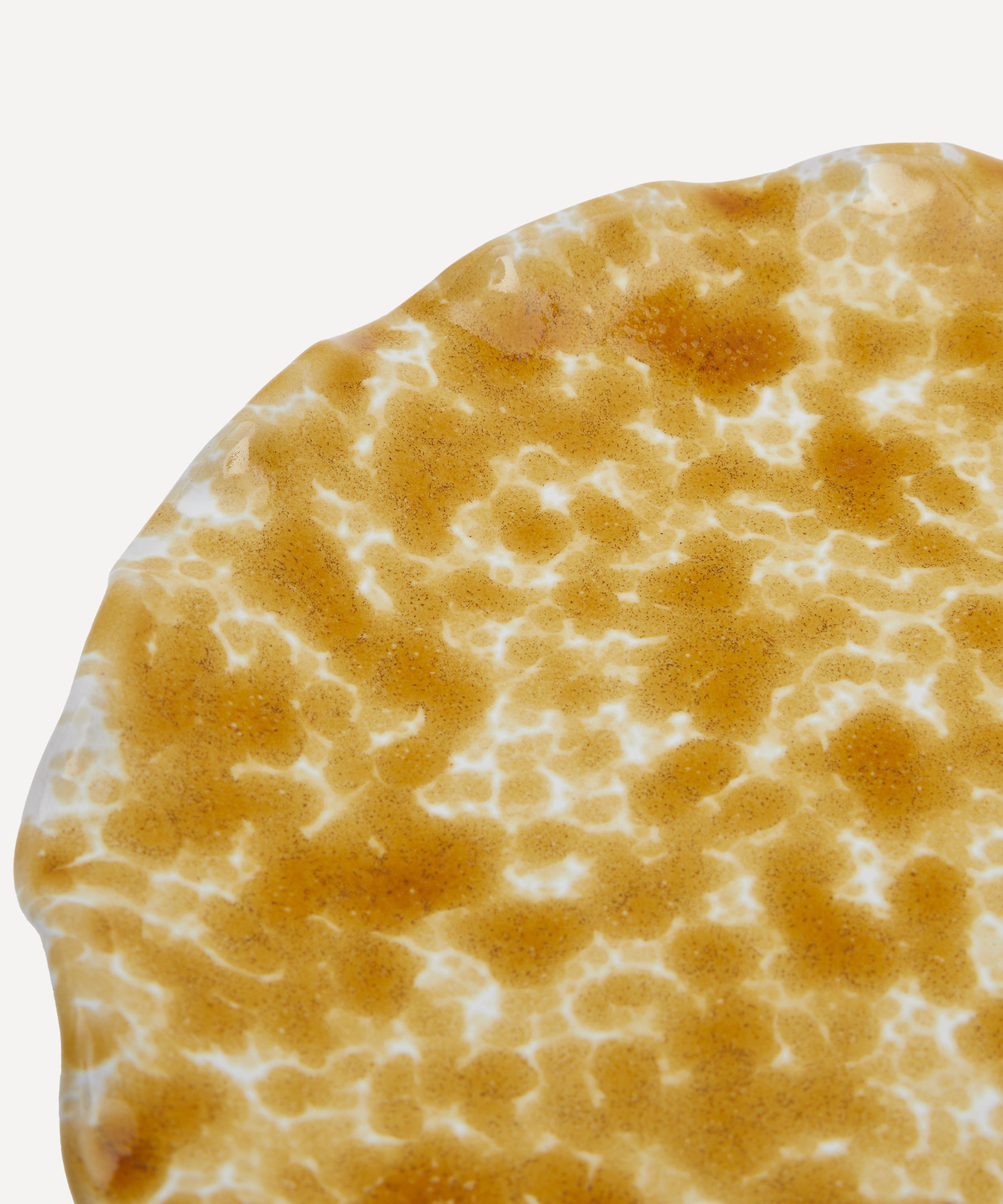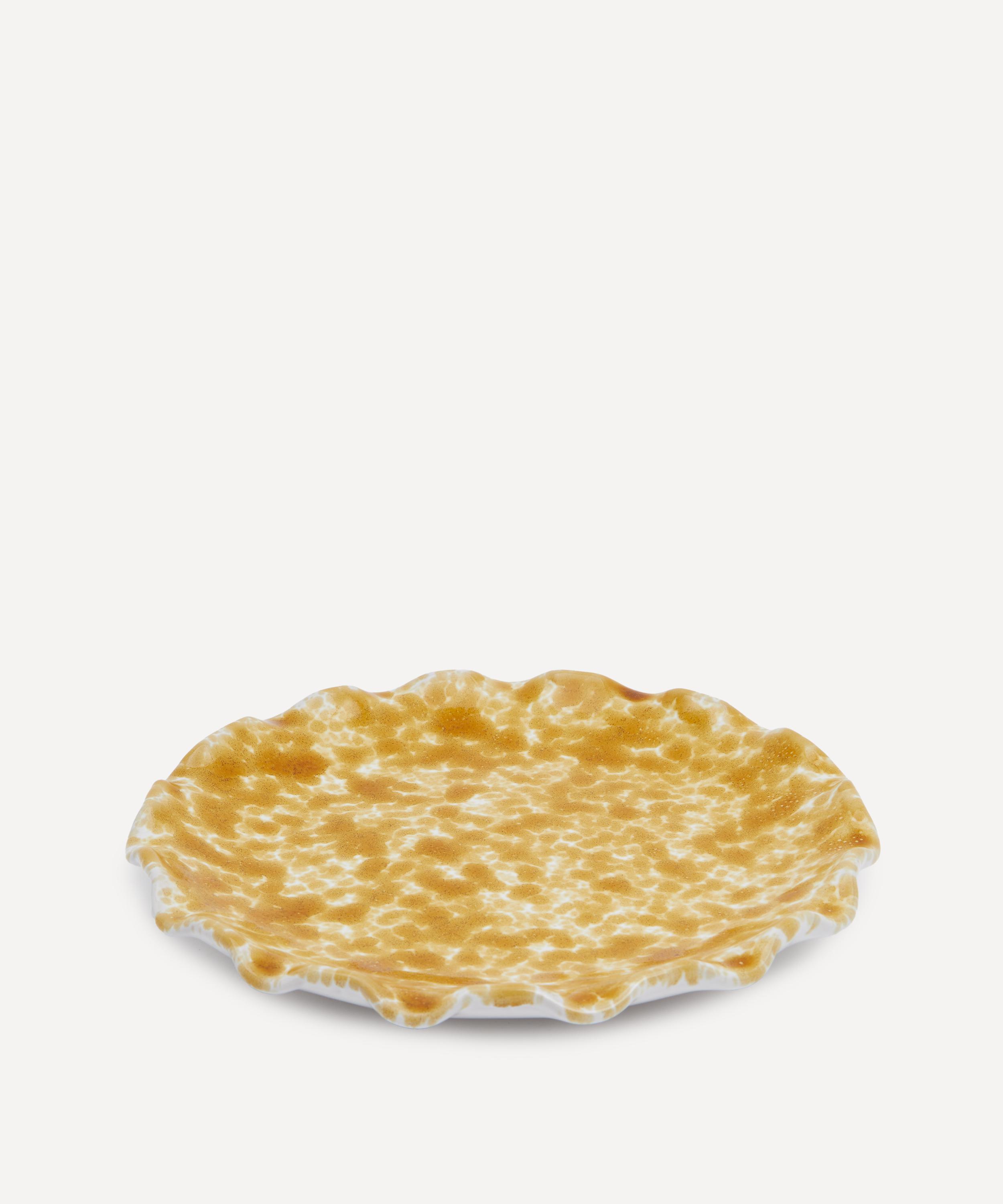 Reflecting the sun-soaked plate of the southern Italian region where it was crafted, this plate presents an abstract splatter design in a bright, bold hue, spanning its silhouette. Traditionally handmade and glazed in a nod to classic ceramic artistry, its waved edges will ensure it stands out as the focal point of your dining arrangement during long, lazy summer lunches.