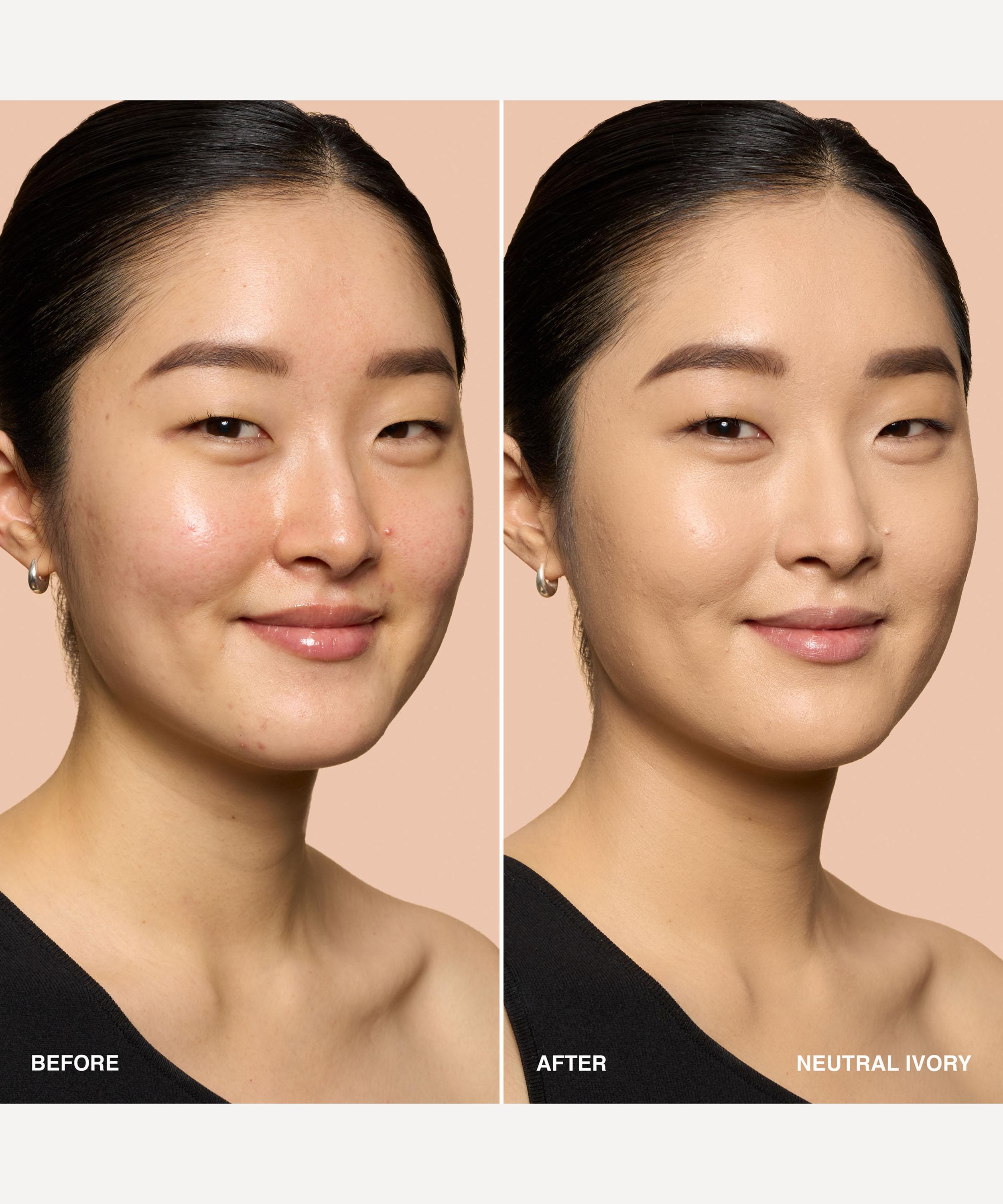 This comfortable, lightweight liquid foundation utilises skin care ingredients including hyaluronic acid and oil-absorbing silicas to control oil and shine, while delivering up to 24-hours of colour-true wear – leaving skin with a seamlessly soft-blurred matte appearance through heat, rain, or humidity.