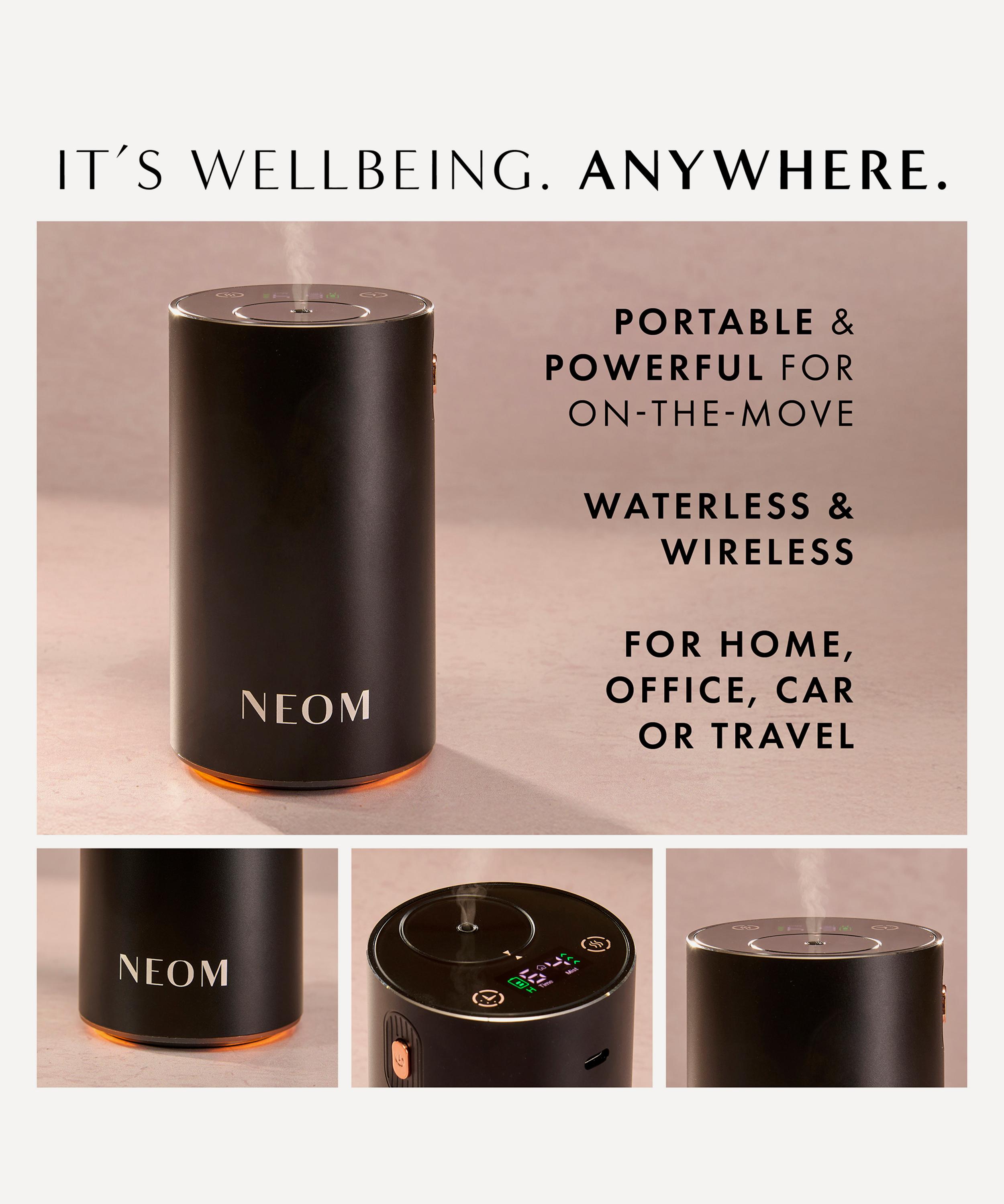Transform your space into an oasis of comfort at the touch of a button with the Wellbeing Pod Mini+, a portable wireless essential oil diffuser from NEOM Wellbeing London.