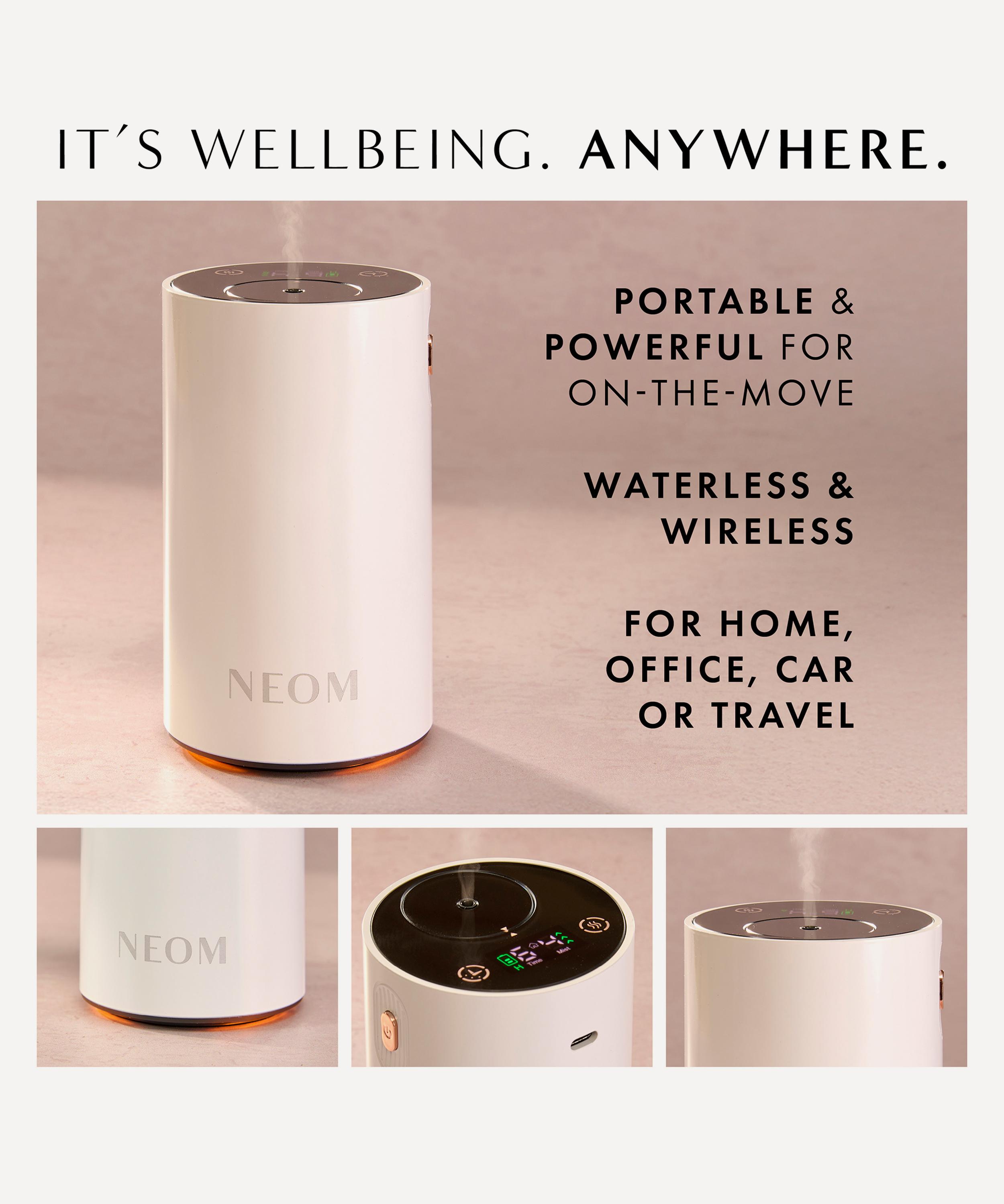 Transform your space into an oasis of comfort at the touch of a button with the Wellbeing Pod Mini+, a portable wireless essential oil diffuser from NEOM Wellbeing London.