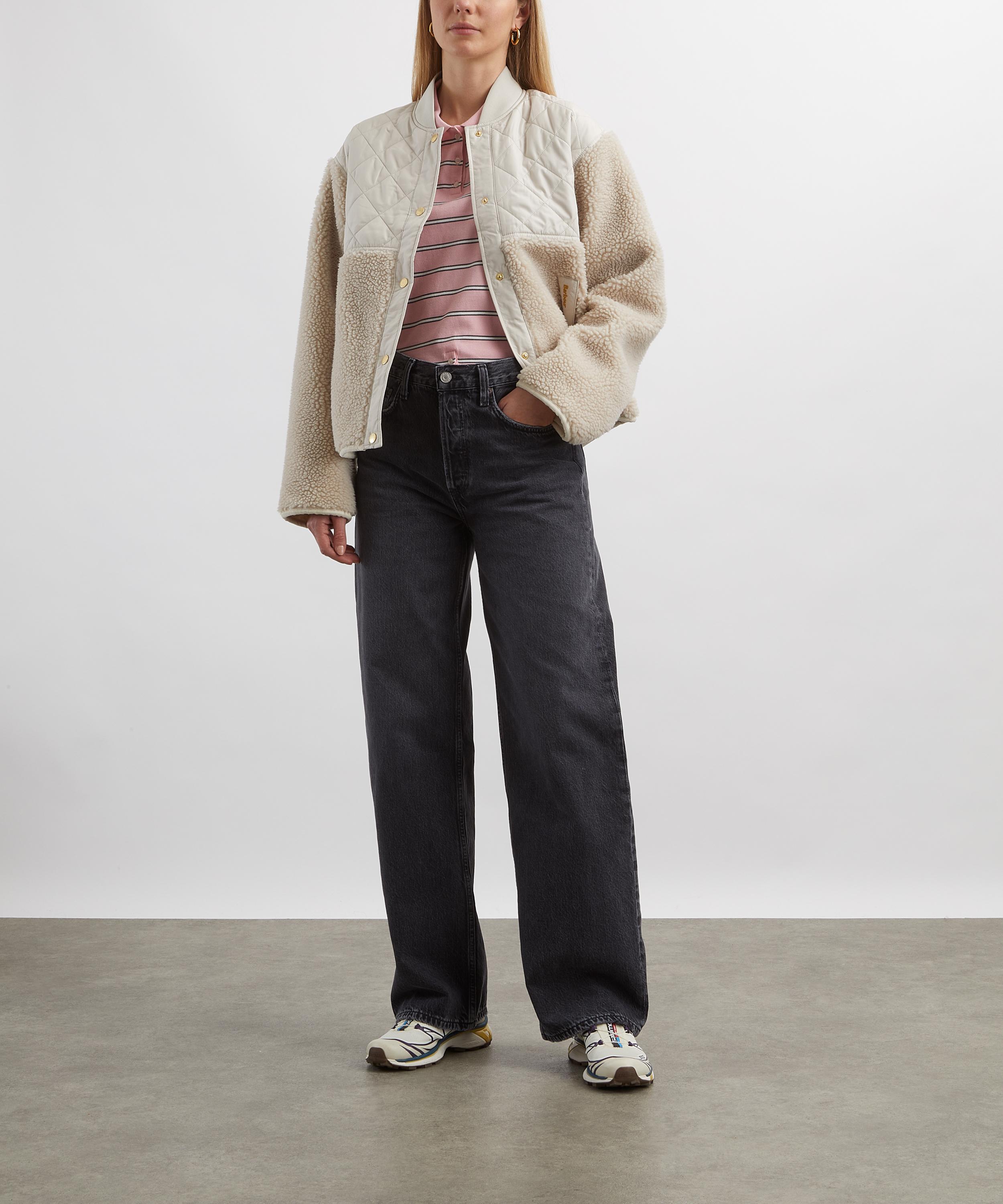 Wrap yourself in warmth and style with the Wetherby Fleece. Crafted from soft teddy fleece with contrast 2-inch box quilted panels and bright brass stud fastening, it balances comfort with elegance. Ribbed collar, needlecord-bound cuffs and hem, and welt pockets with signature Barbour embroidery add refined finishing touches.