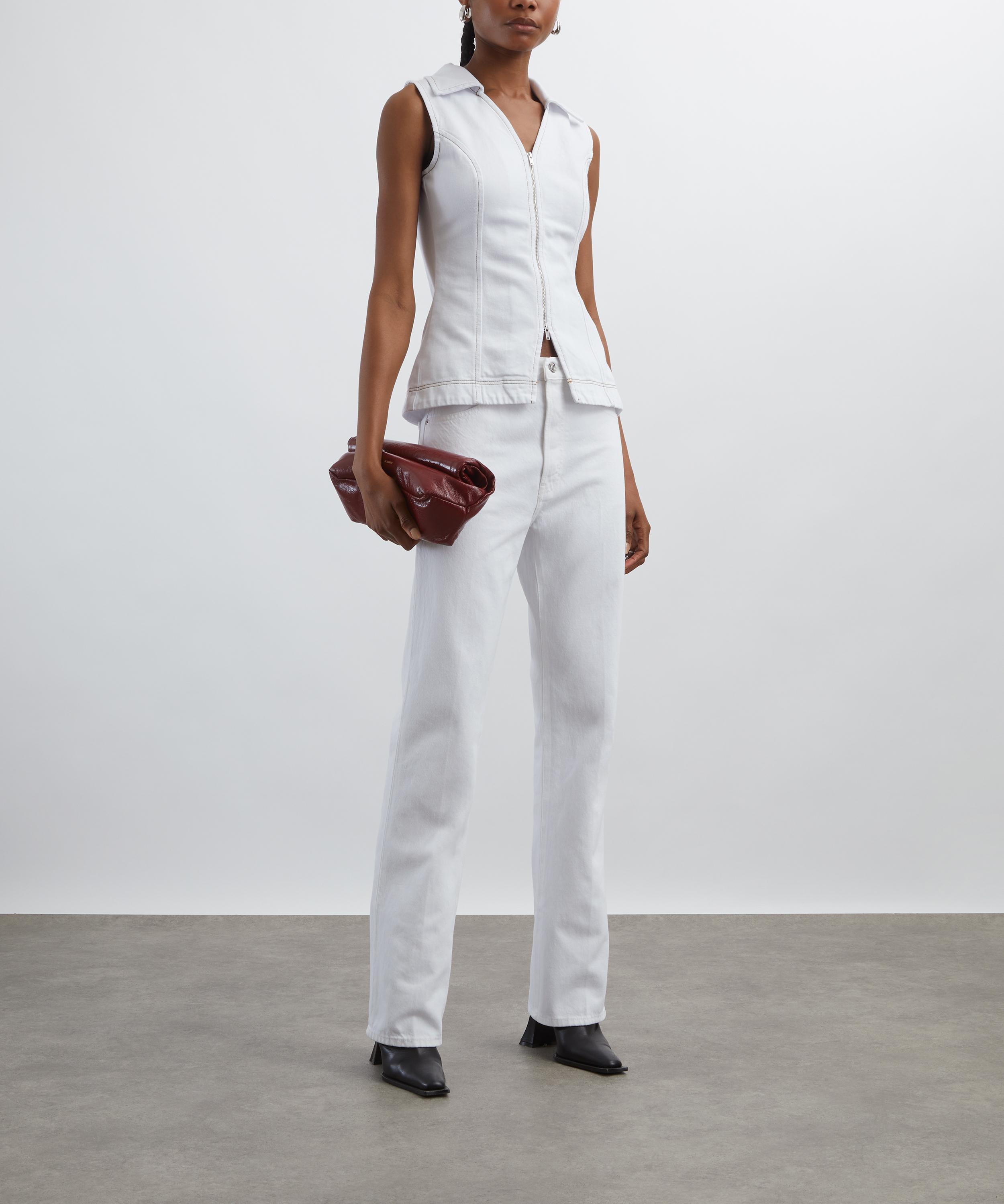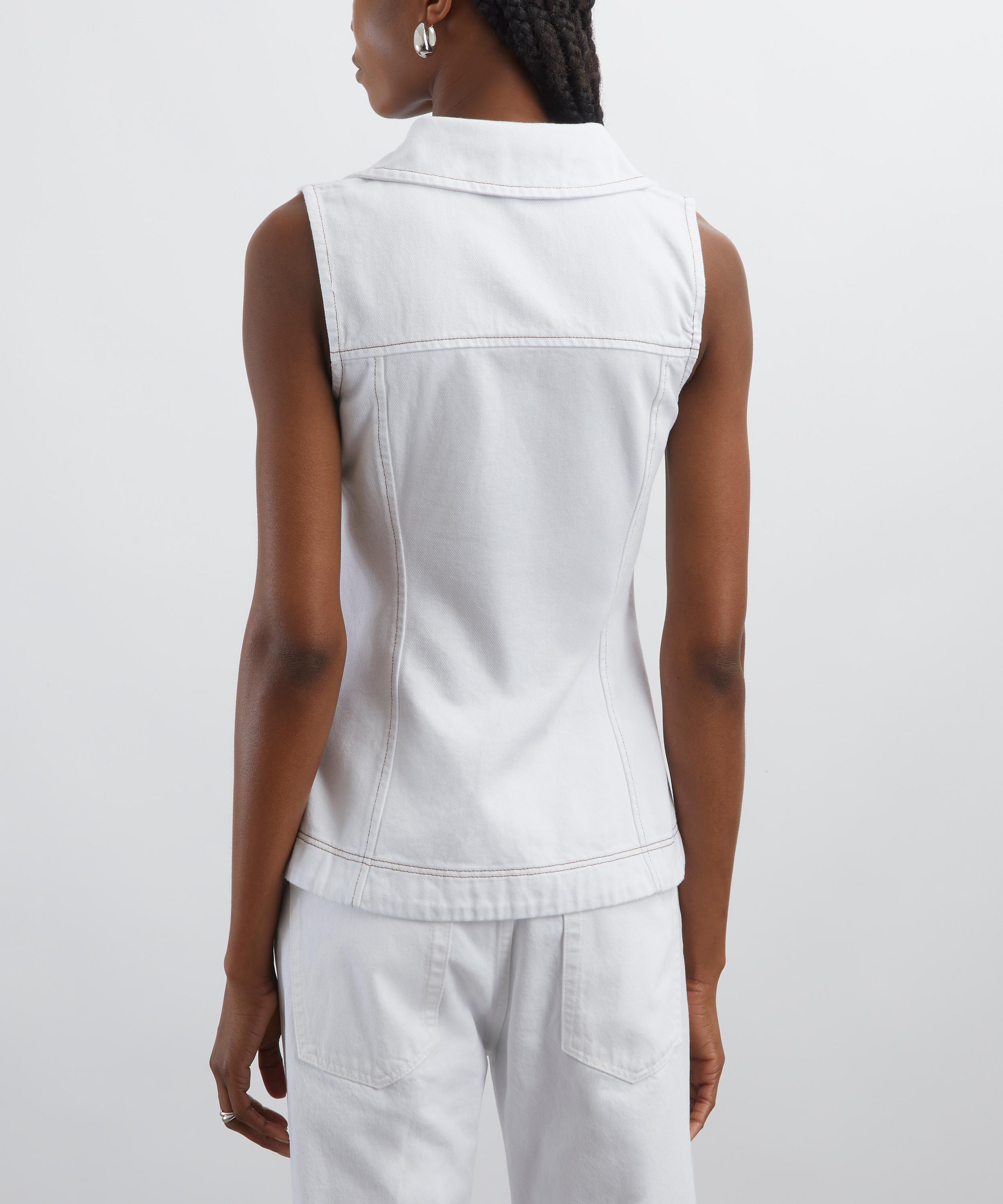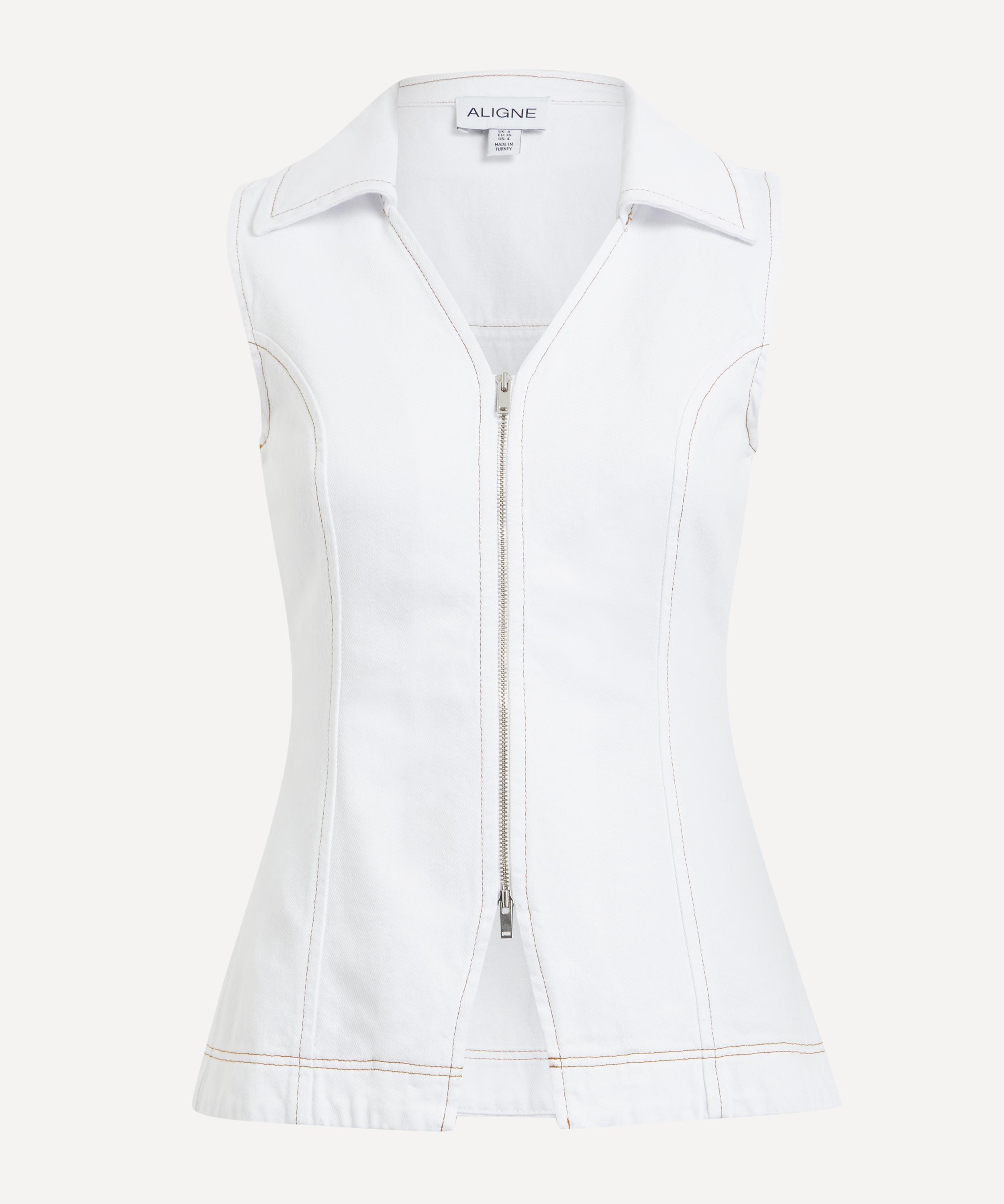 Crafted from cotton denim, this fitted waistcoat top features collared V-neckline, and a double-ended zip fastening, offering a modern yet effortless silhouette perfect for warm-weather dressing.