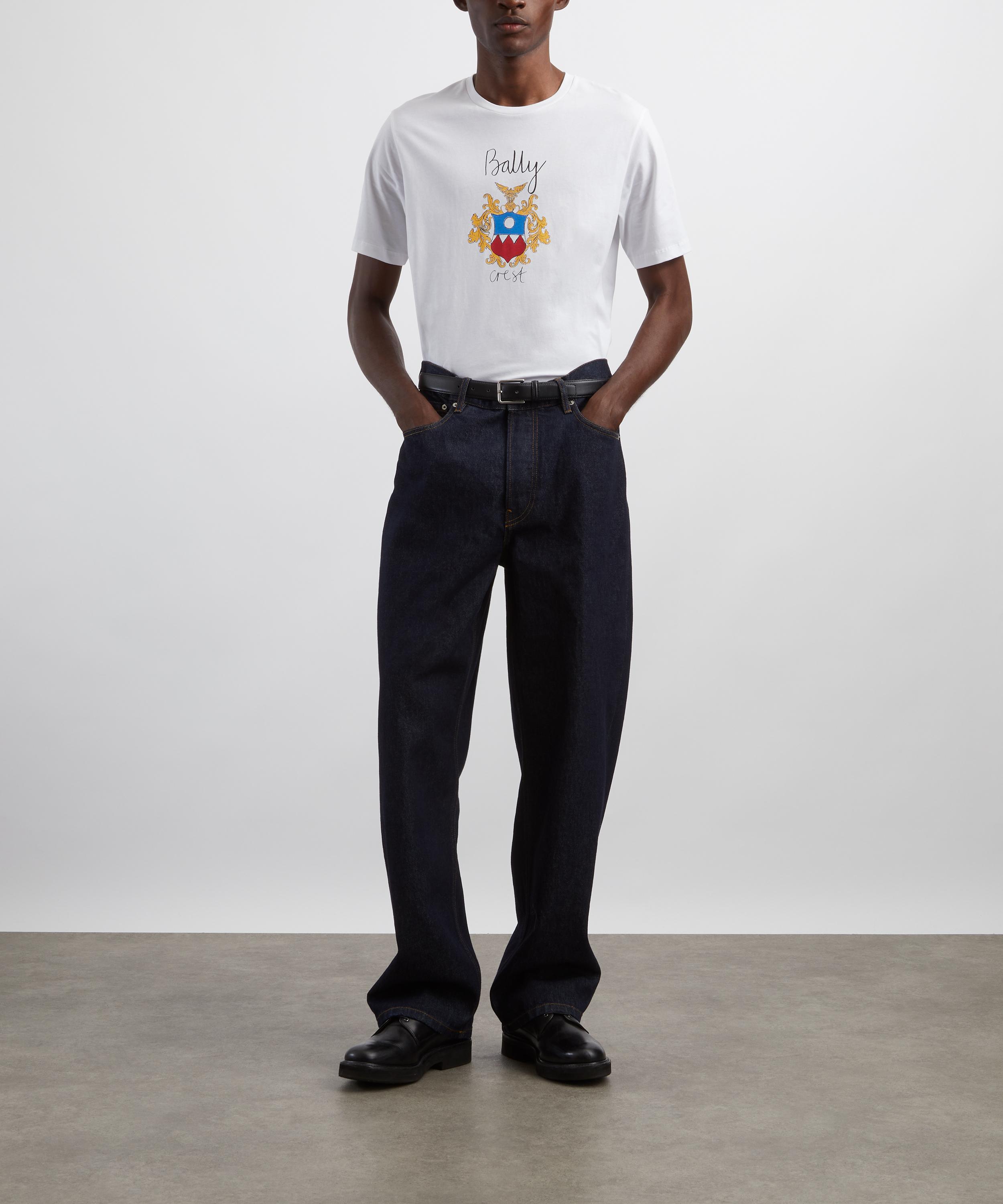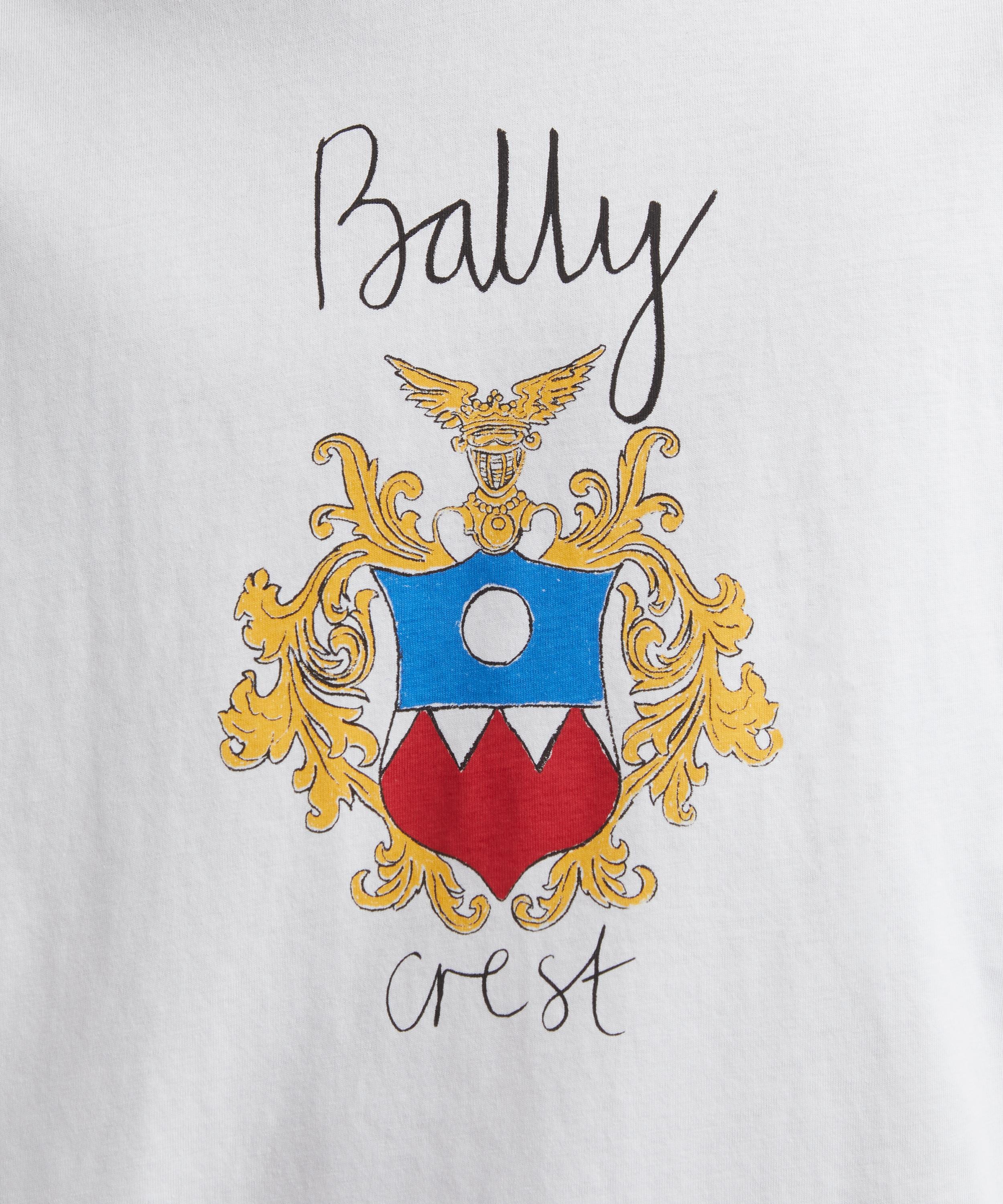 Crafted from a cotton, this white t-shirt is detailed with a classic crew neckline, short sleeves, and a large colourful Bally Crest print embossed on the front – an emblem of understated sophistication.
